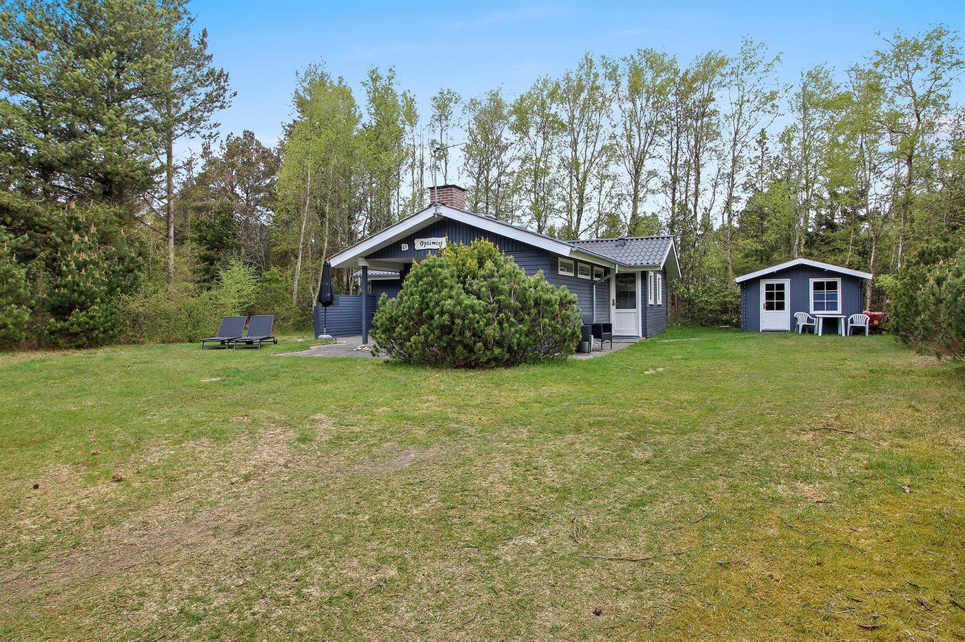 Sommerhuset er beliggende på en stor og grøn plænegrund med træer og masser af plads til boldspil, leg og udeliv – et skønt og trygt udemiljø for børnene. Området omkring huset er fredeligt og præget af den vestjyske natur med skov, hede og åbne vidder.