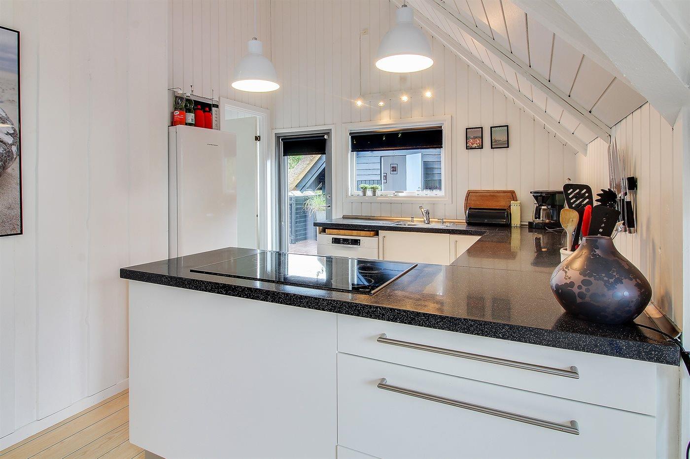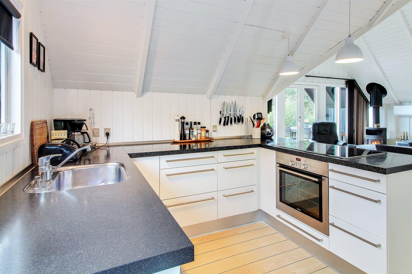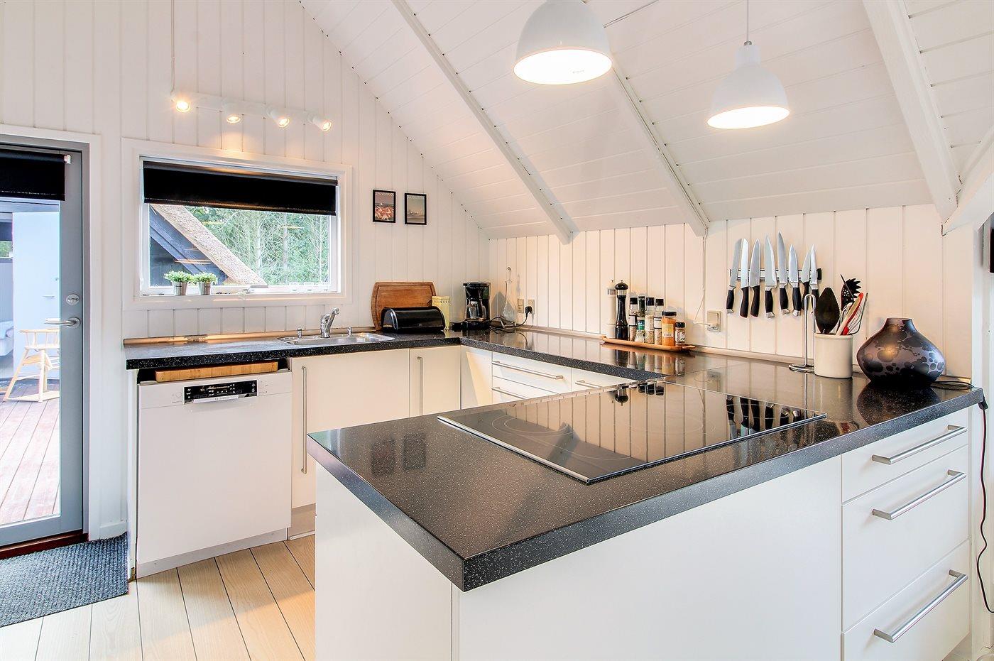 Køkkenet er udstyret med 1 køleskab. Der er 4 keramiske kogeplader, varmluftovn, mikrobølgeovn samt opvaskemaskine.