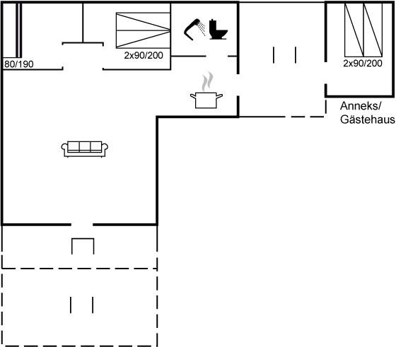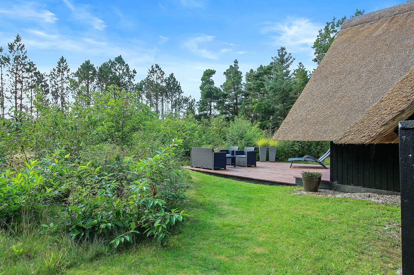 Et dejligt og lyst sommerhus med tilhørende sydvendt terrasse, hvor man ugenert kan opholde sig. På den skønne, bevoksede grund findes desuden mange små rolige hjørner. Her ligger også et anneks, hvor 2 af de i alt 6 sovepladser befinder sig. Et stisystem fører hele vejen til Feriepark Seawest med stort badeland og masser af andre aktiviteter.