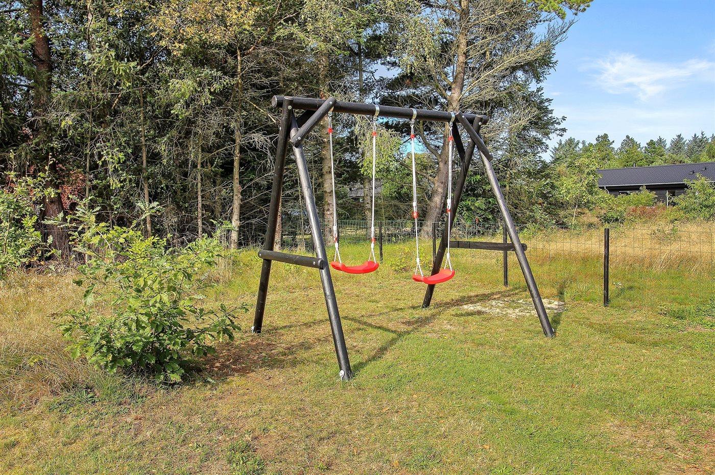 Ferieboligen er beliggende på en 1600 m² stor naturgrund. Grunden er indhegnet. Der er 4100 m til havet. Nærmeste forretning er beliggende i en afstand af 800 m. Til ferieboligen hører 50 m² terrasseareal. Desuden er der 10 m² overdækket terrasse. Gynge. Parkering ved ferieboligen.