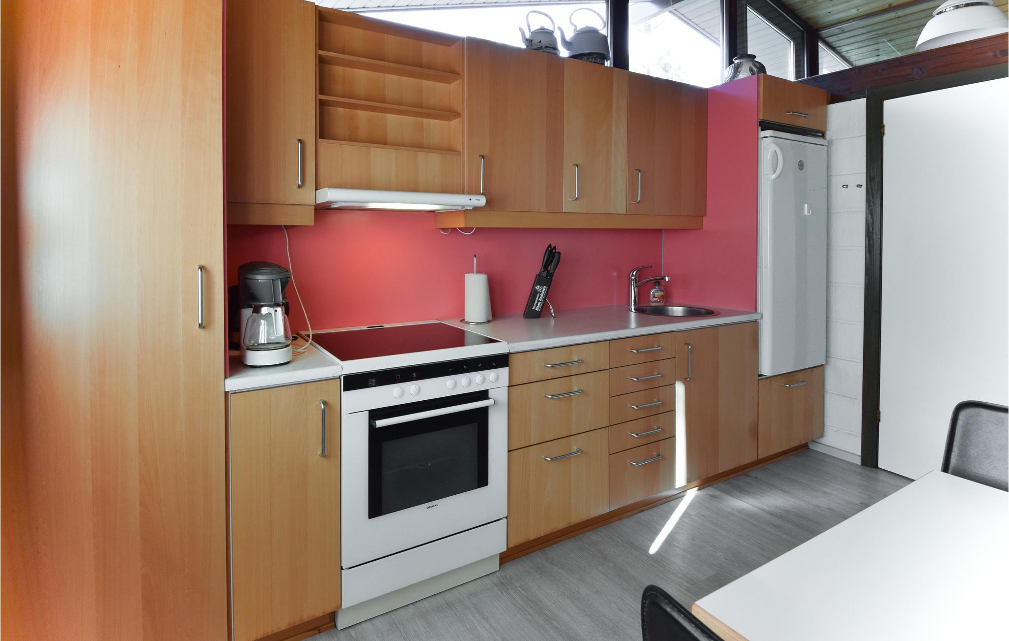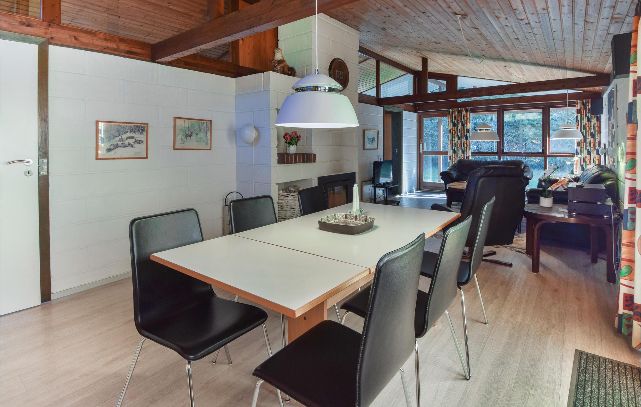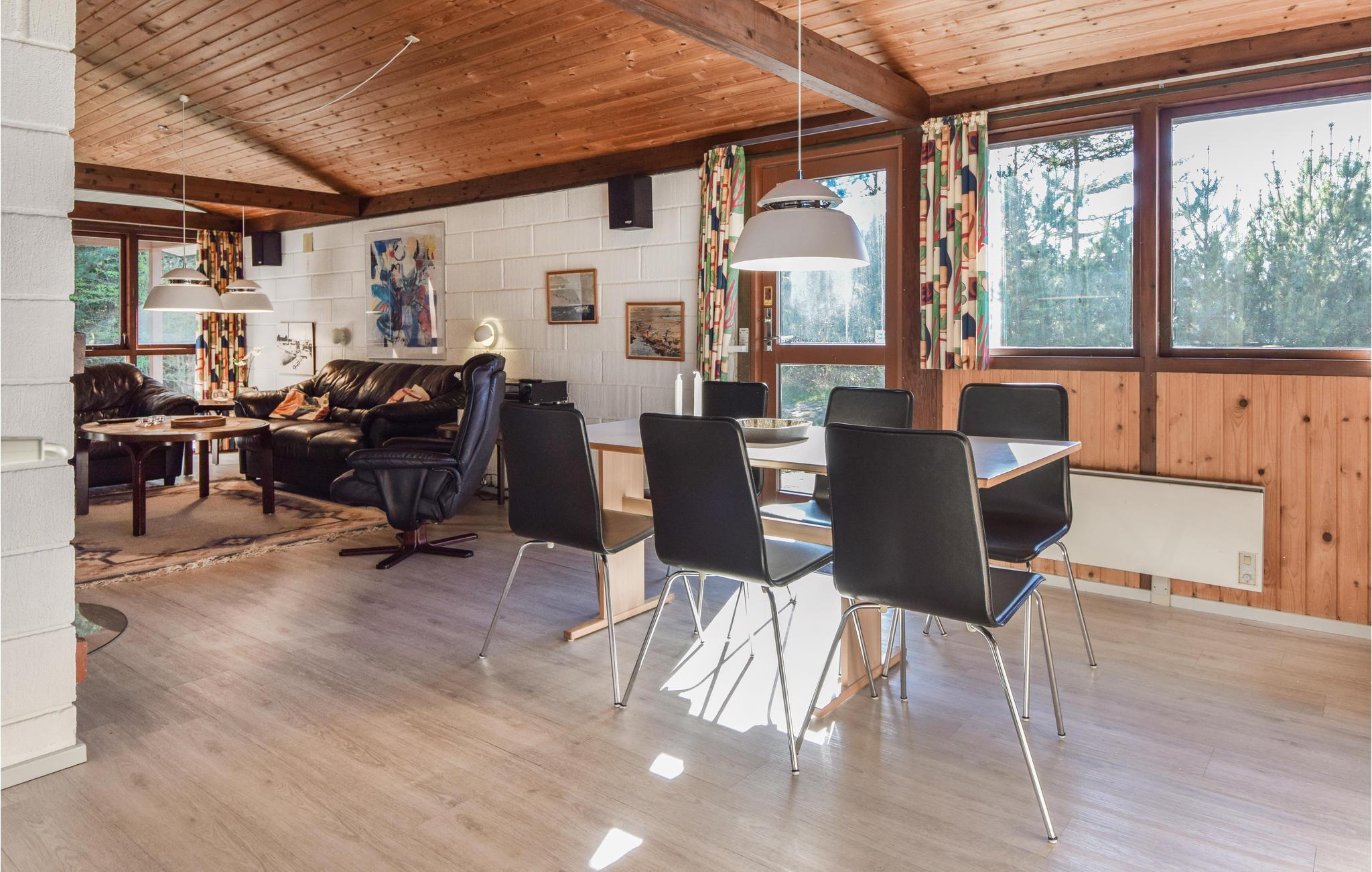 Lad ferien gå til Houstrup og dette fine sommerhus. Huset ligger på en grøn grund i et skovklædt område med flere sommerhuse. Det er indrettet med komfortable møbler og synlige loftsbjælker. Ved siden af sofagruppen er der en lukket pejs, der giver behagelig varme og hygge. Endvidere findes her 3 soveværelser med plads til i alt 6 personer samt et pænt badeværelse med gulvvarme.