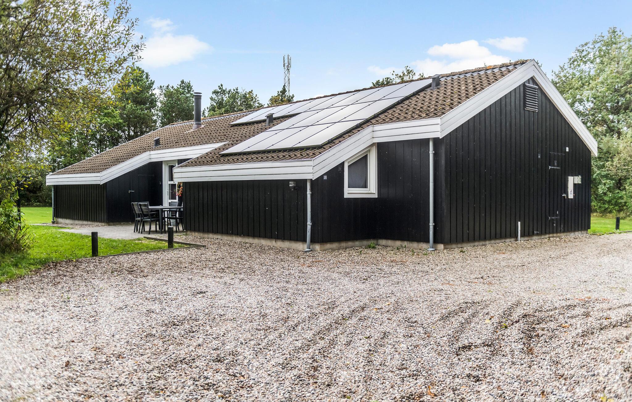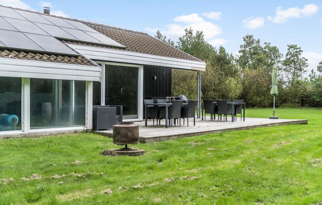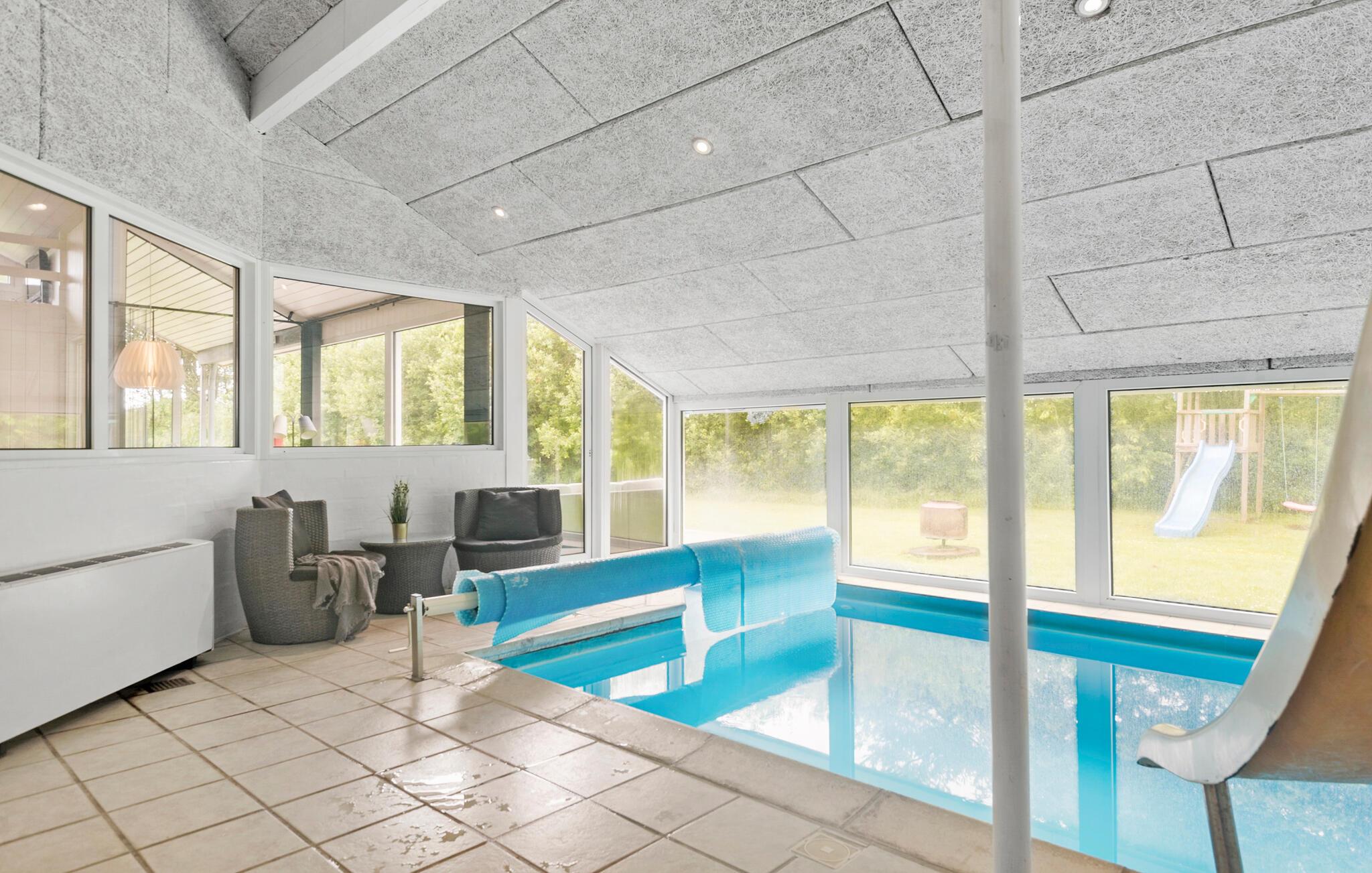 Velkommen til dette yderst velholdte hus. Herfra er der ikke langt til den betagende Vesterhavskyst. Start morgenen med en kop kaffe på den store terrasse, mens børnene leger i haven og hopper på trampolinen. Dyk ned i husets luksuriøse indendørspool, som er udstyret med en vandrutsjebane og et spabad. Efter en forfriskende svømmetur kan I slappe af i husets egen sauna. De moderne og komfortable møbler i stuen indbyder til hyggelige aftener, måske med en spændende film eller en god bog.