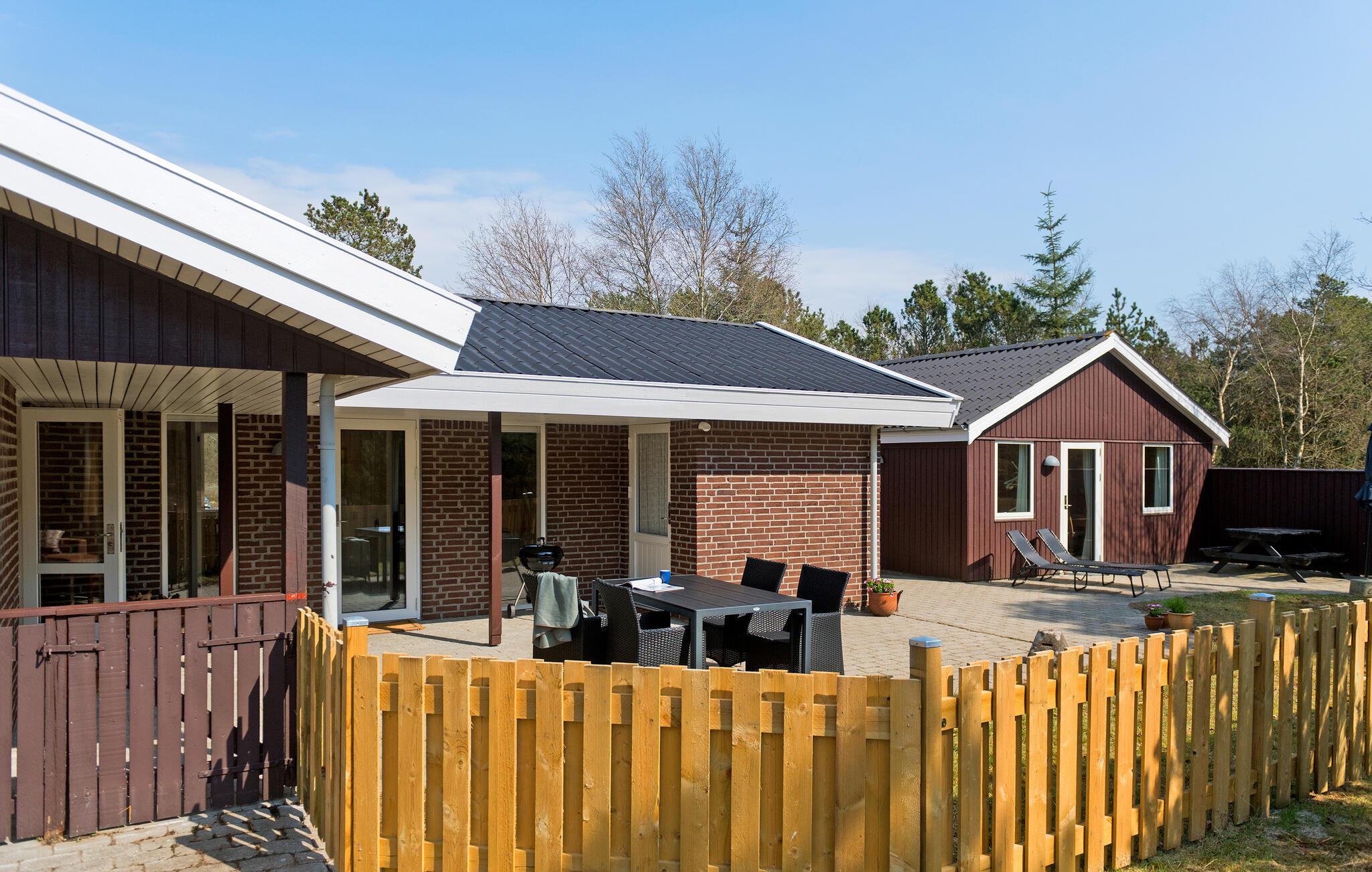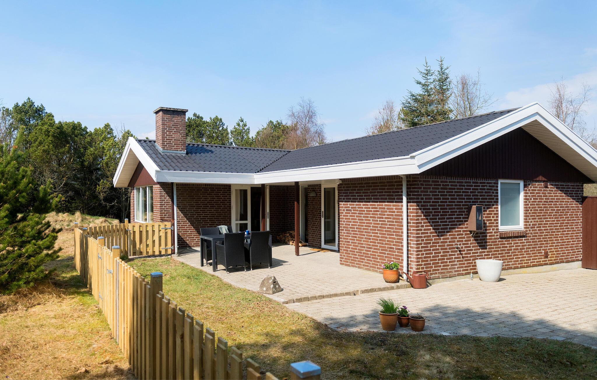 I kan se frem til nogle fredfyldte dage i naturskønne omgivelser på den jyske vestkyst. I husets åbne opholdsrum kan I læne jer tilbage efter dagens program. Det store sofaområde med udsigt til det grønne lægger op til ren afslapning med gode bøger eller en serie i fjernsynet. Tilbered dagens måltider sammen i det lyse, åbne køkken. Dæk op til middagen i en hyggelig atmosfære ved spisebordet og rund måske dagen af med en stille stund i saunaen, hvor varmen gør noget godt for de ømme muskler oven på nogle lange gåture i klitterne.