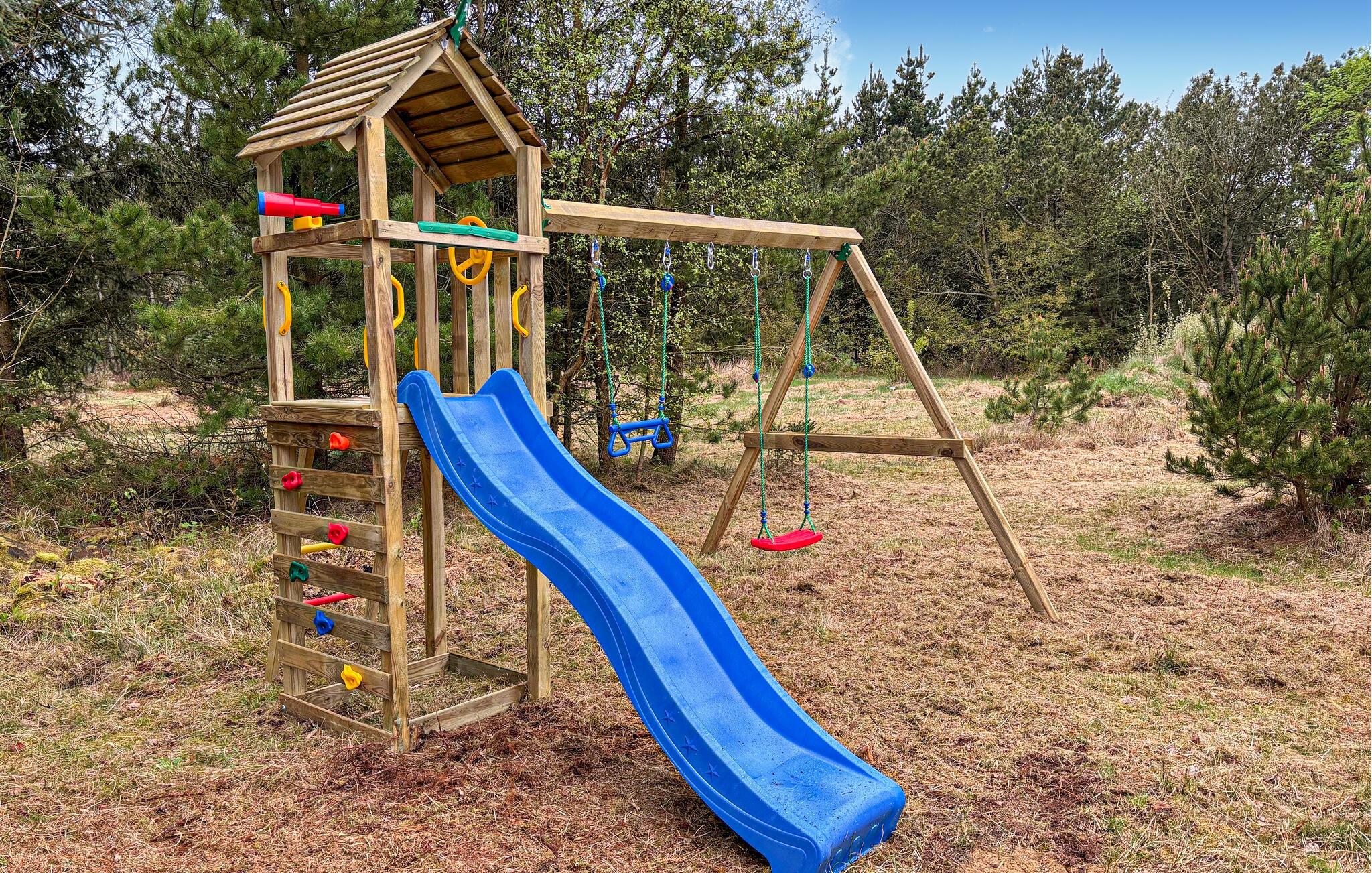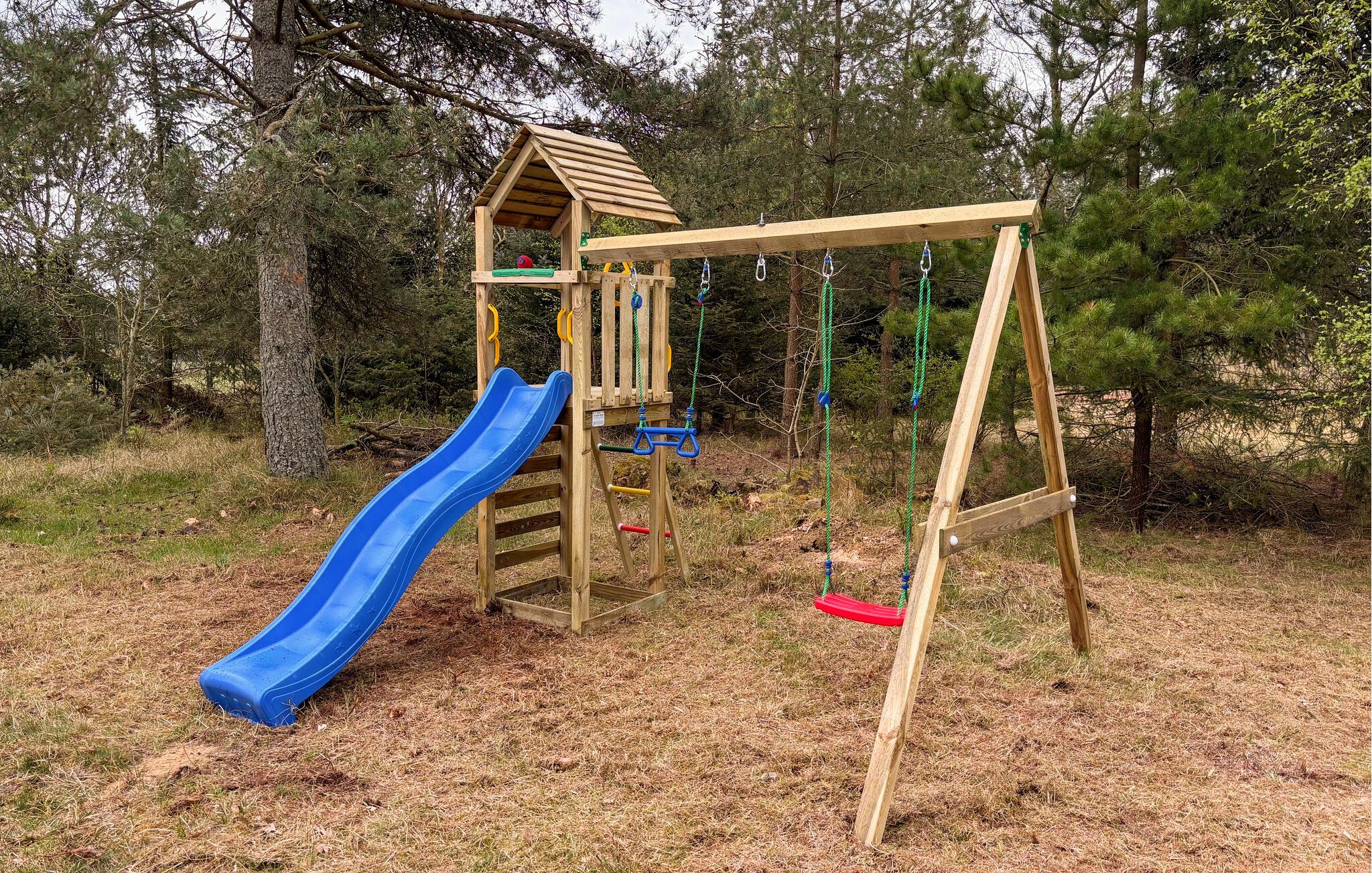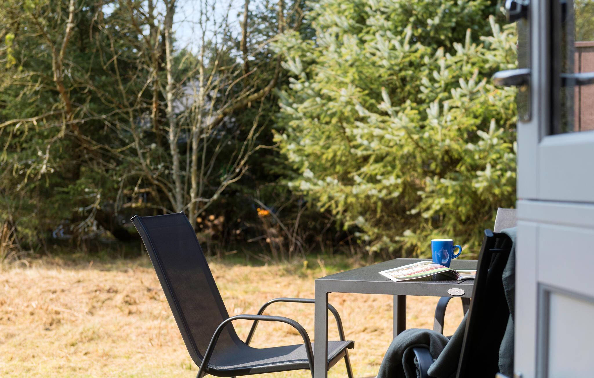 Træd ud på den rummelige, indhegnede terrasse. Tag plads i siddegruppen, sæt jer med en god bog eller nyd blot skovens dybe stille ro. Børnene kan bevæge sig og lege frit på den ugenerte grund. I kan også nemt lade jeres hund løbe frit omkring i haven.