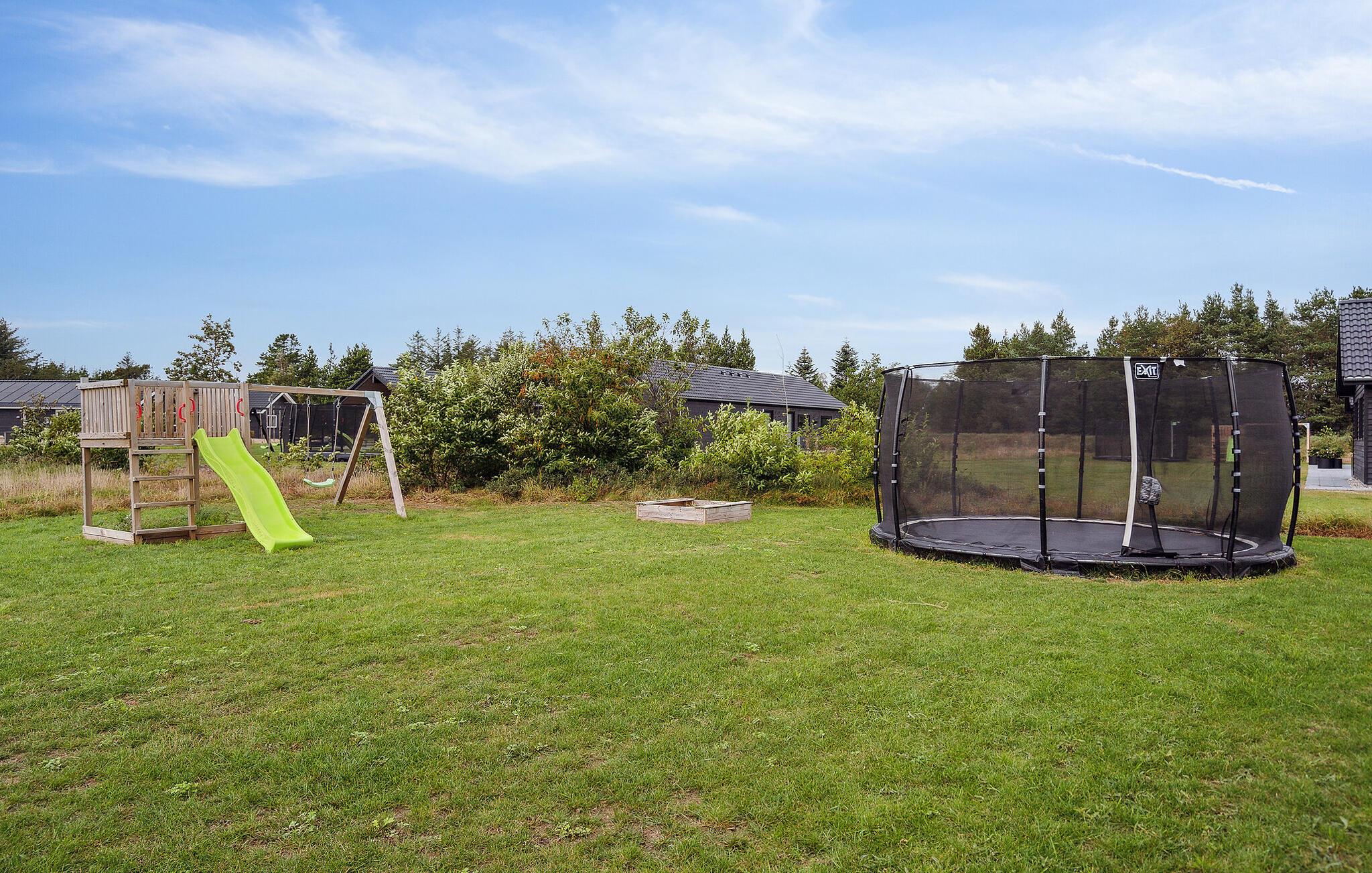 Brug jeres store terrasse med komfortable liggestole og et spabad til at slappe af i det fri og lad børnene bruge legefaciliteterne i den velholdte have. Nyd atmosfæriske grillaftener, mens I nyder roen i omgivelserne.