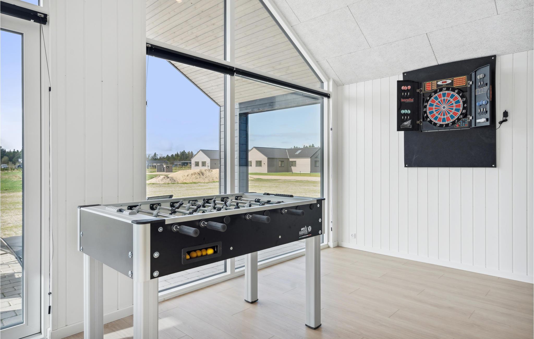 Velkommen til dette meget rummelige og skønne sommerhus i Houstrup. Dette sommerhus er lavet til jeres udvidede familie eller flere familier, der holder ferie sammen. Her kan I nyde tiden sammen, og I kommer bestemt ikke til at kede jer. Det smukke hus er hyggeligt indrettet og byder på mange aktiviteter. I al slags vejr og på alle tider af året kan I nyde badesjov i jeres swimmingpool med rutsjebane og spabad. Hvis der er for meget action, kan I også trække jer tilbage i saunaen og slappe af. I kan også bruge det store aktivitetsrum og spille dart, billard, bordtennis eller bordfodbold. Her kan I afslutte aftenen ved den lille bar og siddepladserne og nyde samværet med de andre.