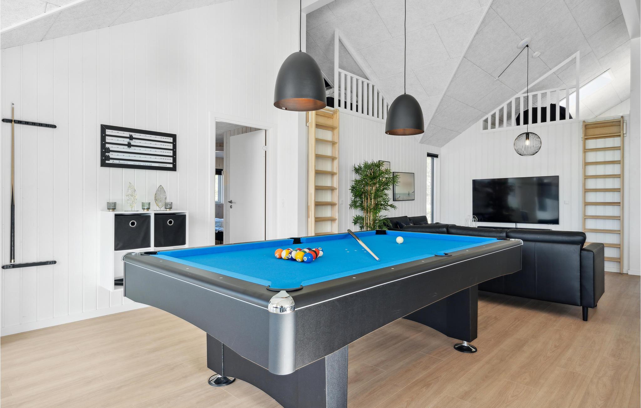Rummeligt sommerhus i Houstrup med pool, sauna og aktivitetsrum for hele familien.