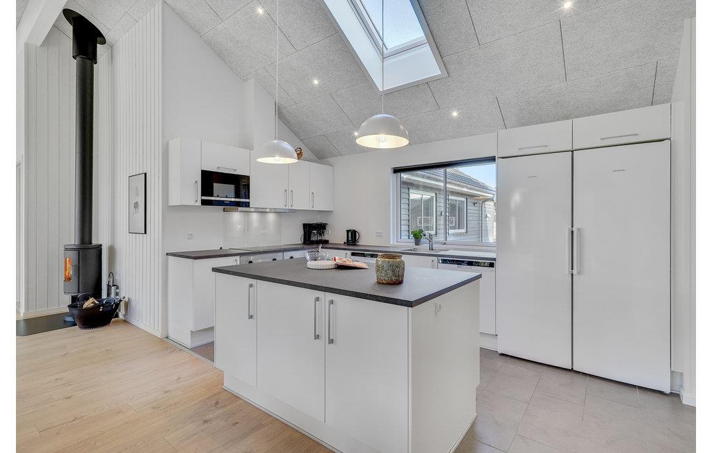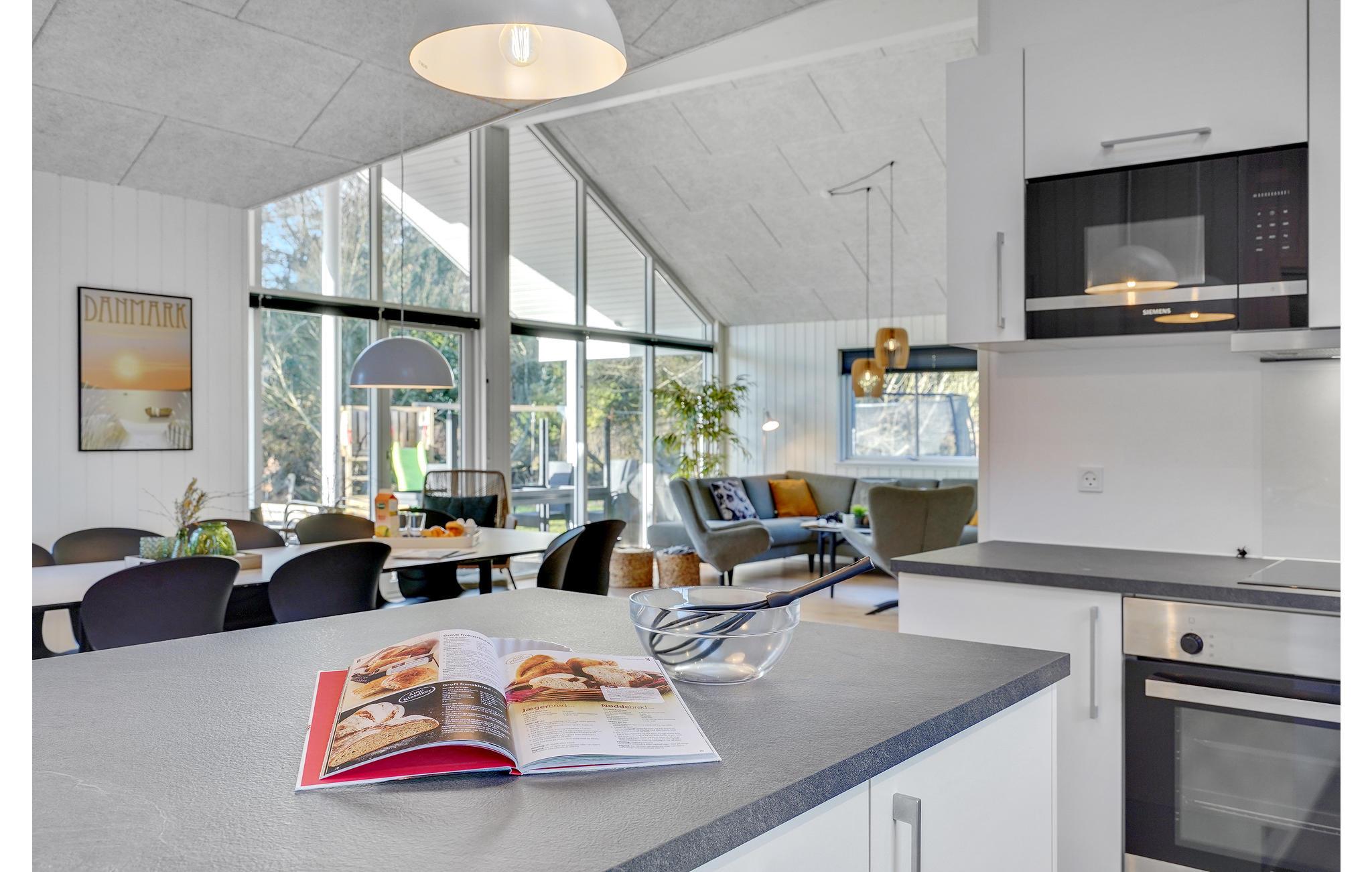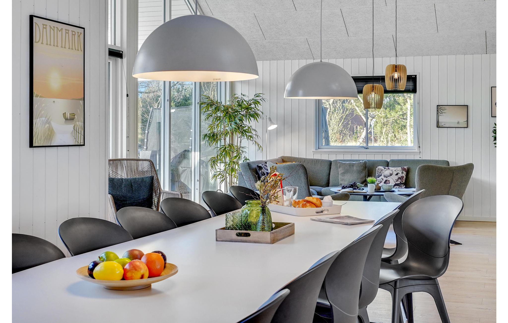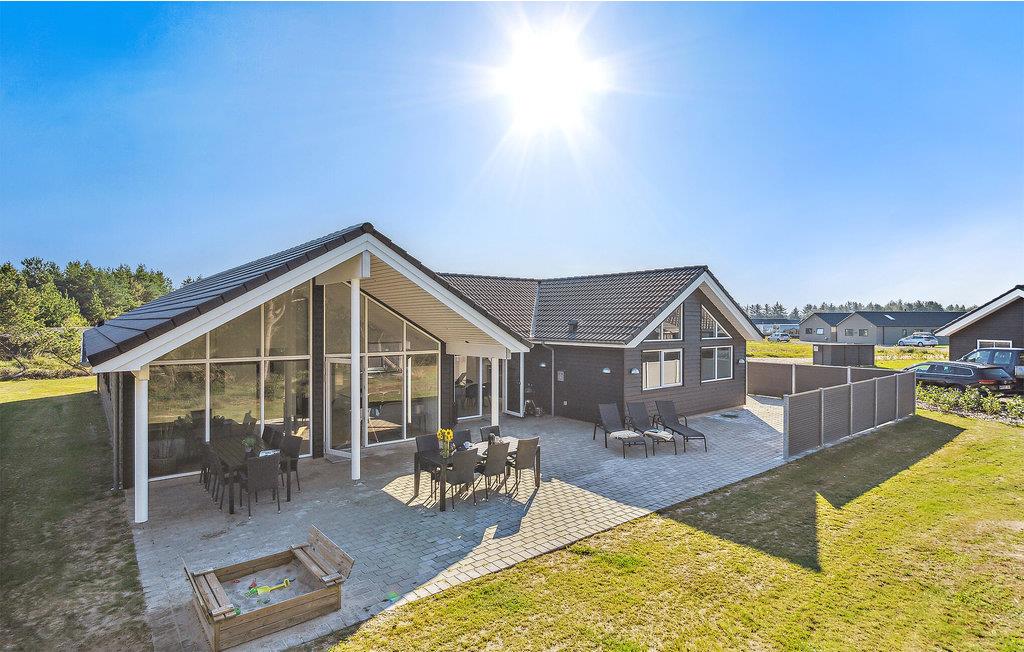 Velkommen til et stort og moderne feriehus, hvor der er god plads til at fejre en begivenhed i familien eller tage af sted med jeres gode venner. Måske vil I begynde dagene med at svømme et par baner i poolen eller lade børnene få en rutsjetur fra morgenstunden, inden dagen går i gang med planlægning og udflugter. Senere kan I få varmen i saunaen eller spabadet efter en lang gåtur ved stranden. Huset er lavet til alle vejrforhold og årstider, for aktivitetsrummet byder på mange timers underholdning. Snup et spil billard, dart og bordfodbold eller måske et brætspil. I kan også tilbringe hyggelige aftener på den overdækkede terrasse. Her kan I sætte jer mageligt til rette, mens de små leger i sandkassen og de store børn spiller fodbold på græsplænen.