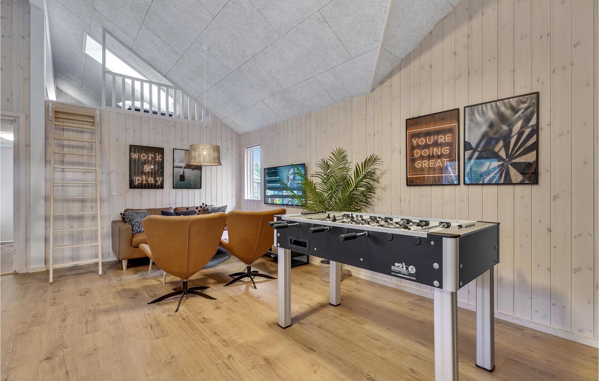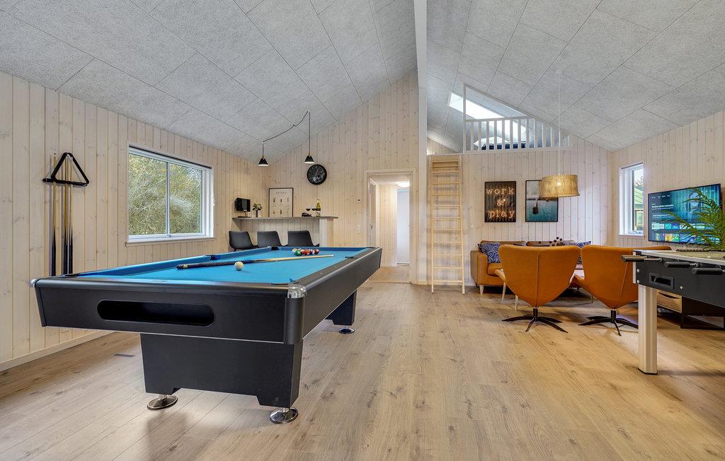 Det dejlige feriehus ligger syd for Ringkøbing Fjord og byder jer hjertelig velkommen. De moderne og fuldt udstyrede værelser tilbyder plads og privatliv til flere familier, der holder ferie sammen. I kan underholde jer selv med et spil bordtennis eller bordfodbold og få mange sjove timer til at gå med at svømme i den indendørs swimmingpool, eller slappe af i spabadet efter en aktiv dag.
