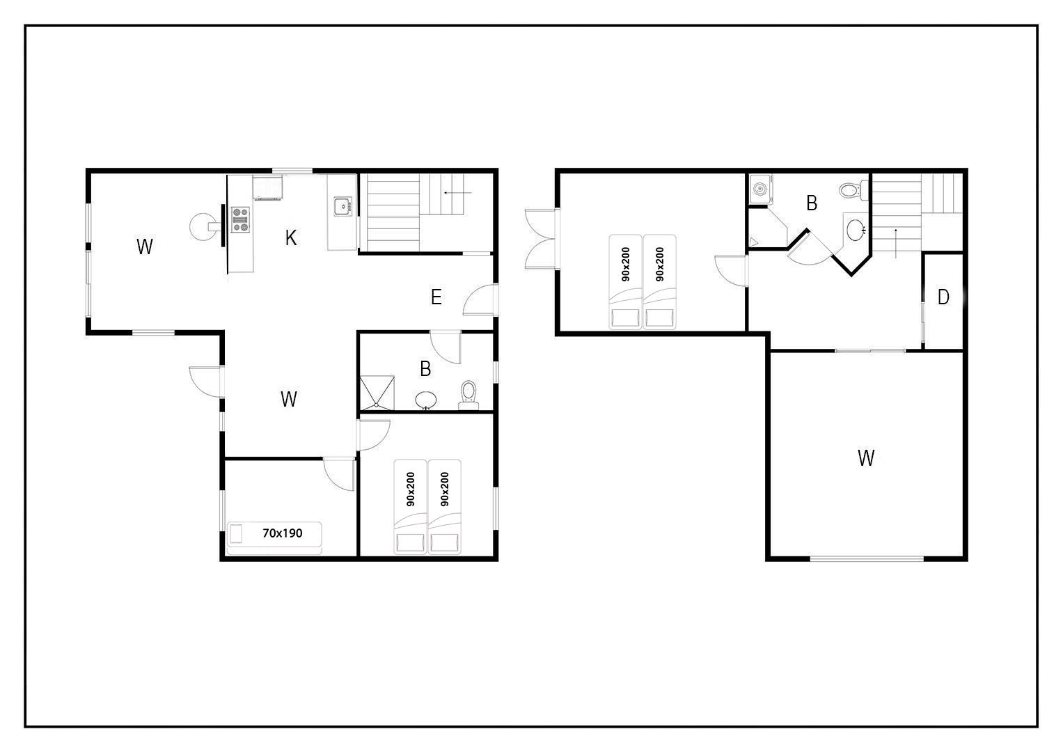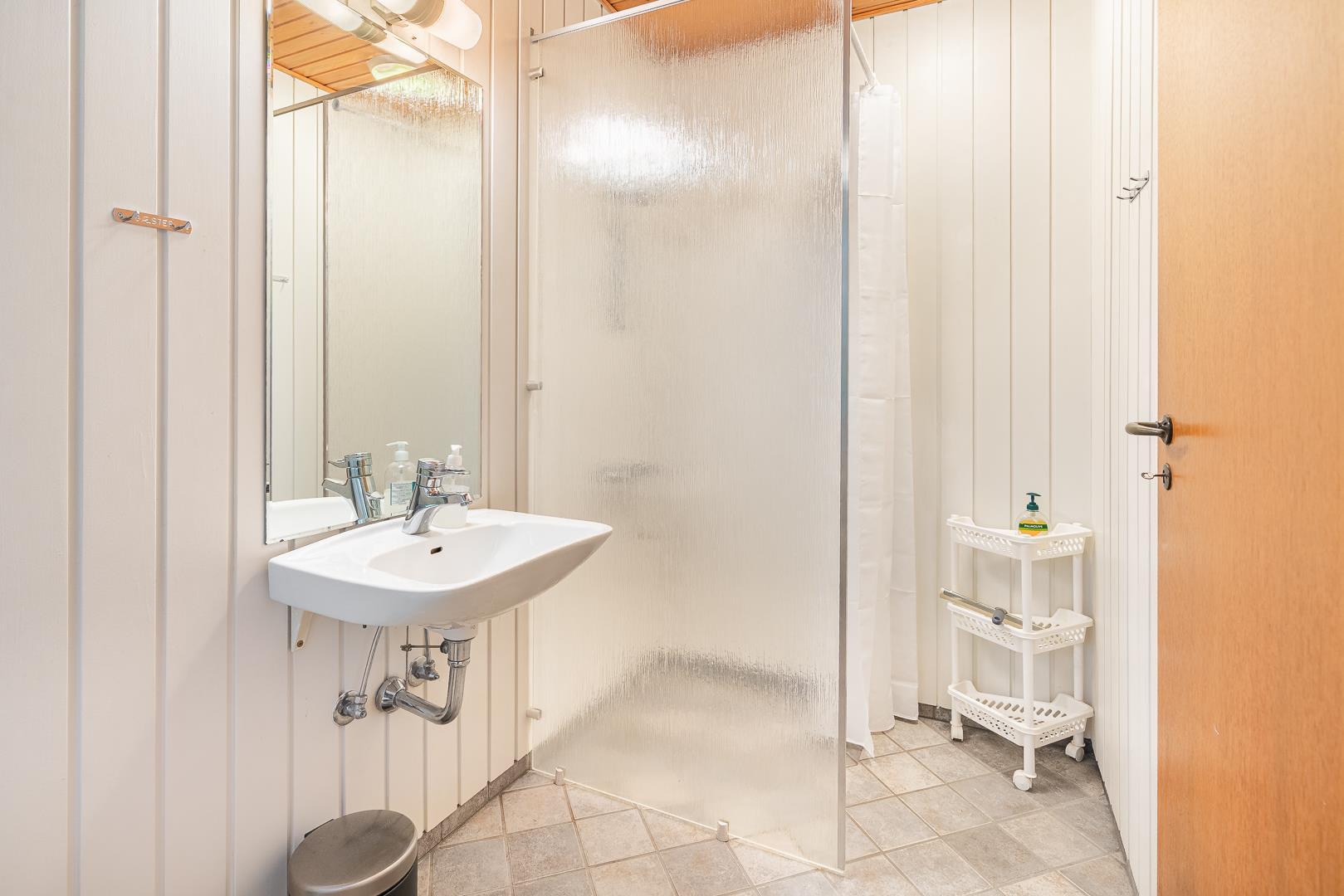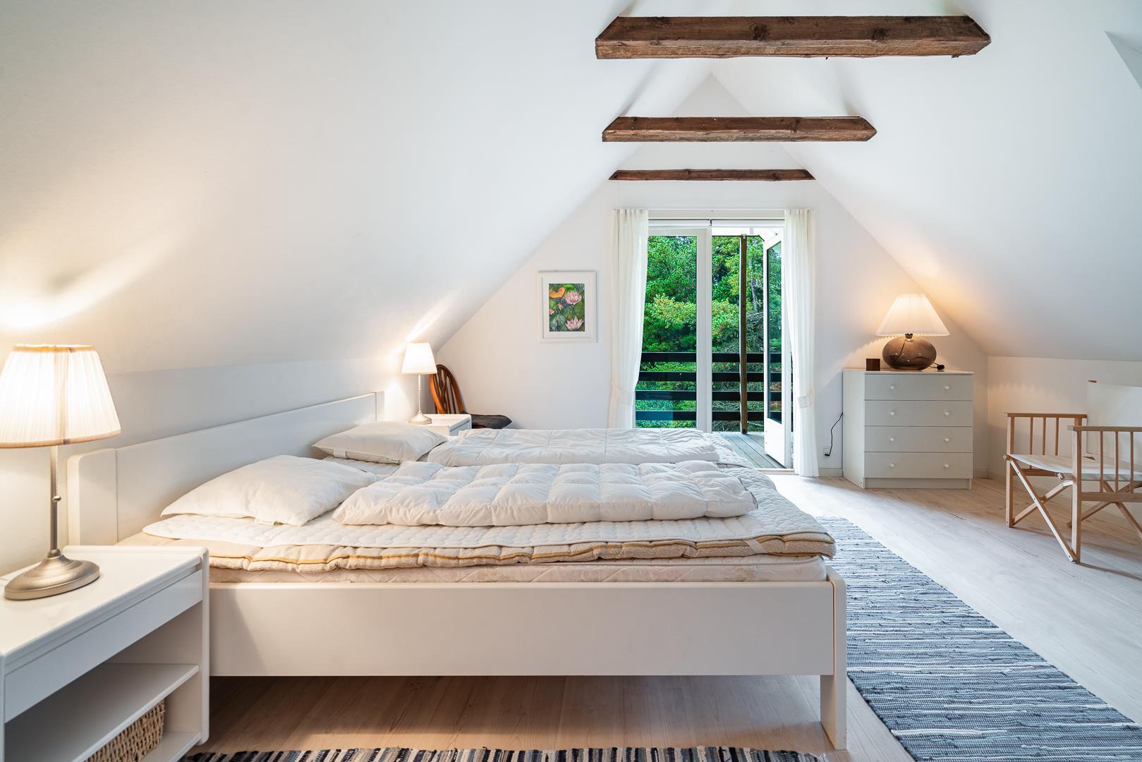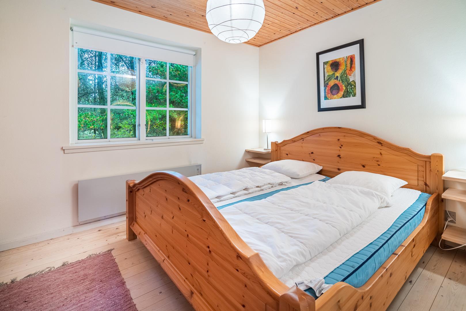 Sommerhuset rummer tre soveværelser – to med dobbeltsenge og ét med køjeseng, ideelt til børn eller venner. De to badeværelser er lyse og moderne med gulvvarme, så du starter dagen på den bedste måde.
