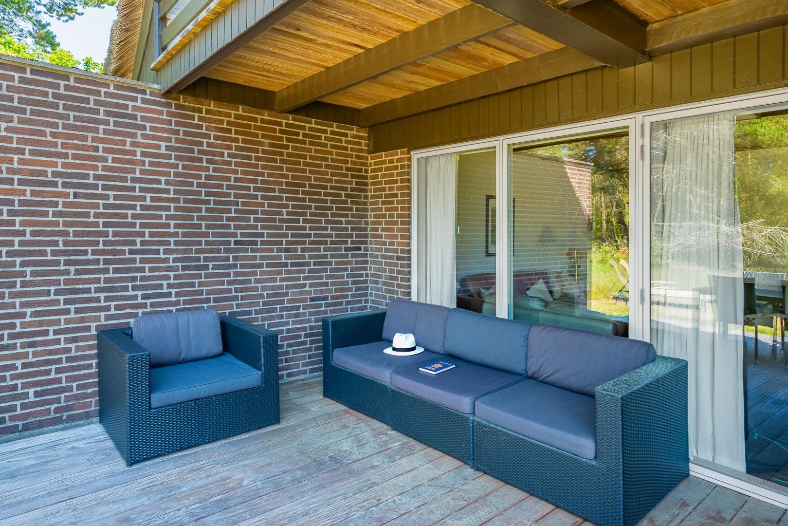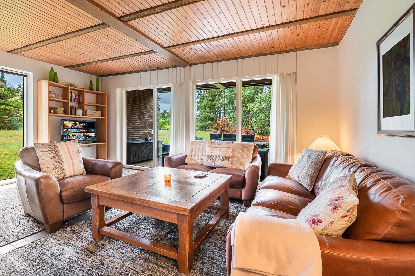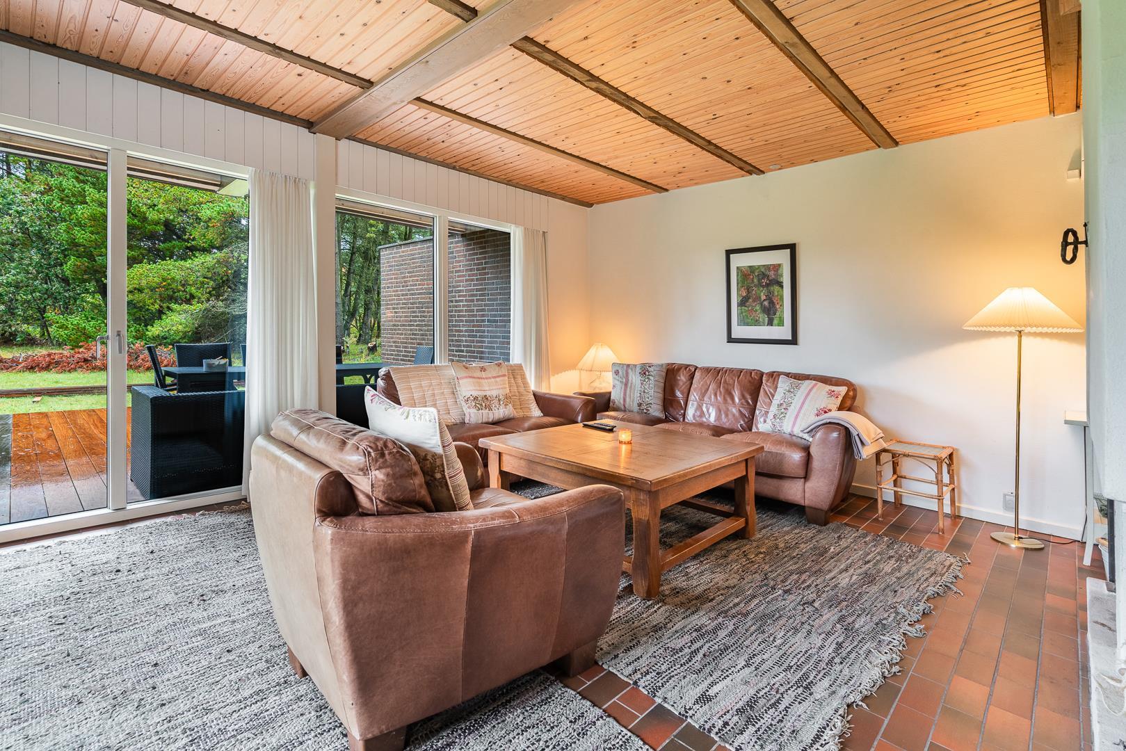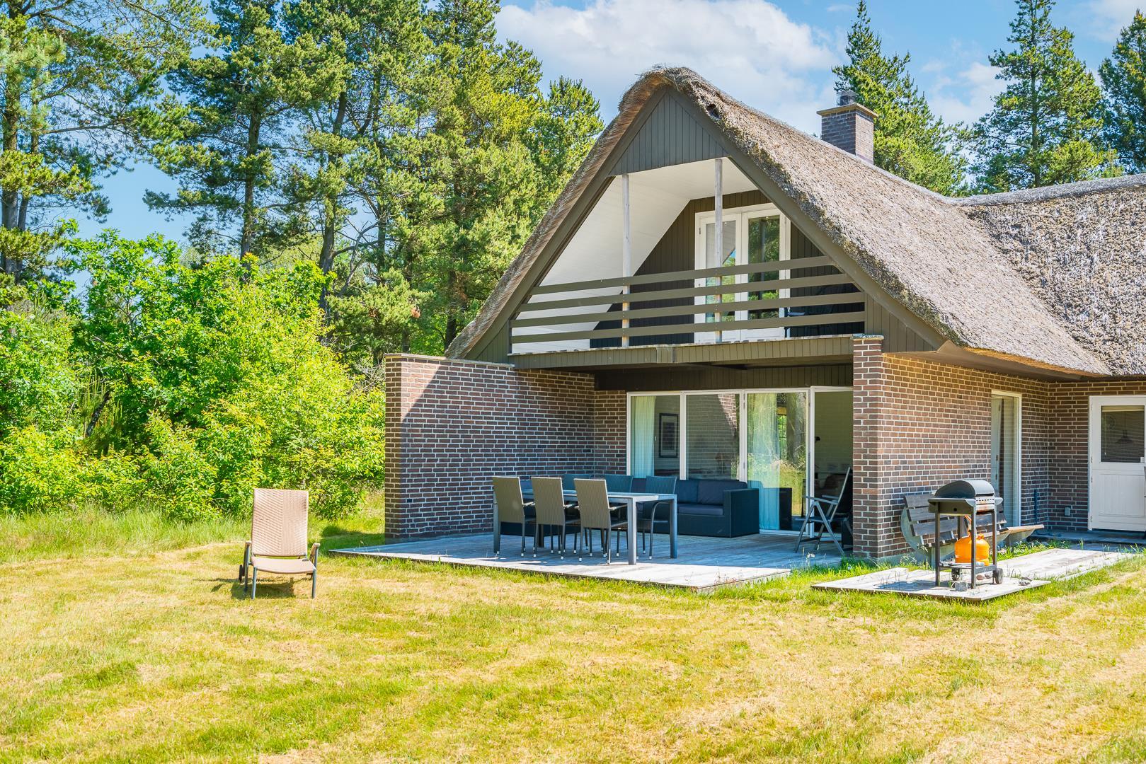 Sommerhuset ligger på en fredelig naturgrund omgivet af smuk vestjysk natur. Den overdækkede terrasse bliver hurtigt et af feriens højdepunkter – perfekt til morgenmad i solen, grillmiddage eller afslappende aftener under åben himmel.