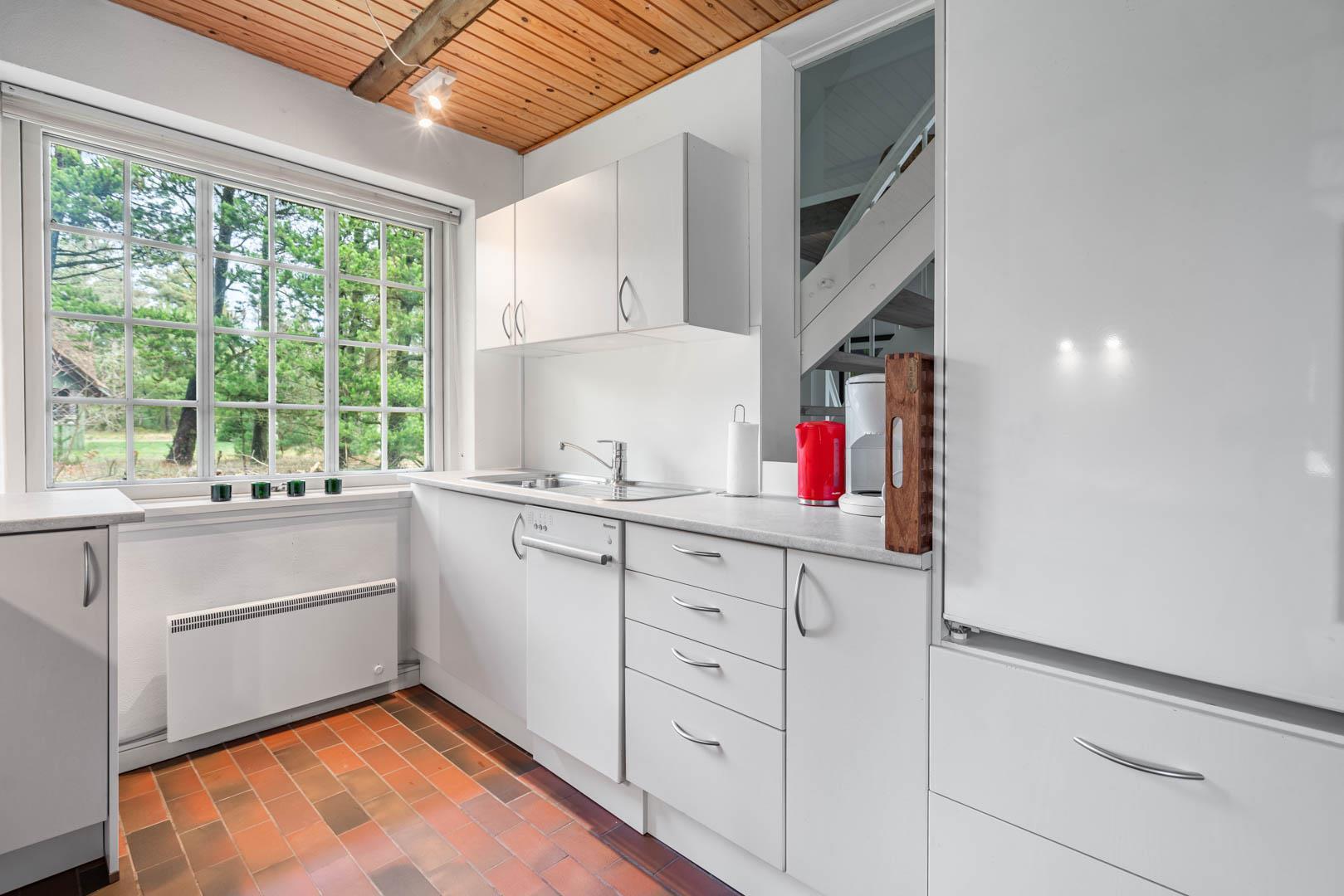 Køkkenet er åbent og moderne indrettet med alt, hvad du har brug for – fra opvaskemaskine til kaffemaskine. Her er der god plads til fælles madlavning, hyggelige måltider og lange snakke over en kop kaffe.
