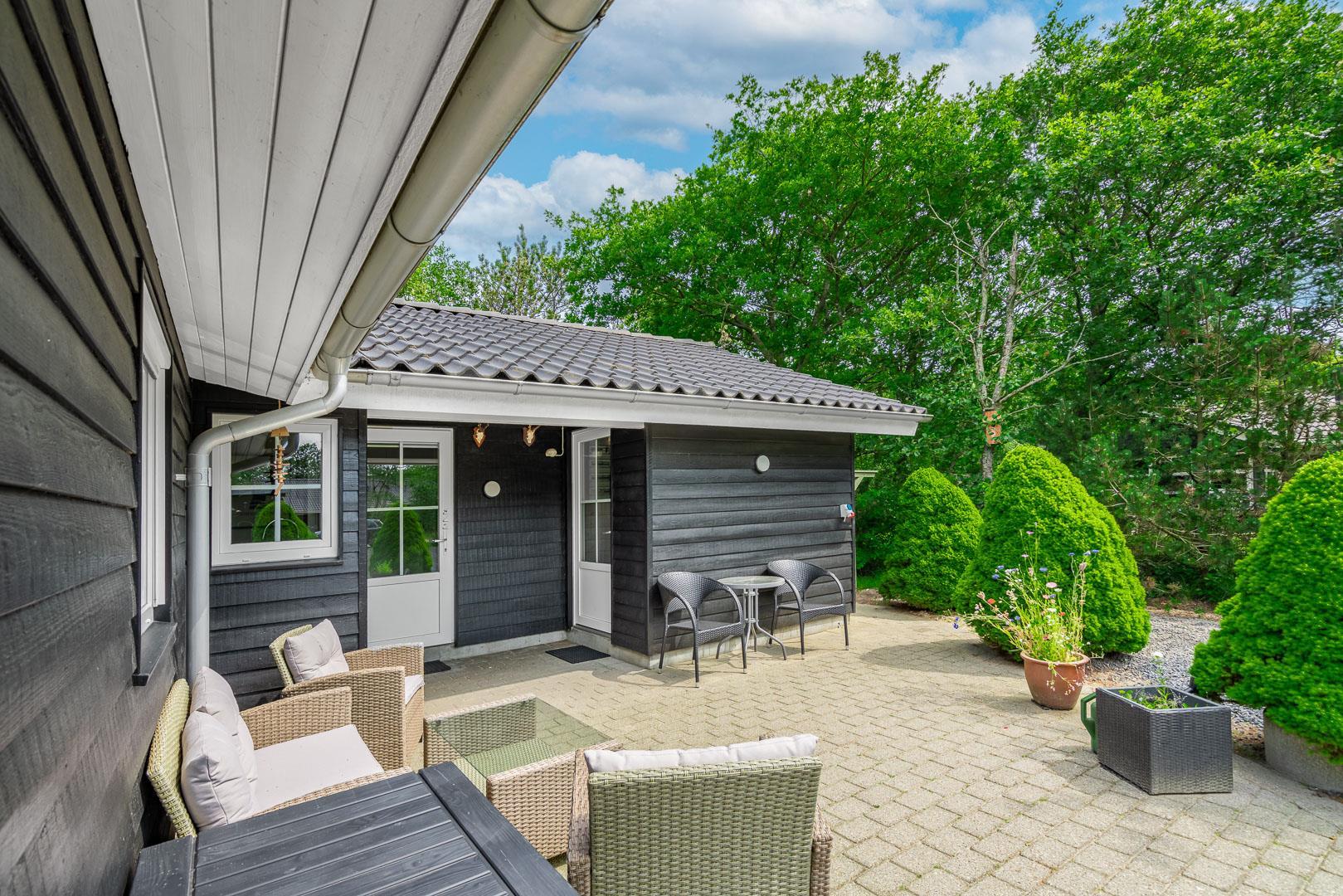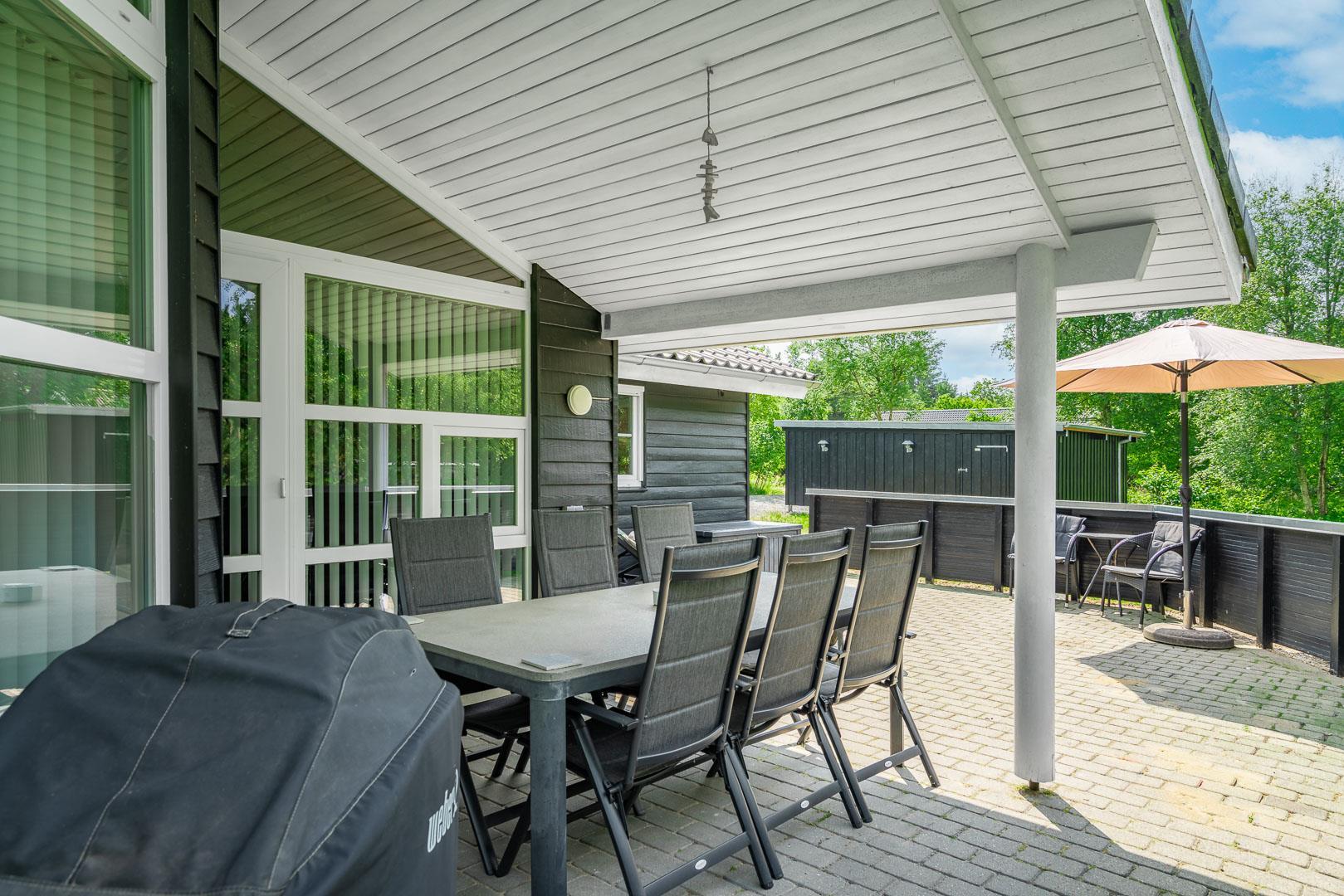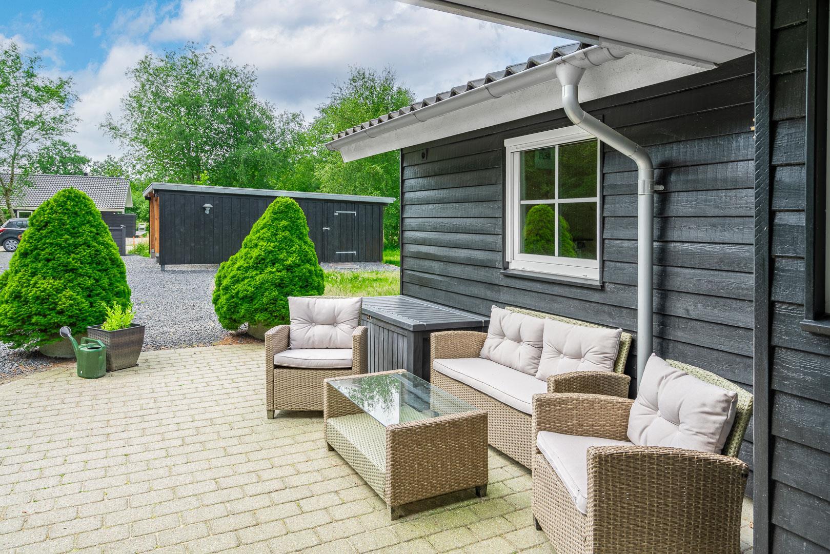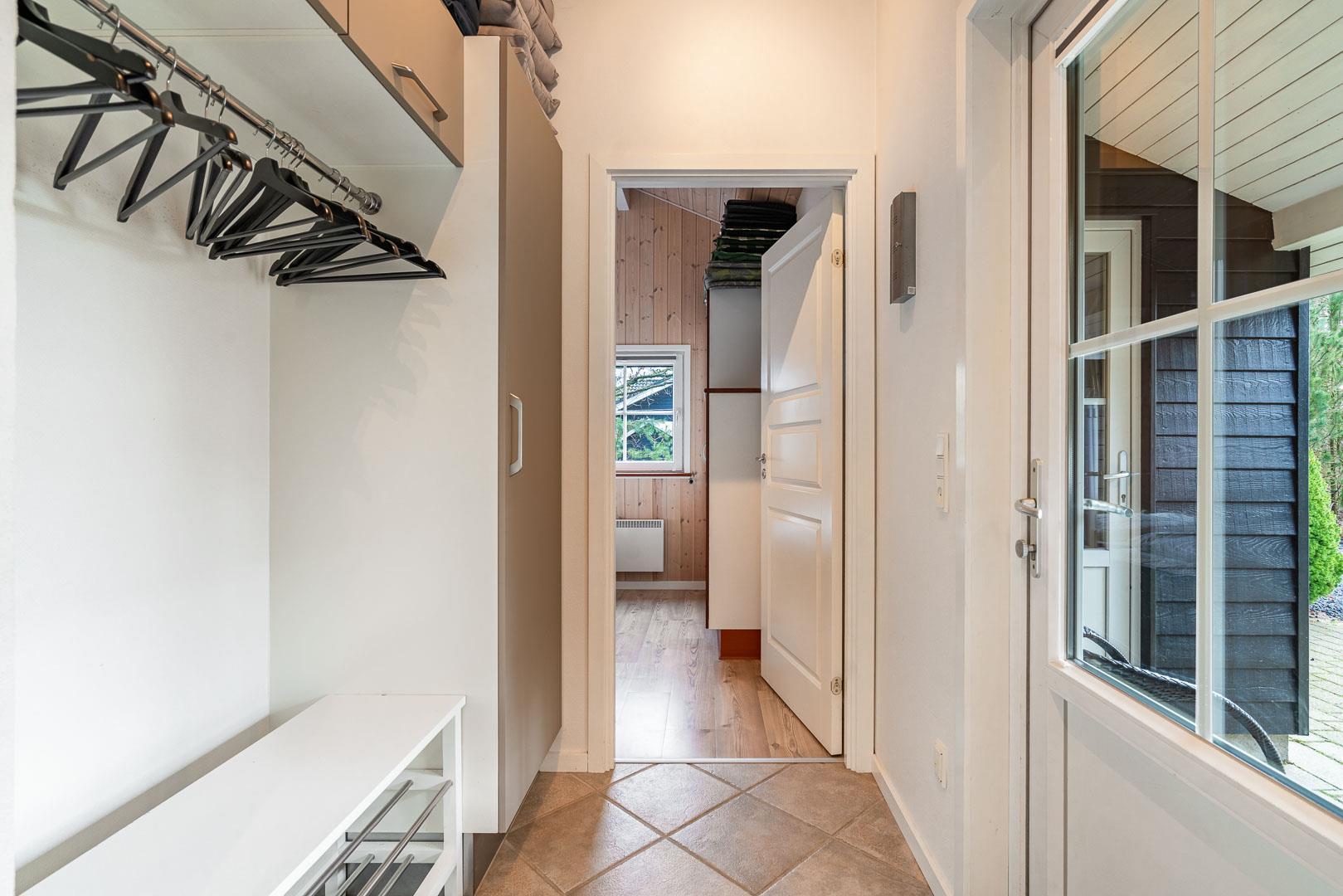 I det praktiske vaskerum, som ligger lige ved den overdækkede indgang, finder du både vaskemaskine og tørretumbler, så du nemt kan håndtere familiens vasketøj under ferien.