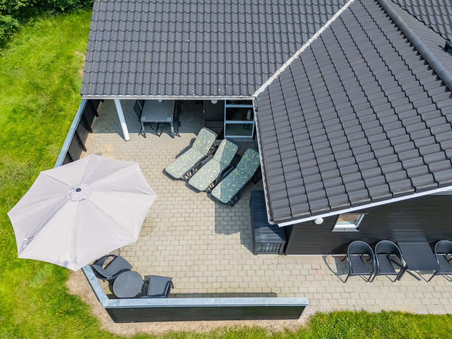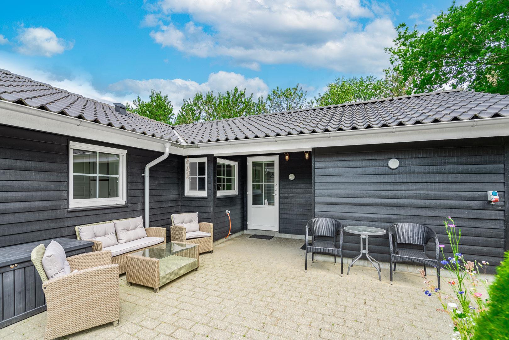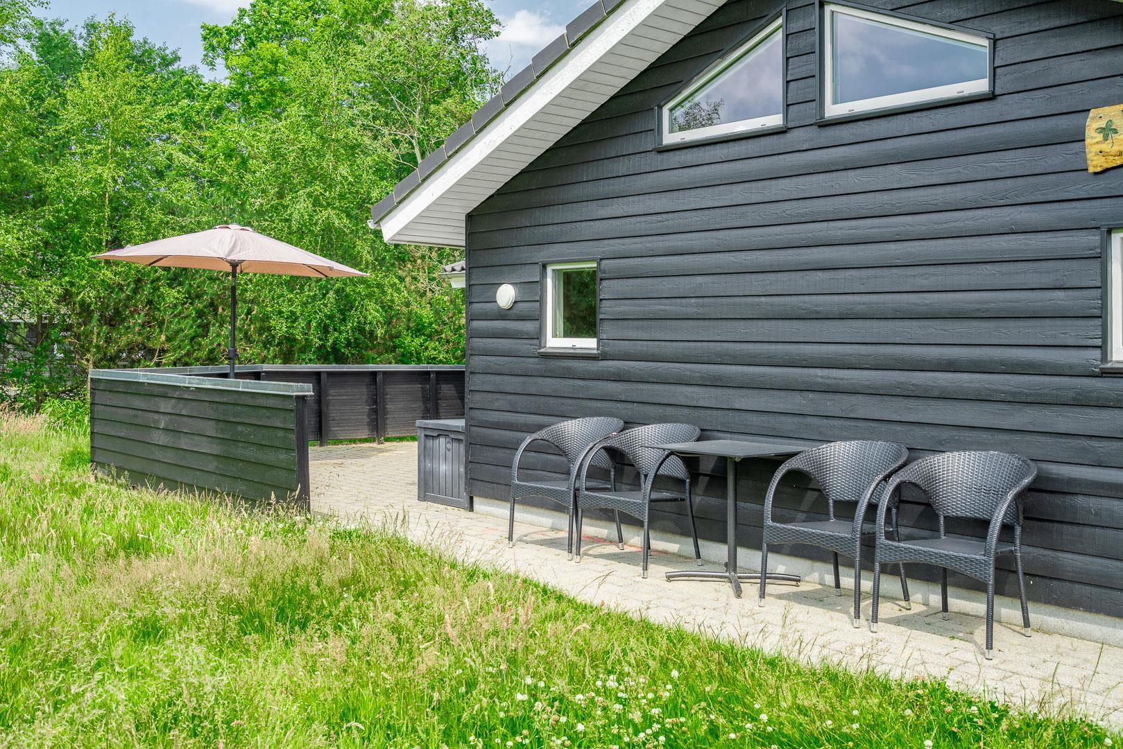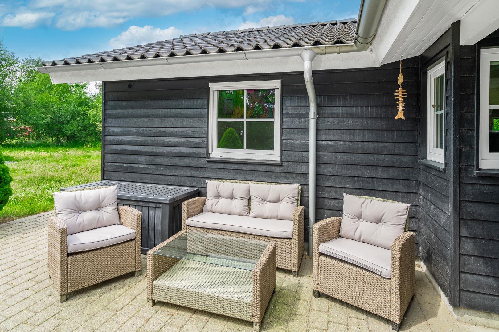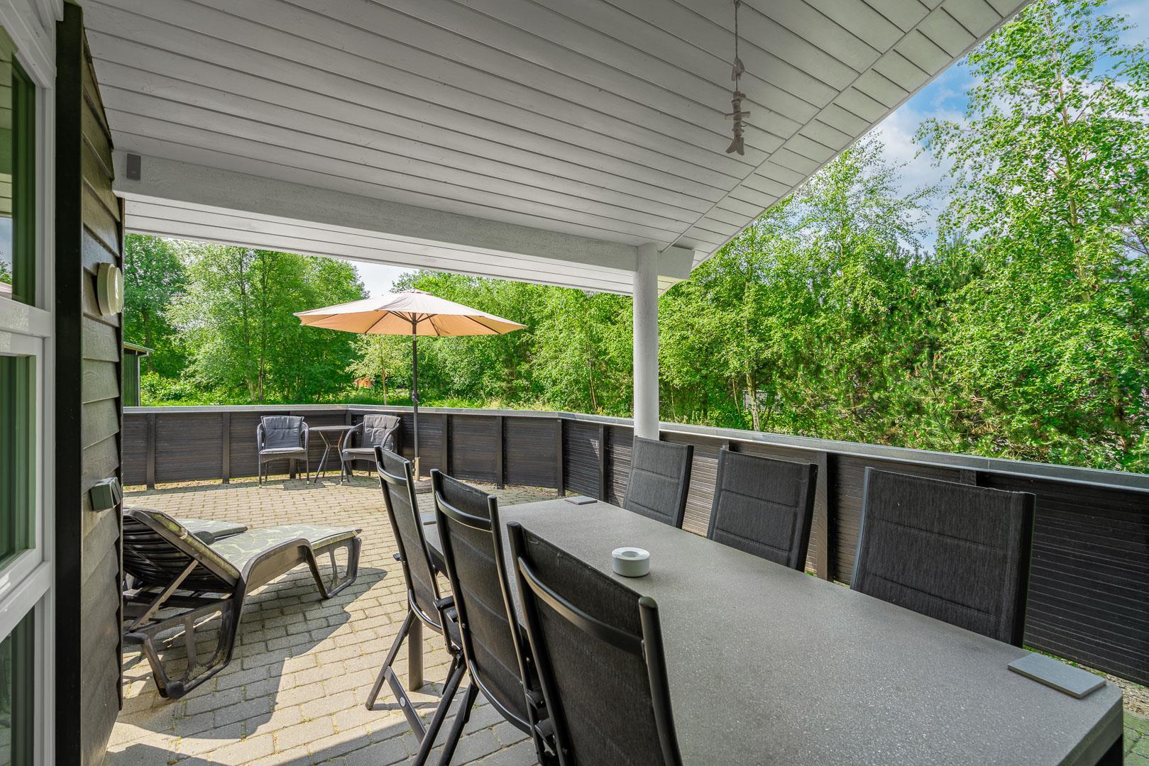 I det praktiske vaskerum, som ligger lige ved den overdækkede indgang, finder du både vaskemaskine og tørretumbler, så du nemt kan håndtere familiens vasketøj under ferien.