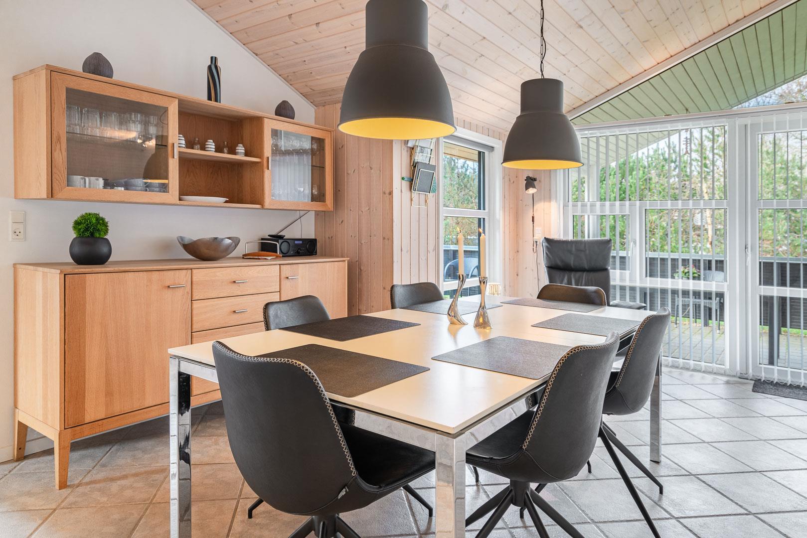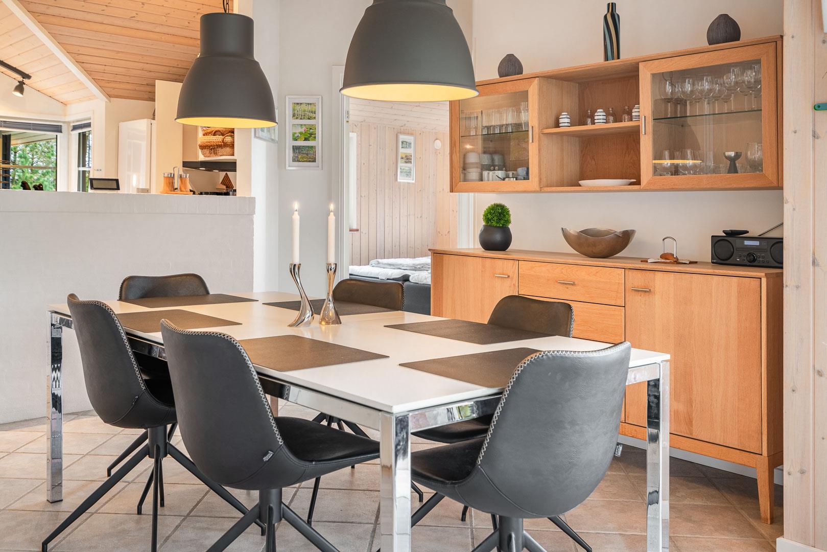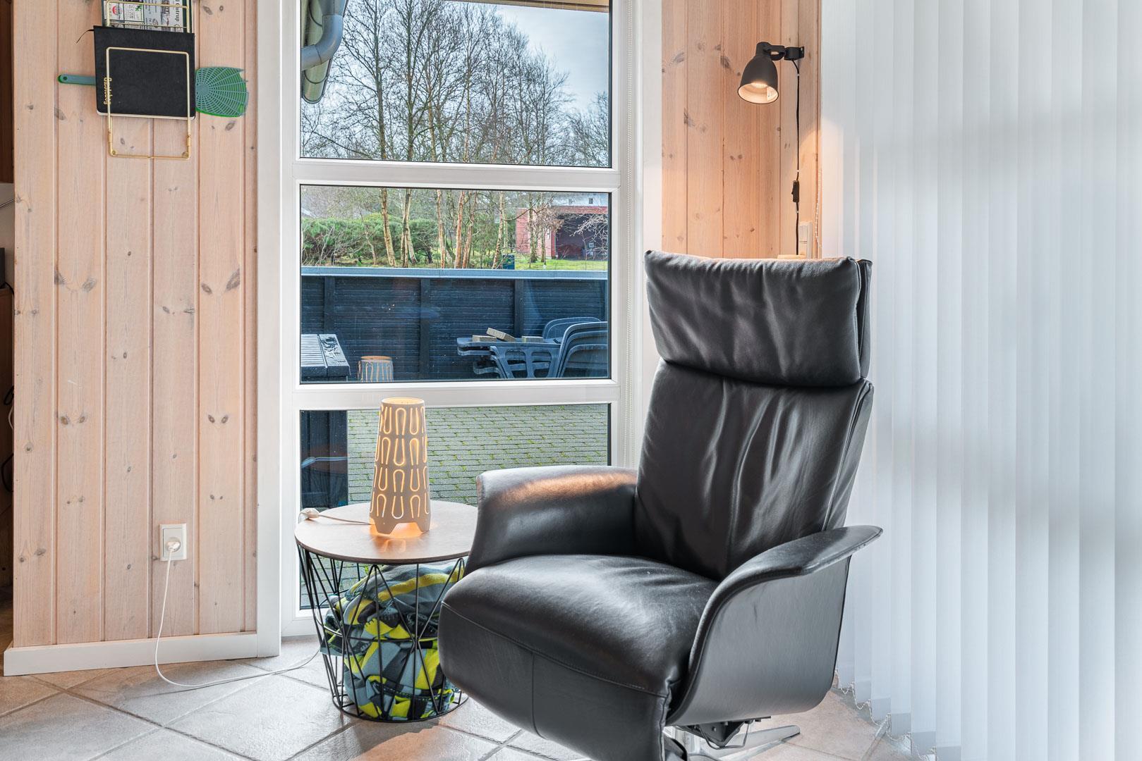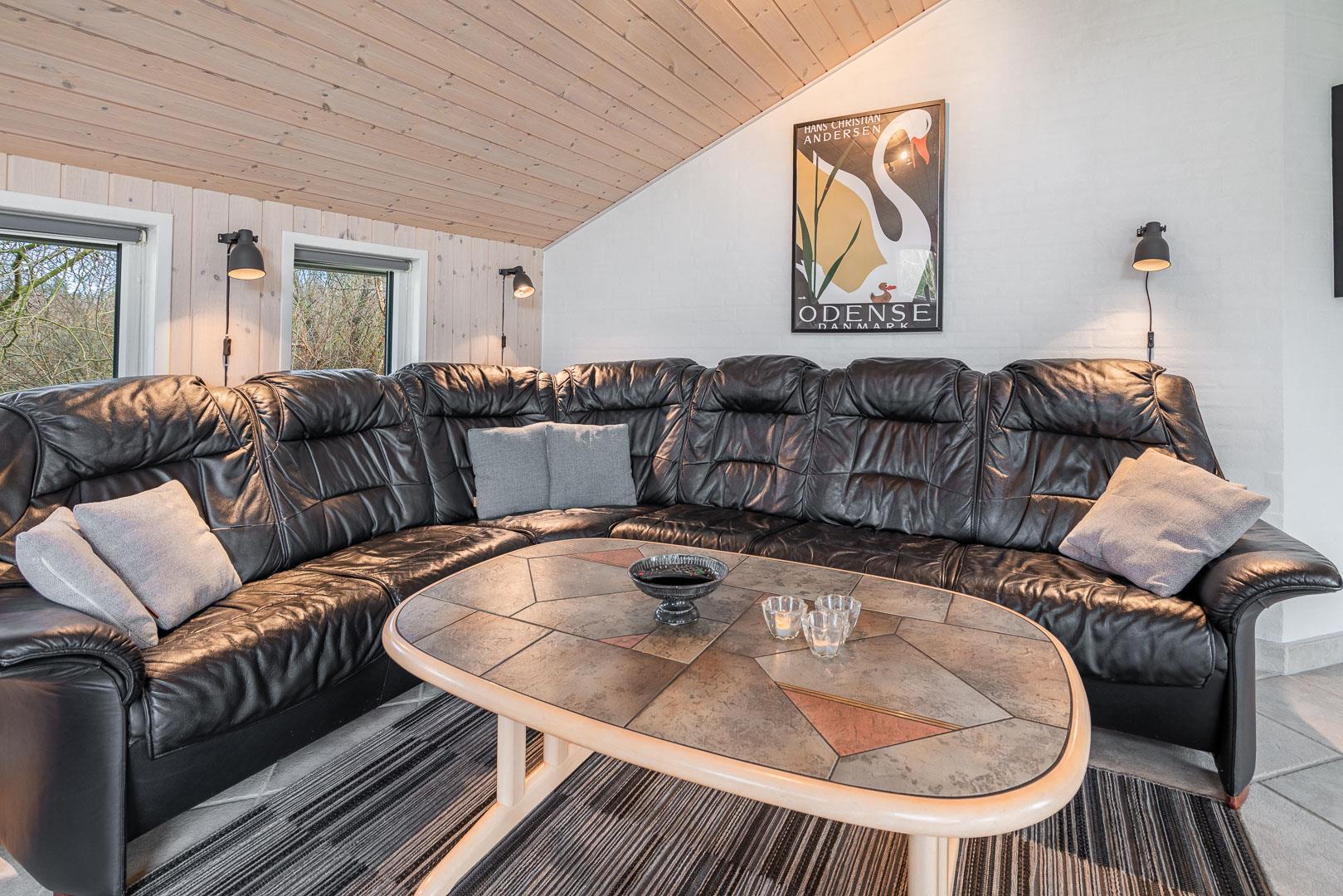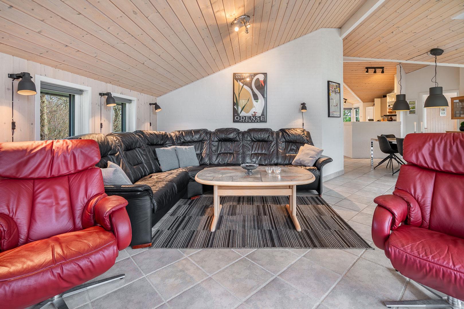 Feriehuset er udstyret med et dejligt køkken fra 2024, hvor madlavning bliver en fornøjelse. Stuen er indrettet med komfortable møbler, hvor hele familien kan samles. Brændeovnen og varmepumpen sørger for både hygge og varme, uanset årstiden.