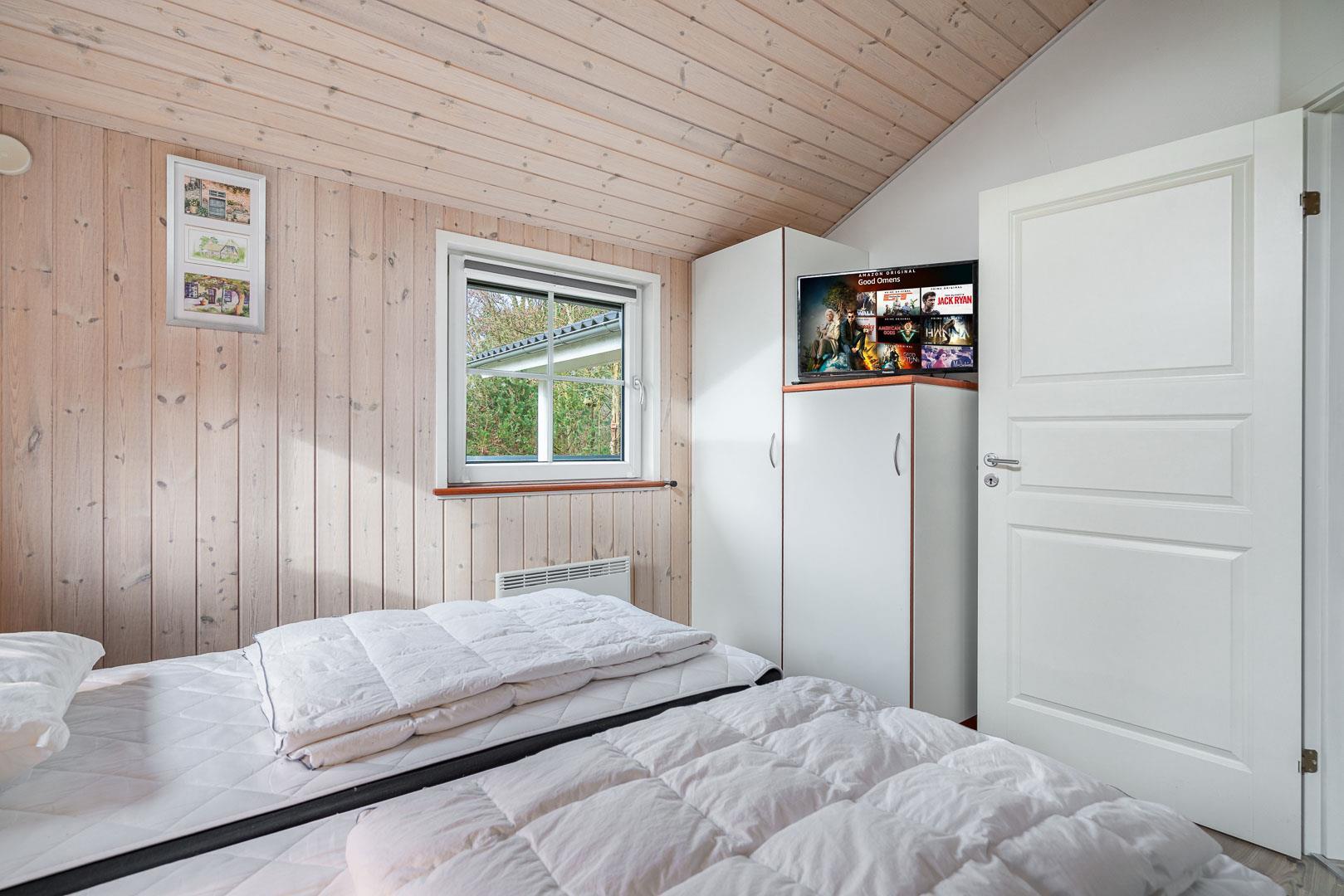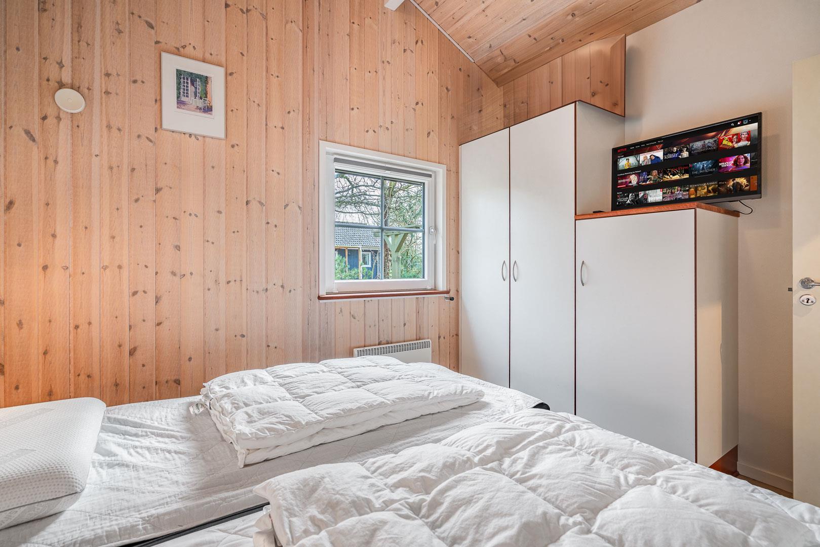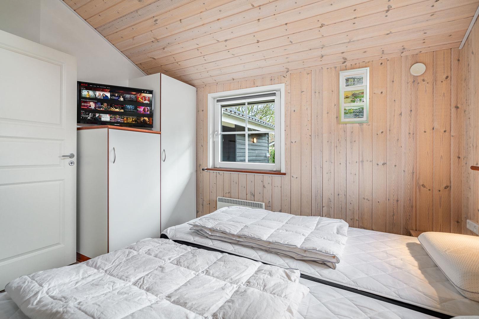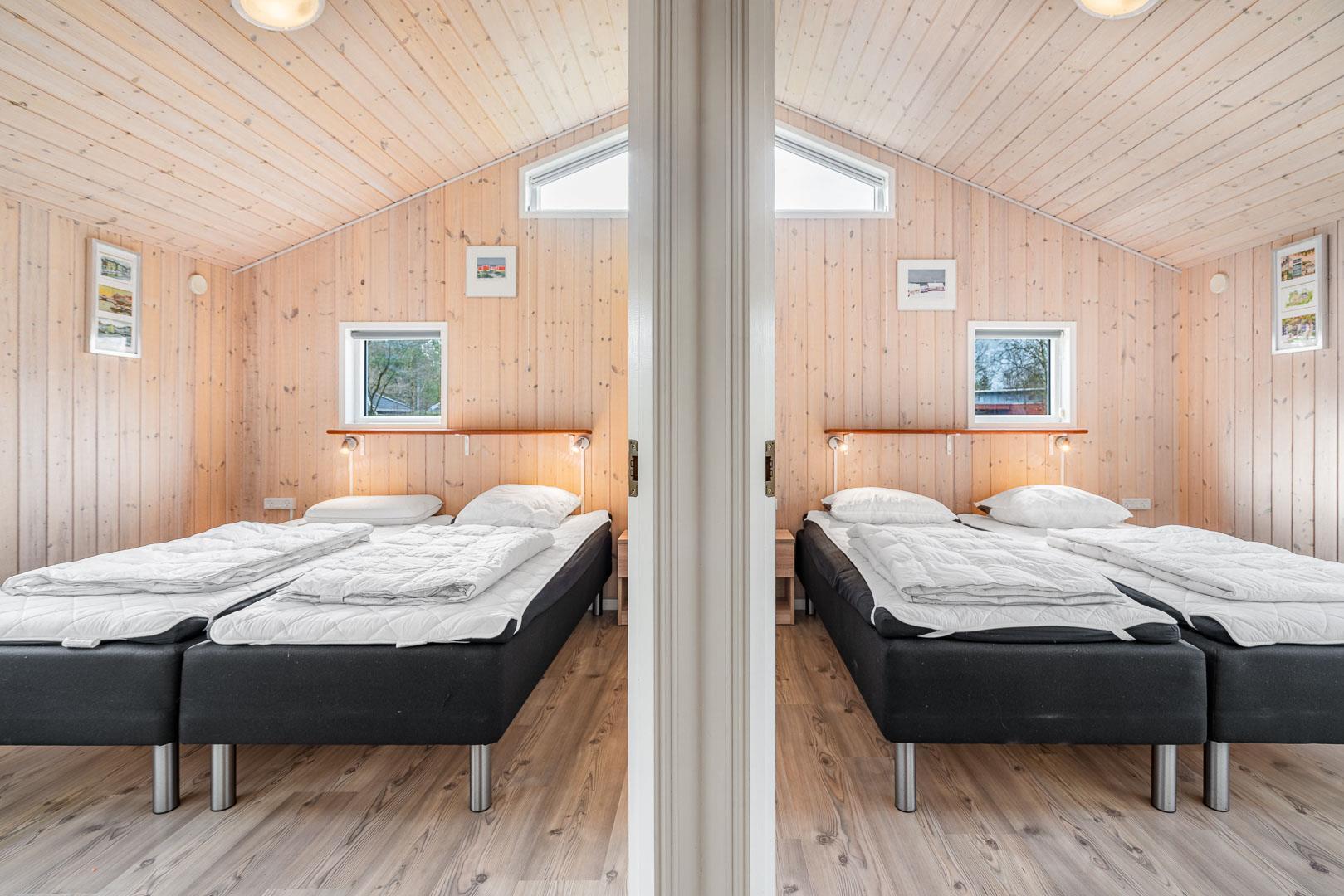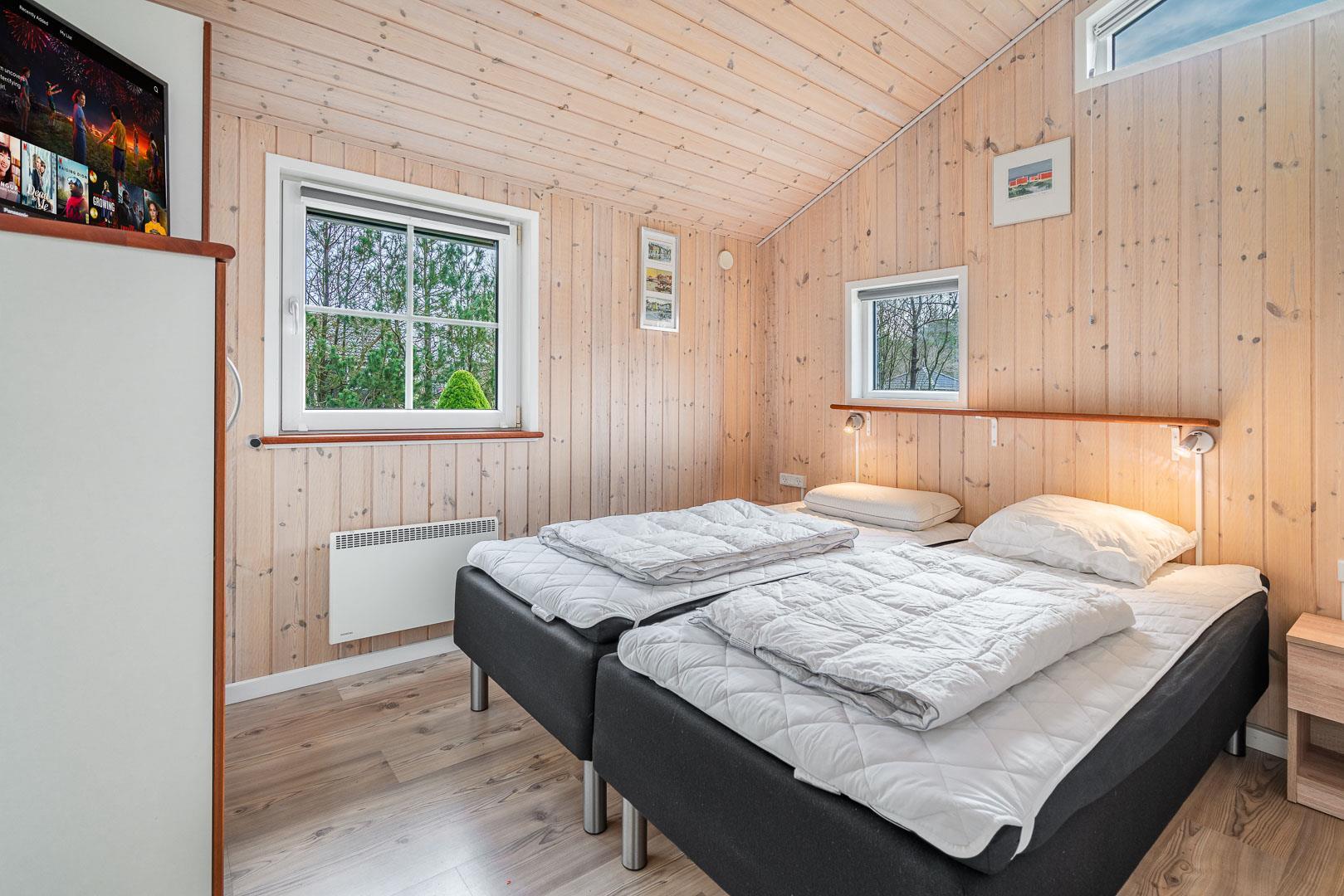 Sommerhuset råder over tre rummelige soveværelser, alle med dobbeltsenge, hvilket sikrer en god nattesøvn for alle. Huset har to flotte badeværelser – det ene indrettet med spa og sauna, der giver dig mulighed for at forkæle dig selv og slappe af i luksuriøse omgivelser.