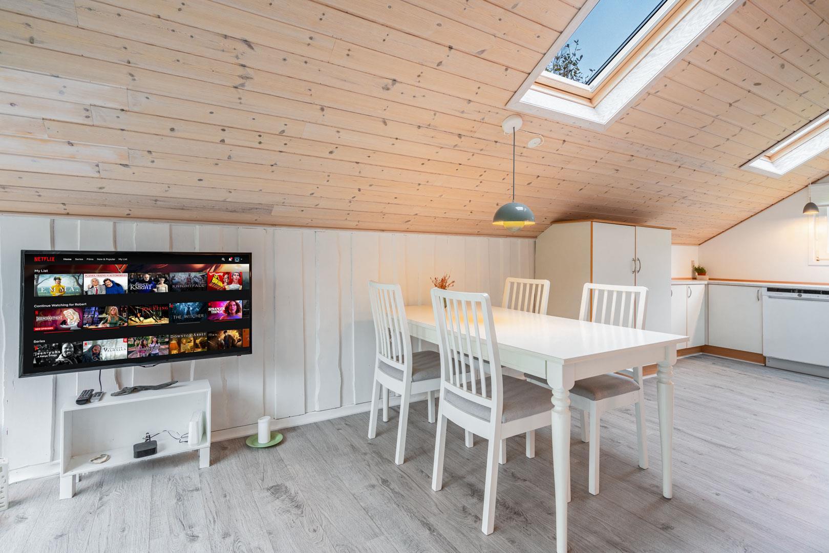 Udendørs finder I 3 terrasser, så I har mulighed for at flytte efter vejr og vind. De mindste har oplevelsen af at være kommet i skoven. Miljørigtig varmepumpe til kolde dage. Huset fremstår up to date og har gennemgået løbende renoveringer.