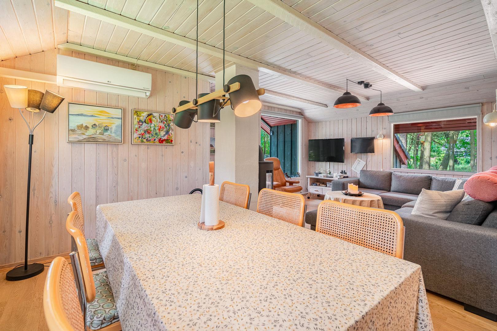 På Søndervang 125 kan du nu leje et meget personligt og veludstyret hus - på en indhegnet grund, som er åben og alligevel lukket - masser af beplantning og afgrænsning. 3 soverum hvoraf 2 er med dobbeltseng, og et med enkelt seng. Alle værelser har TV - men det er kun dobbeltsengsværelser der har chromecast. Der er smart-TV i stuen og det ene soveværelse. Køkken fra 2022 med opvaskemaskine og mikroovn. Pæn stue med komfortable møbler, brændeovn og varmepumpe, samt smart-TV. Badeværelse ligeledes fra 2022 og med vaskemaskine og gulvvarme. I skur findes ekstra fryser og køleskab. Er du til udeliv og dyreliv, så kan du nyde bålplads og shelter med madrasser. Huset har gode terrasseforhold. Houstrup er et skønt naturområde - for både børn og voksne.