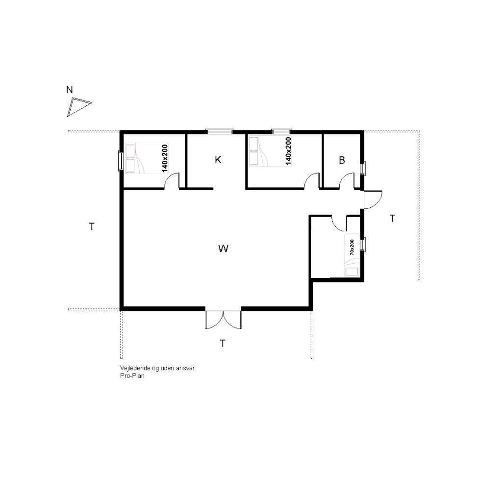 Sengestørrelse: 2 dobbeltsenge 140 x 200 cm + 1 enkeltseng 70 x 200 cm