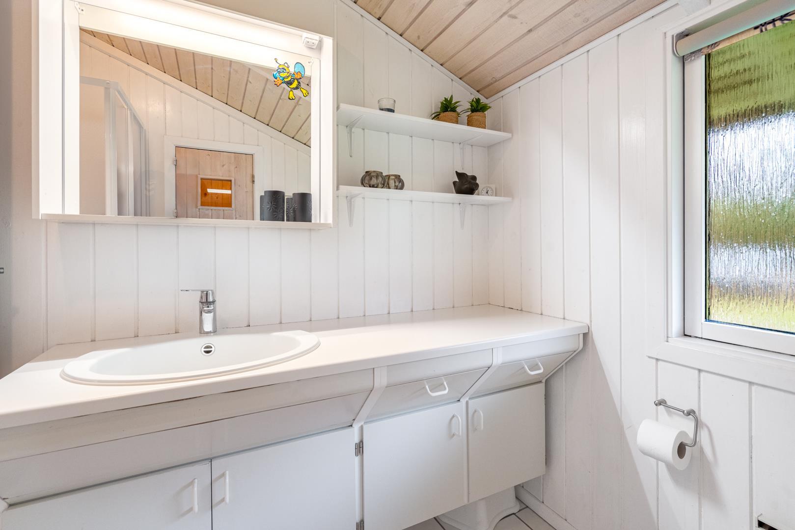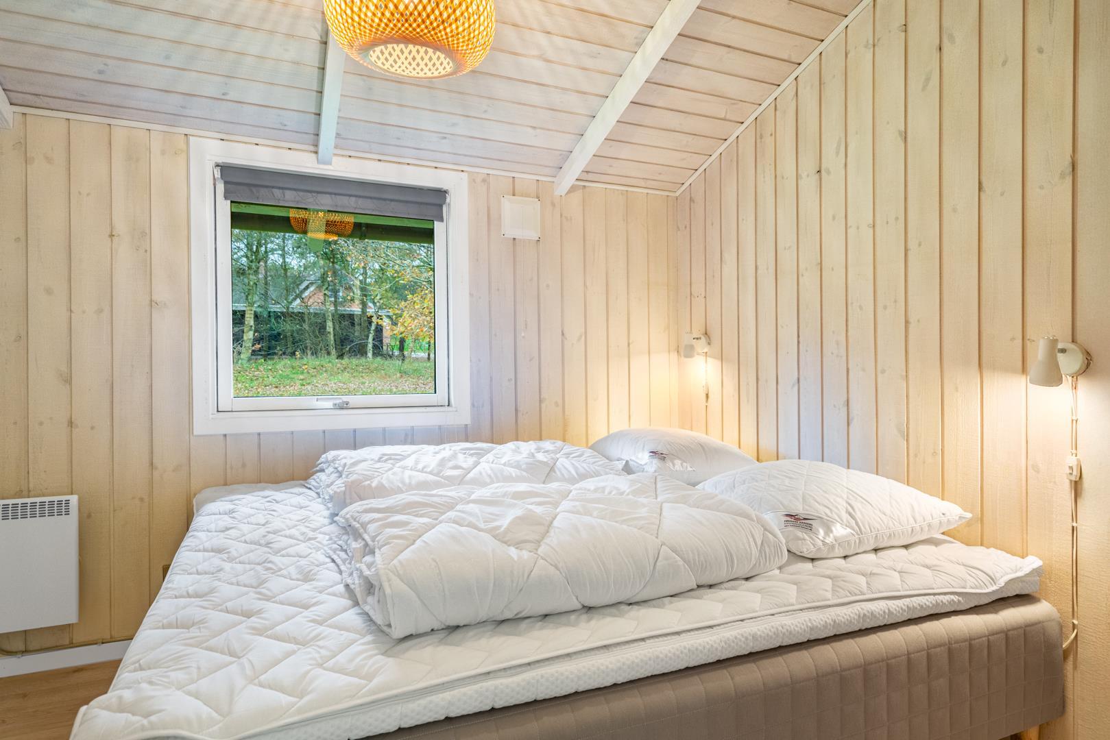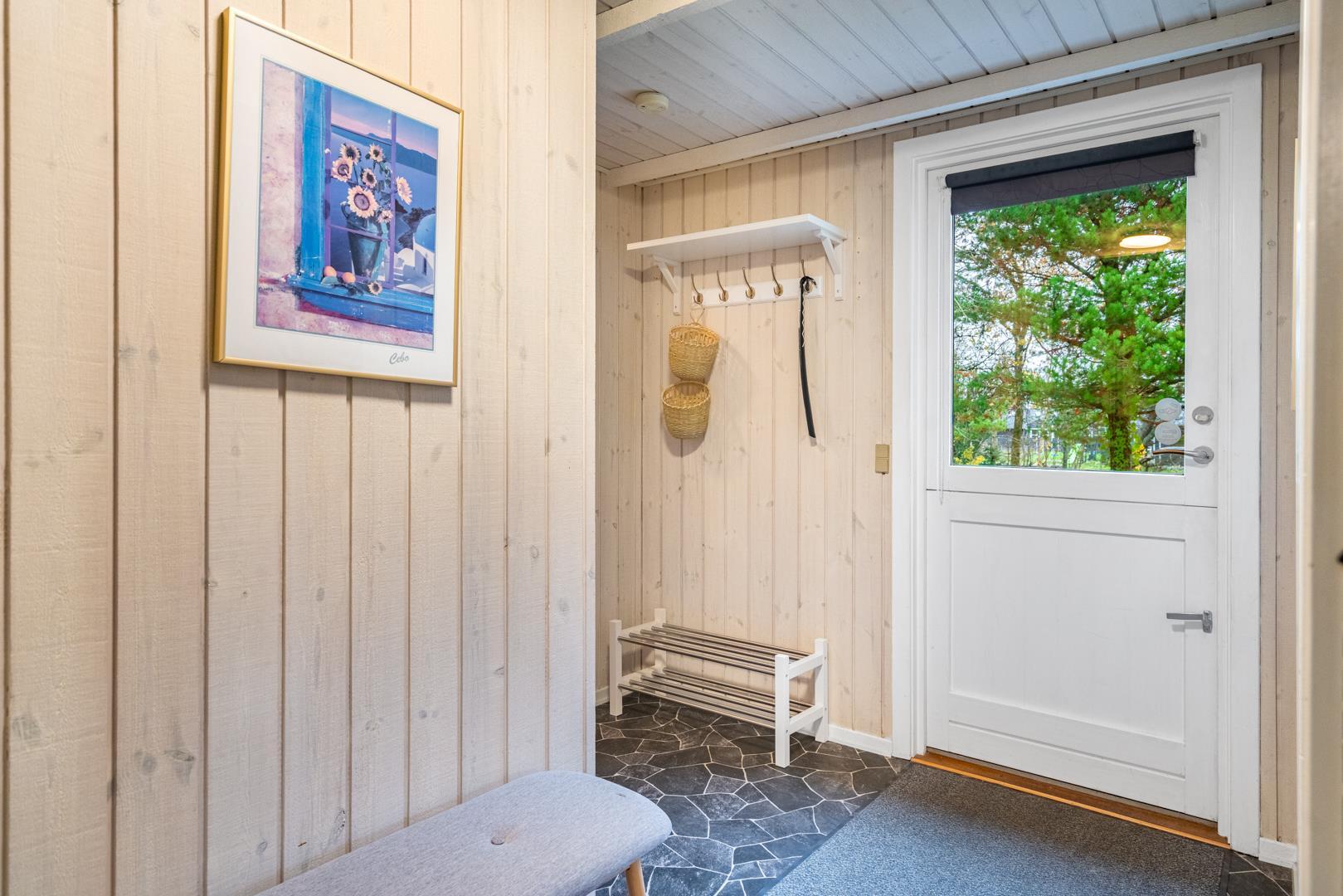 Dette hyggelige sommerhus ligger fredeligt på en dejligt naturgrund med græsplæne – oplagt til familier med børn. Huset byder på en god planløsning med fire soveværelser: to med dobbeltseng, ét med enkeltseng og ét med køjeseng. Alle rum fremstår lyse, venlige og funktionelle.