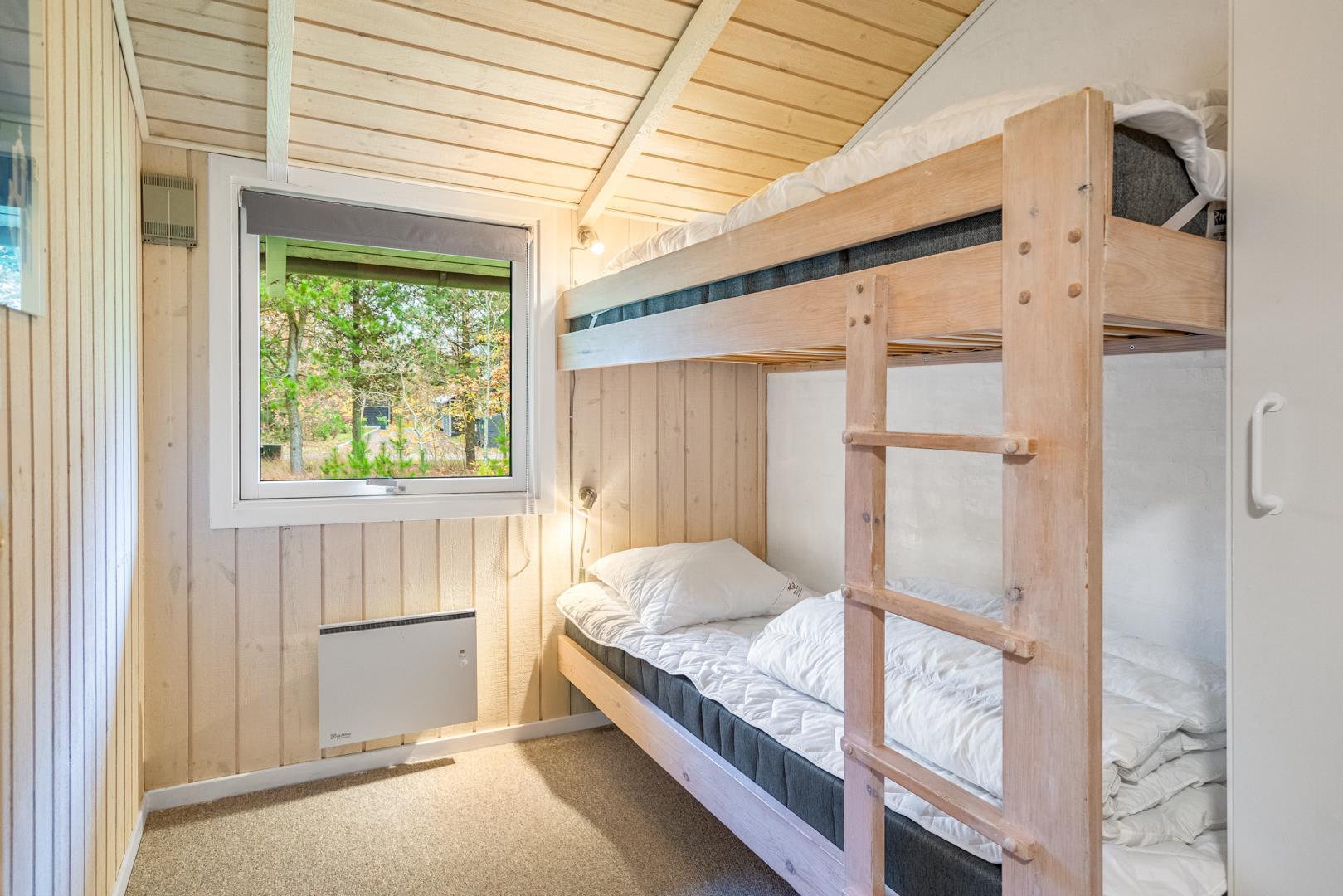 Sengestørrelse: 2 dobbeltsenge 160 x 200 cm + 1 enkeltseng 90 x 200 cm + 1 køjeseng 80 x 190 cm