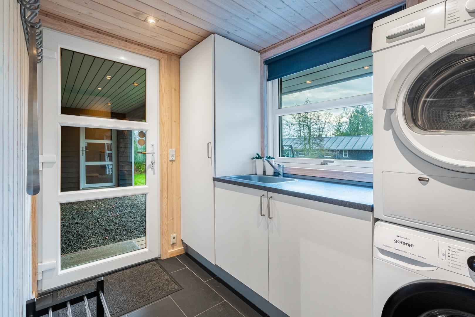 Det er tilladt at medbringe 2 hunde - rygning frabedes. Miljørigtigt hus med varmepumpe, der såvel giver godt indeklima, som sparer på udgifter til strømregningen. Bryggers hvor vaskemaskine og tørretumbler tilbydes. Naturligvis er der WI-FI - huset byder på alle de faciliteter, der er med til at gøre ferien fuldendt. Huset udlejes ikke til ungdomsgrupper, men egner sig til ferie for flere familier. For de mindste er der gynger, sandkasse, høj stol og barneseng.