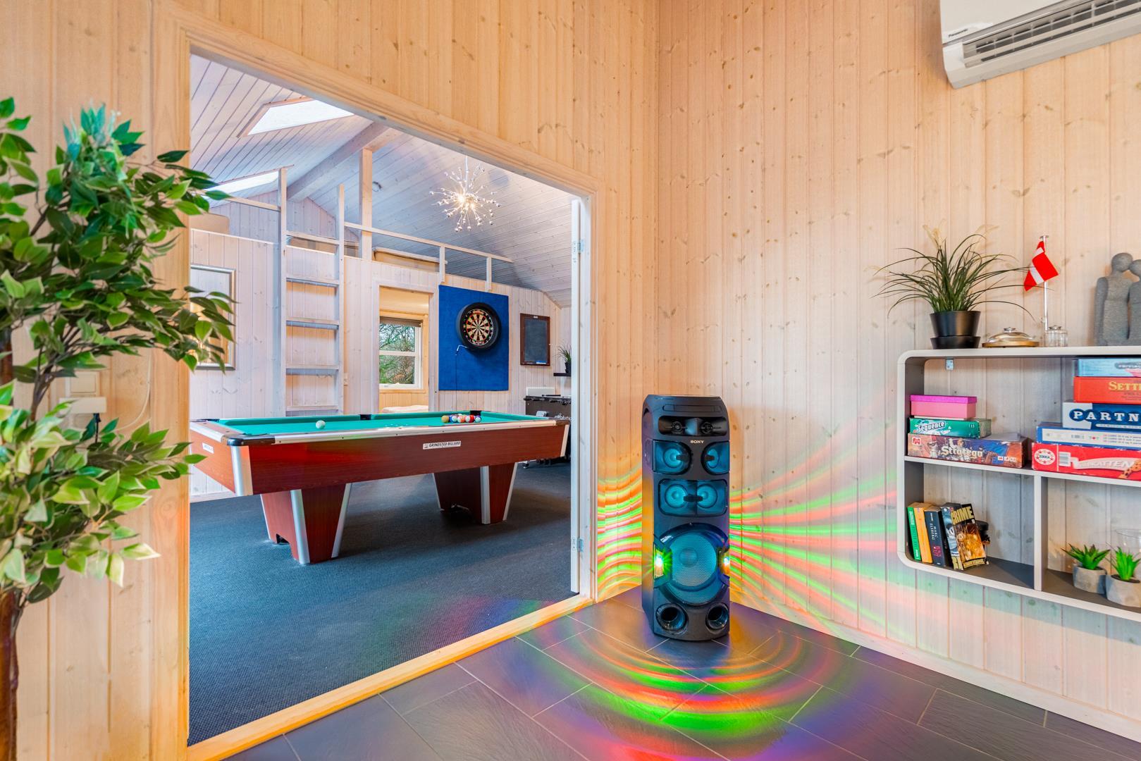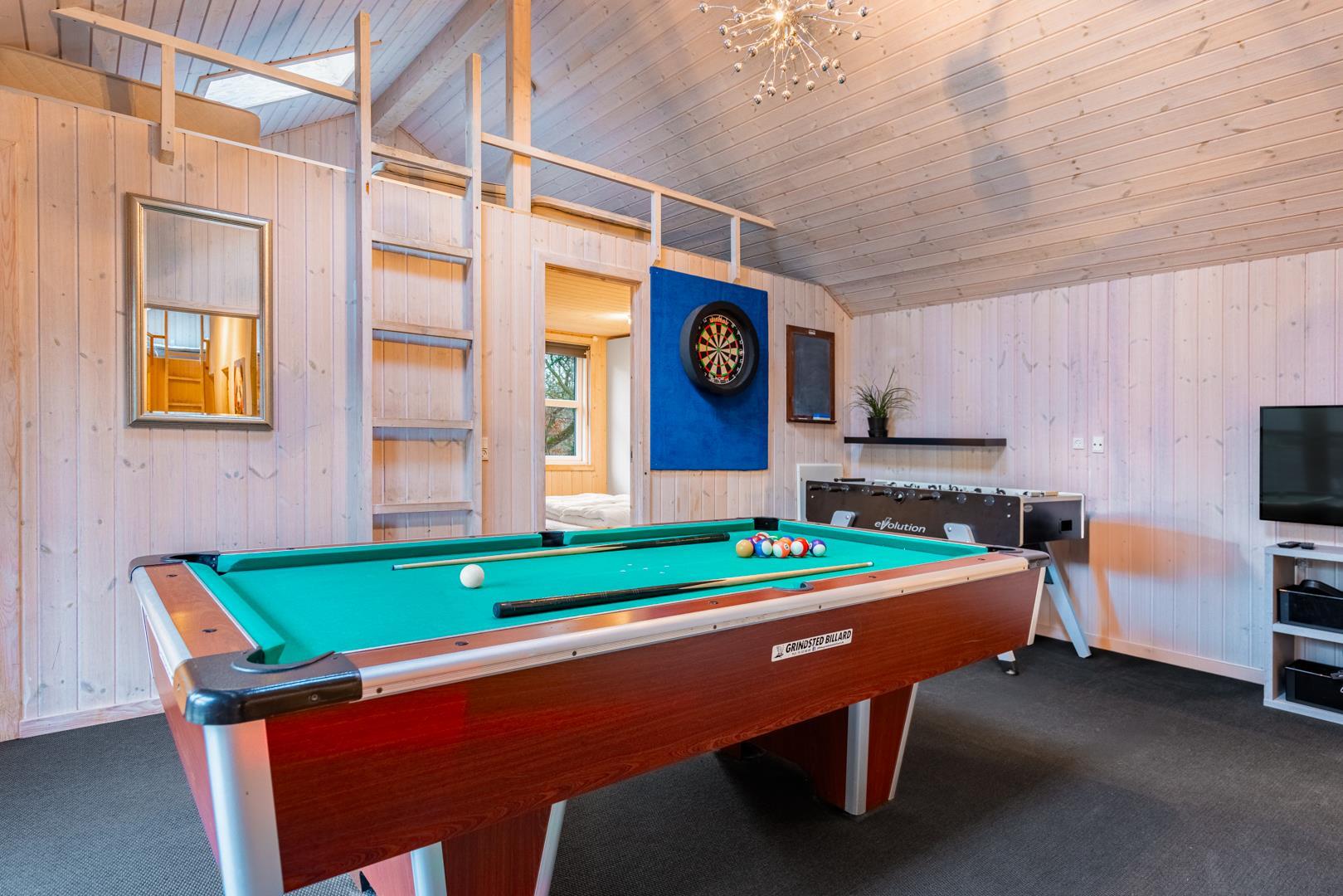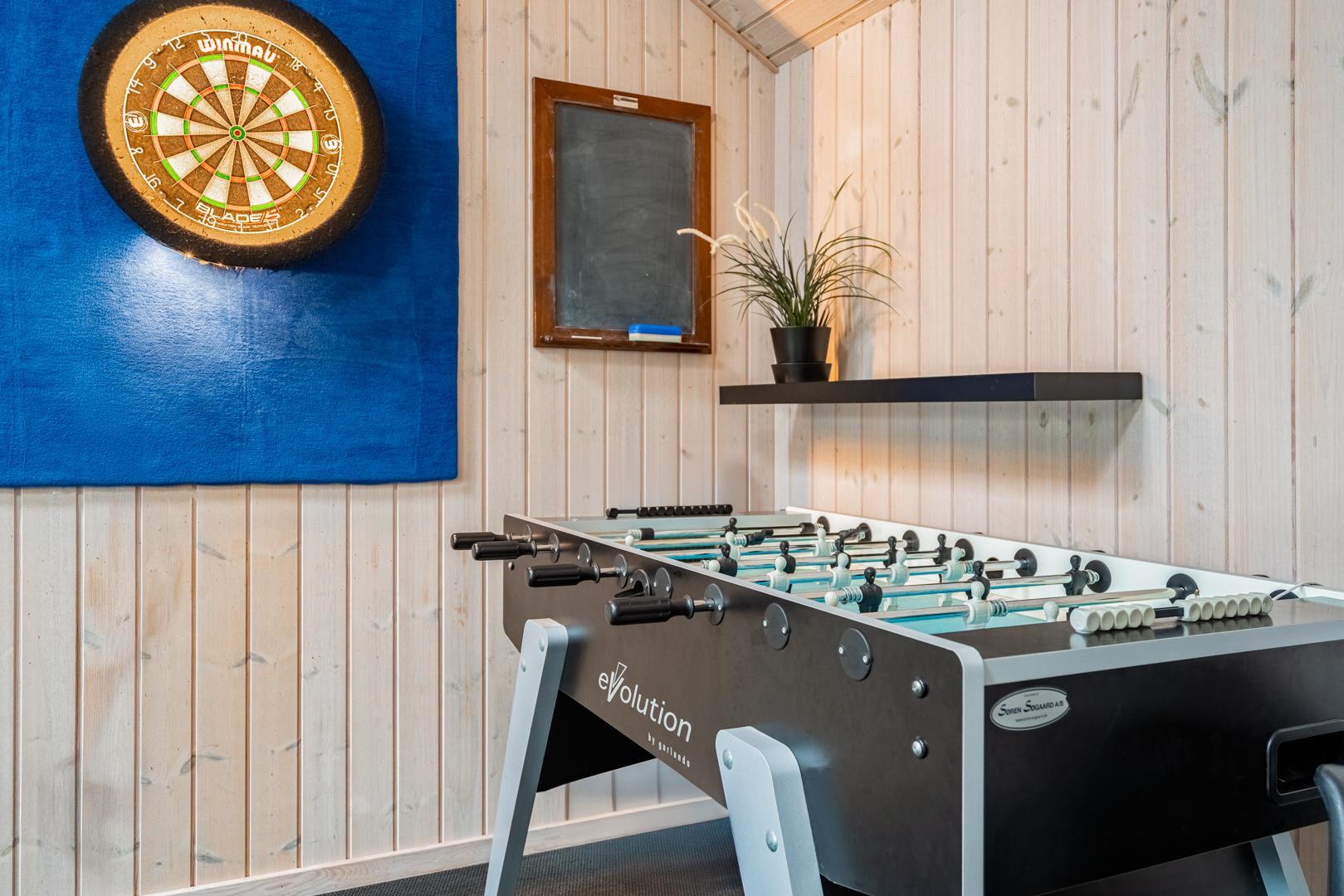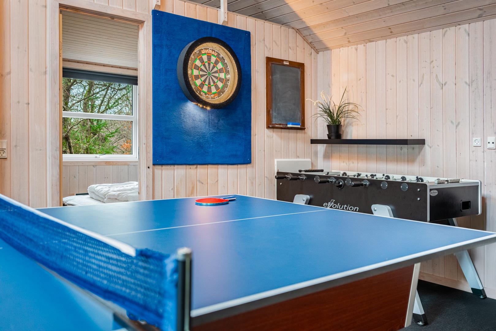 AKTIVITETSHUS med bordfodbold, bordtennis, billard, dart og tv-med PlayStation 3 i separat rum. I forbindelse med denne afdeling findes 2 værelser med dobbeltseng og derover en hems med plads til 3 personer på madrasser. Desuden findes 2 værelser med henholdsvis et køjerum og et værelse med dobbeltseng.