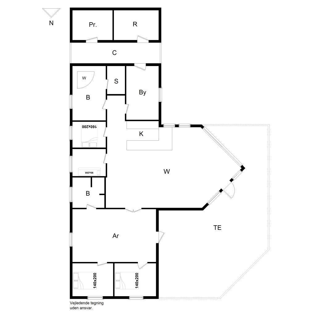 Sengestørrelser: 2 dobbeltsenge 140 x 200 cm + 1 dobbeltseng 160 x 200 cm + 1 køjeseng 90 x 200 cm.