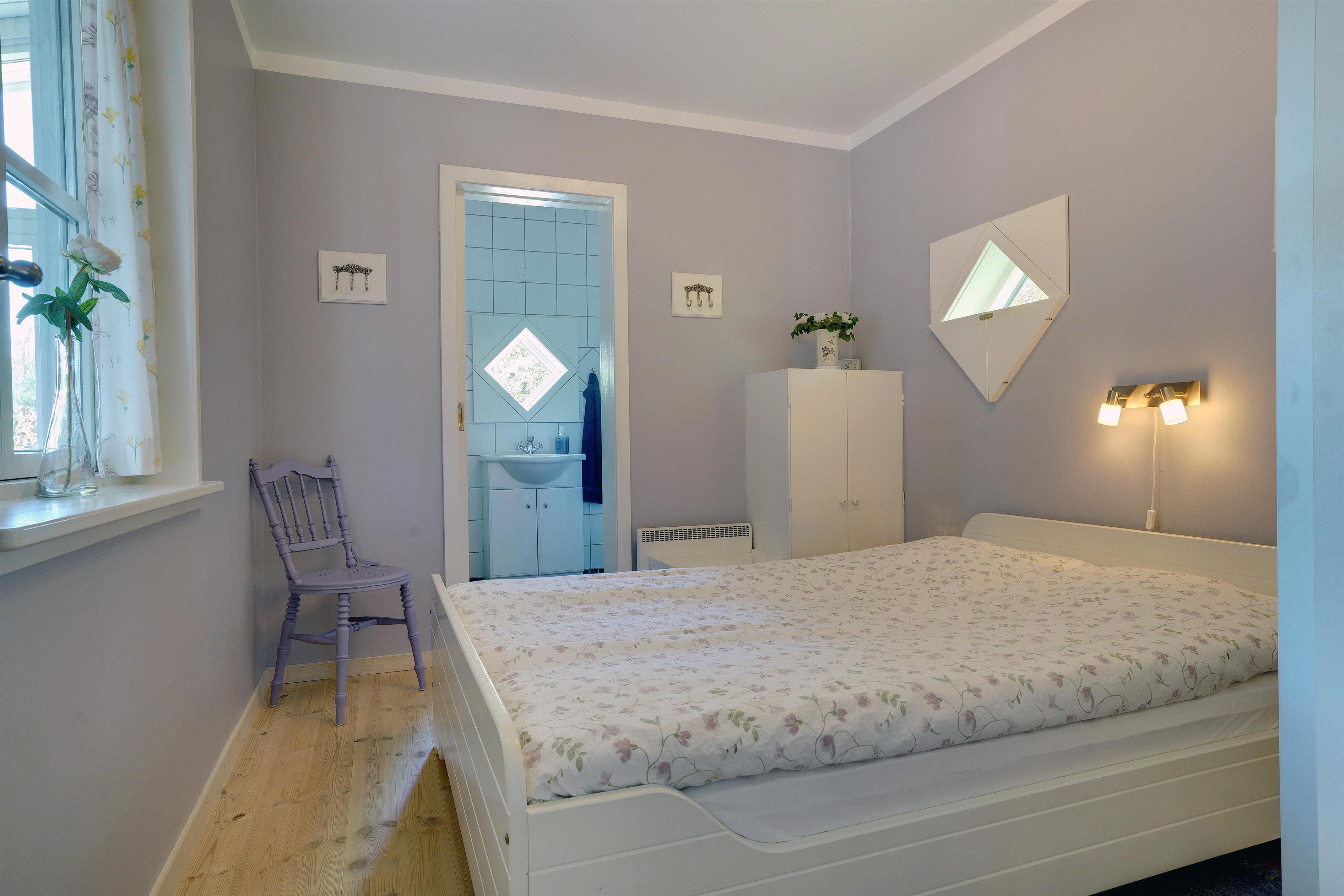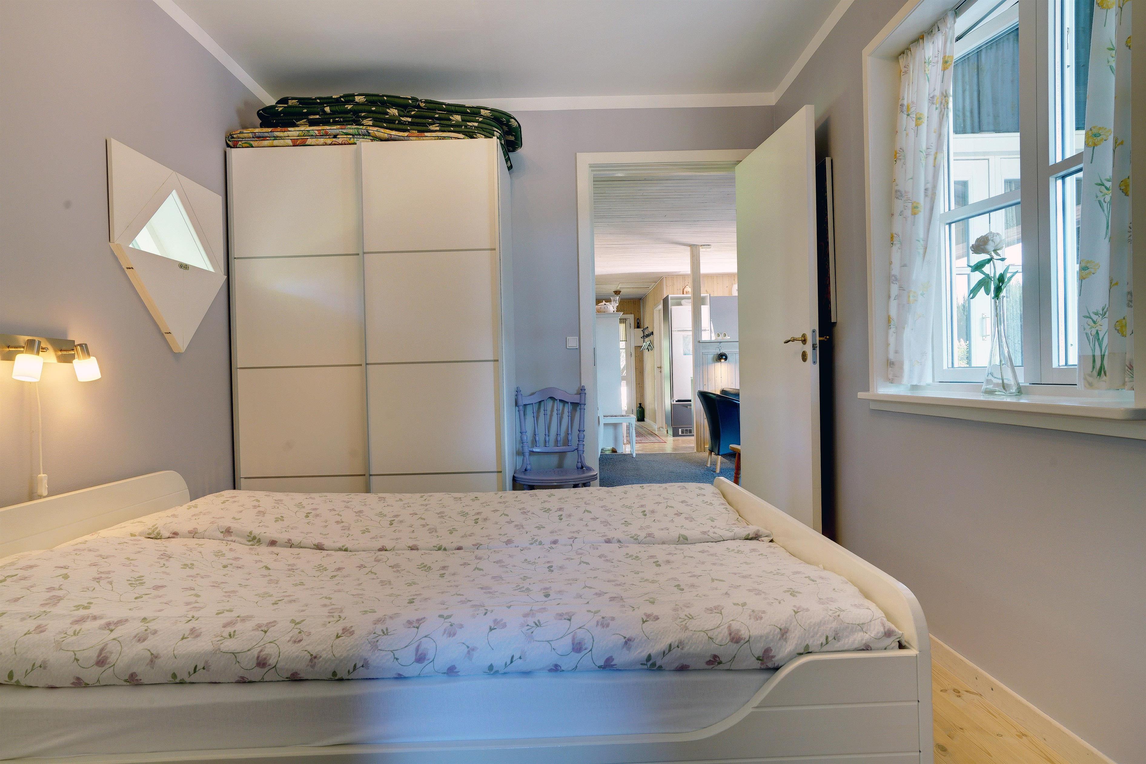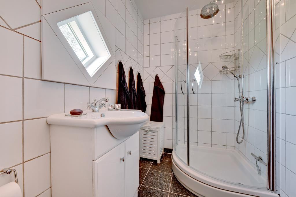 Huset er indrettet i 2 soveafdelinger med hver deres badeværelse med gulvvarme. Her findes 2 soveværelser med dobbeltseng og 1 værelse med 2 køjesenge. Der er vaskemaskine og tørretumbler.