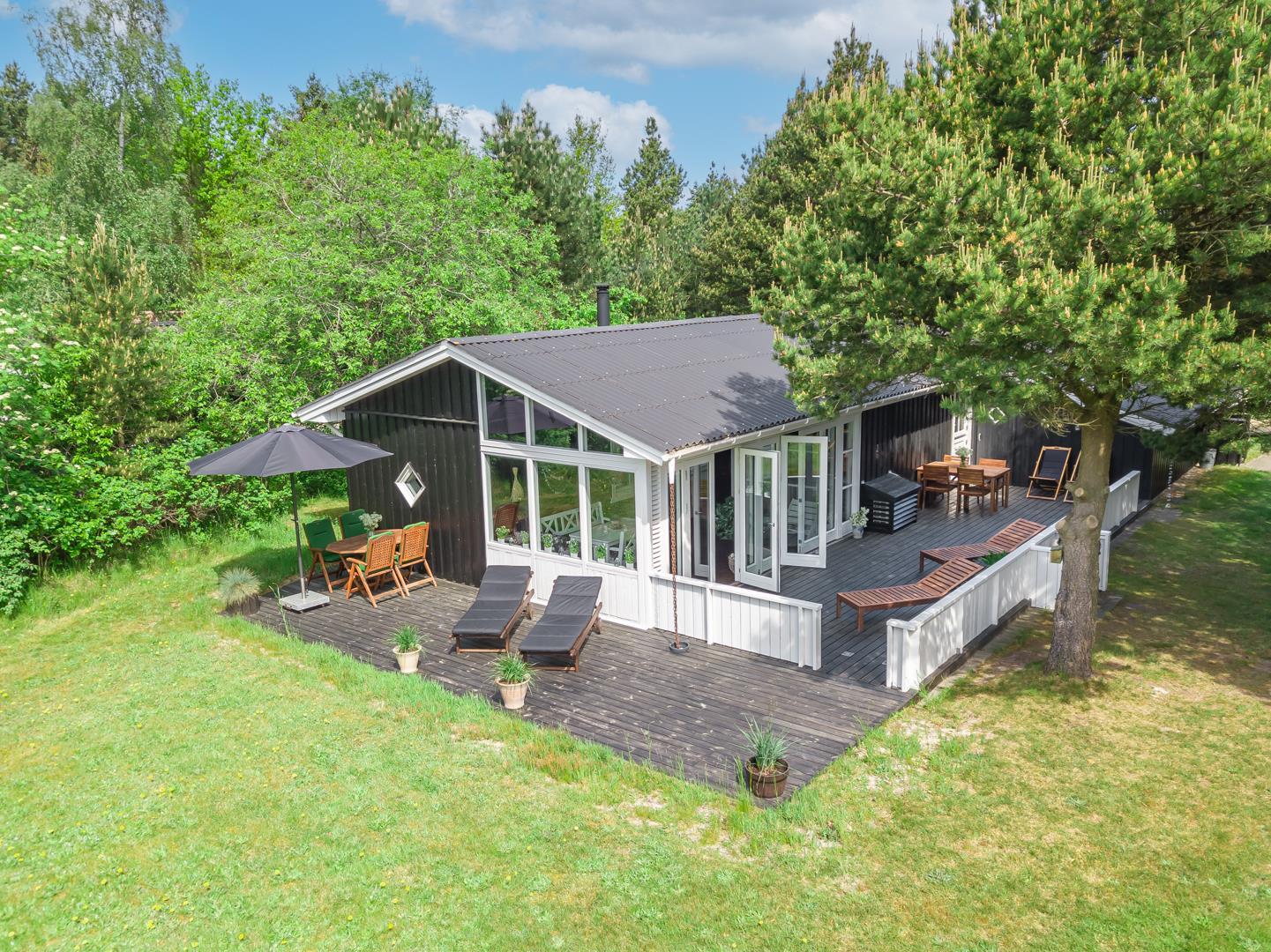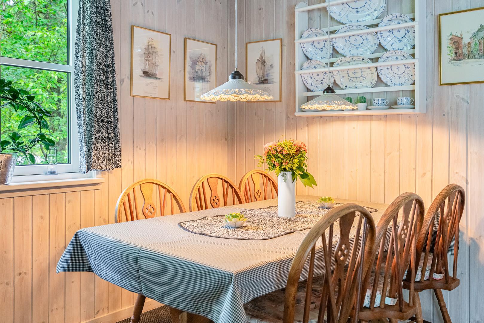 På Vestervang 5, finder I dette særdeles veludstyrede og velholdte feriehus, hvor der er lagt stor vægt på den rigtige sommerhusstemning.