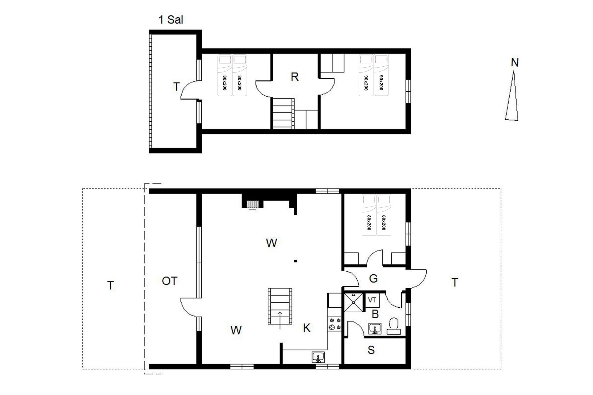 De 3 soveværelser rummer i alt 3 dobbeltsenge (1 x 90x200, 2 x 80x200), og det stilrene badeværelse har både gulvvarme og en skøn sauna – perfekt efter en tur i klitterne. Vaskemaskine og tørretumbler er der naturligvis også.