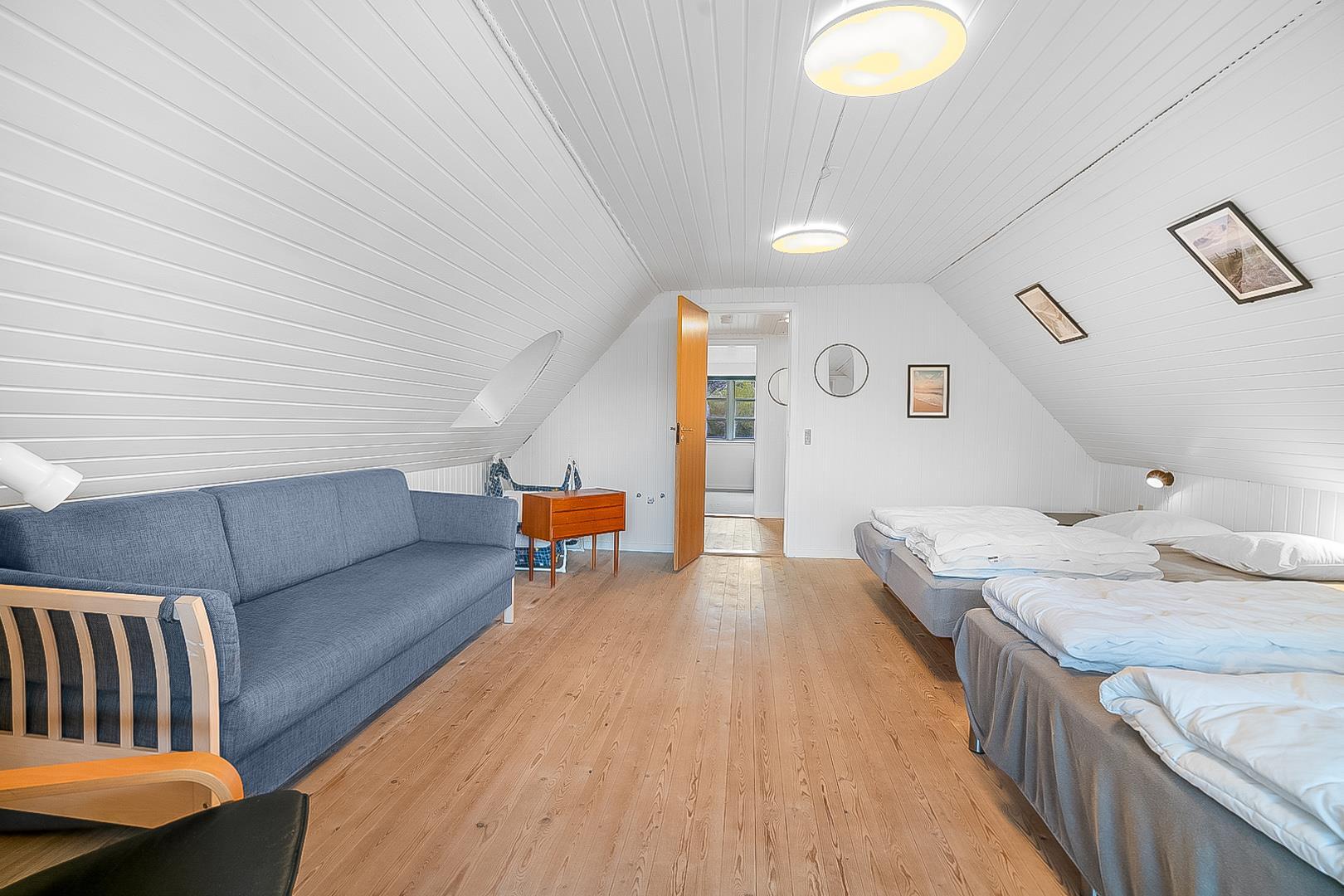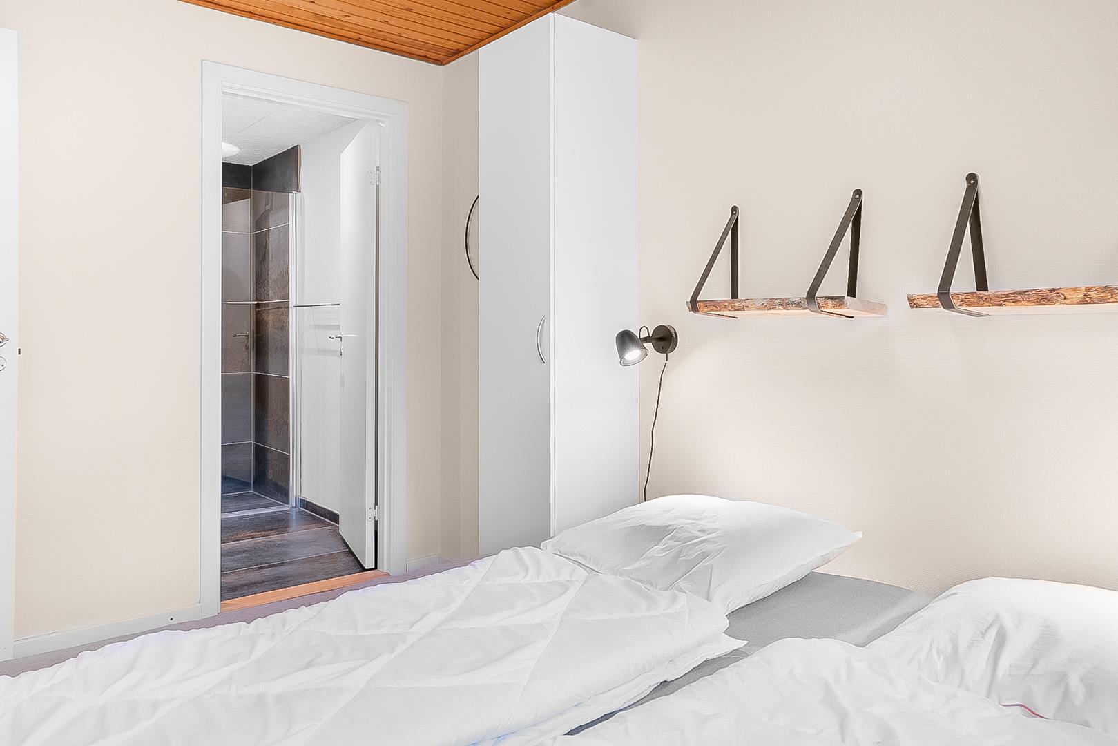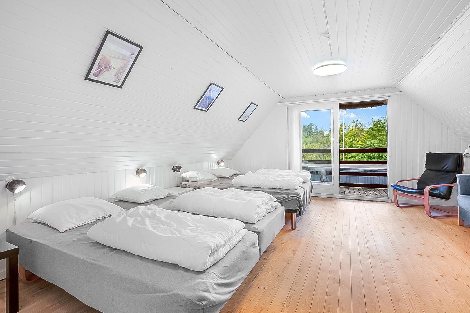 Sengestørrelser: 4 dobbeltsenge med 2 madrasser 90 x 200 cm + 1 enkeltseng 80 x 200 cm.