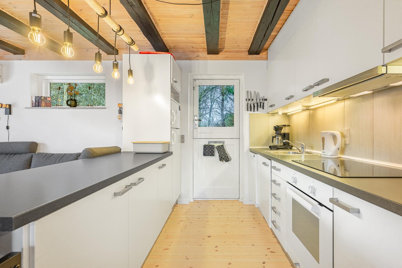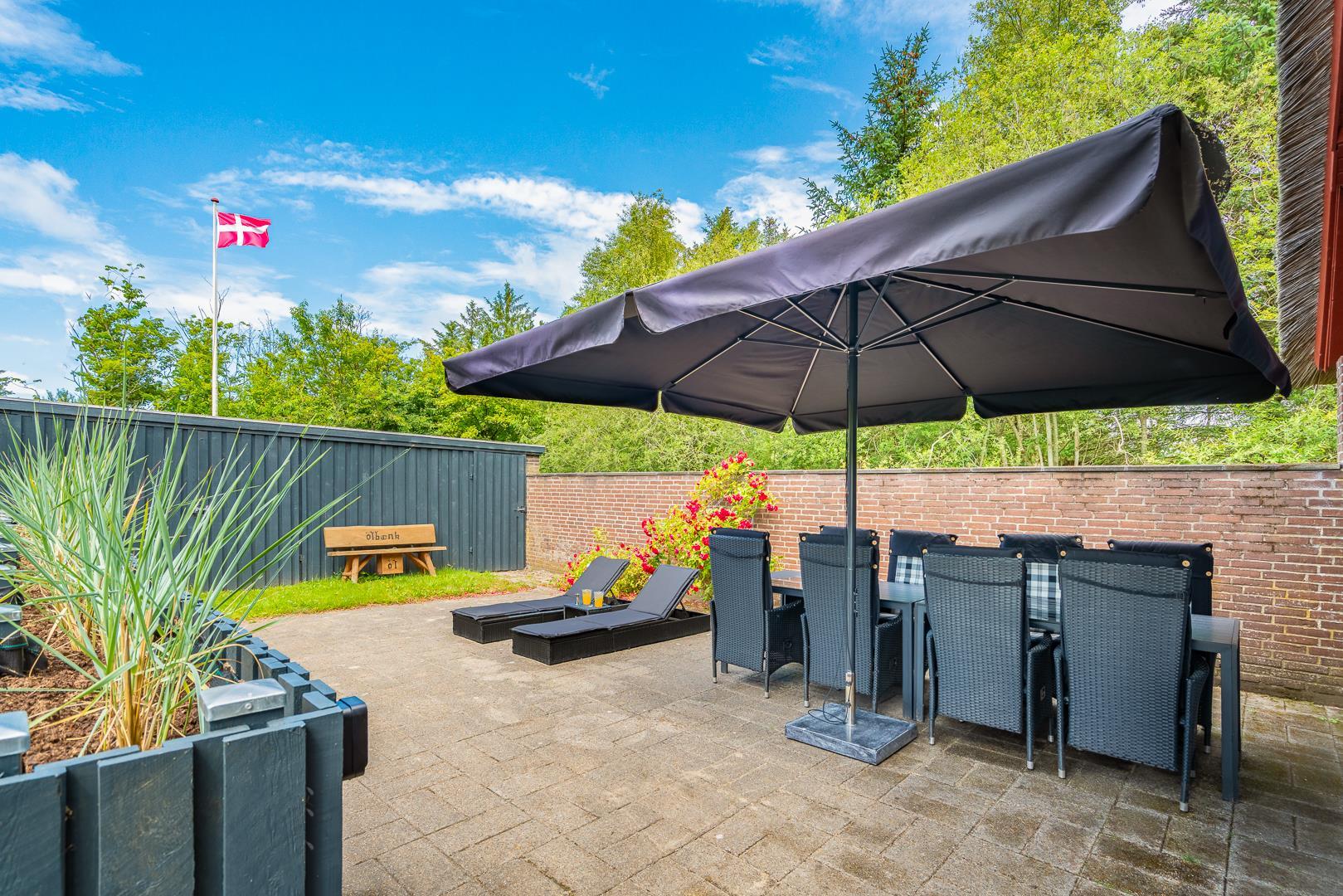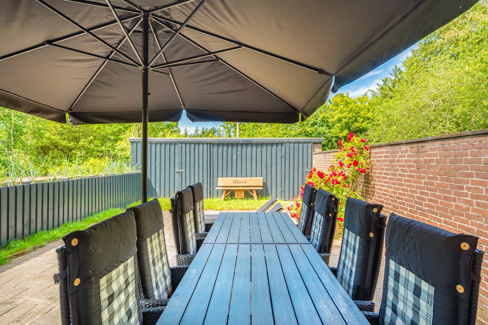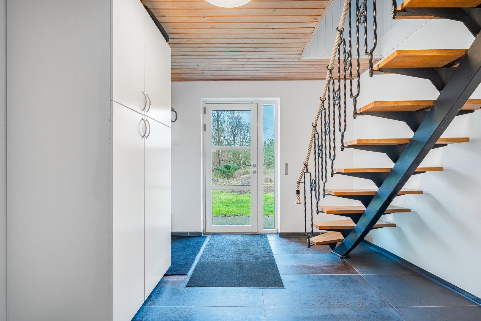 Grunden er indhegnet til stor gavn for både hunden og de mindste. Stor terrasse med en mindre overdækning. Her vil kunne nydes mange timer,hvis vejret tillader det. Skur til rådighed hvis du har behov for det. Huset ligger midt i det gamle Houstrup og tæt på skov som tiltrækker gåture og naturoplevelser.