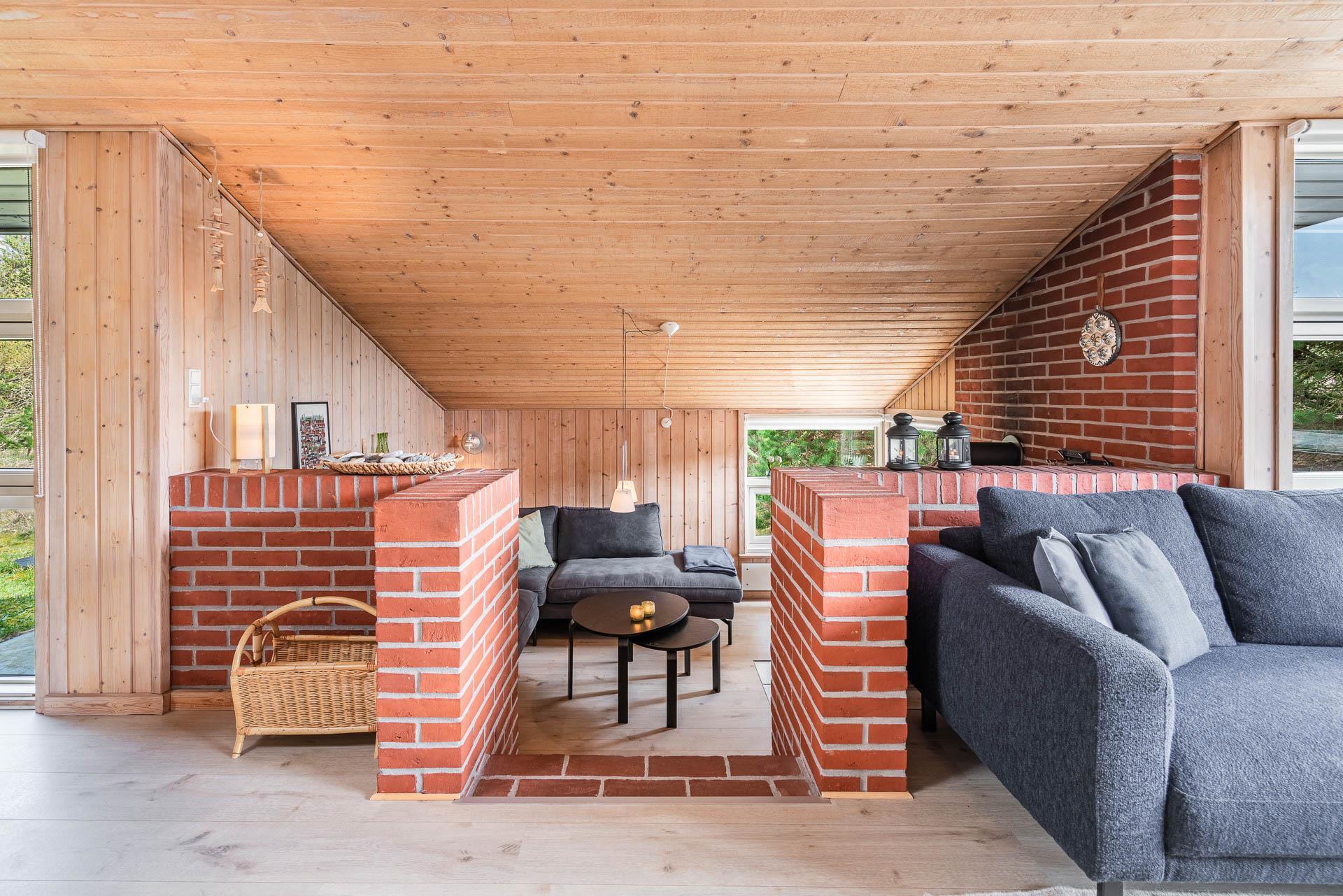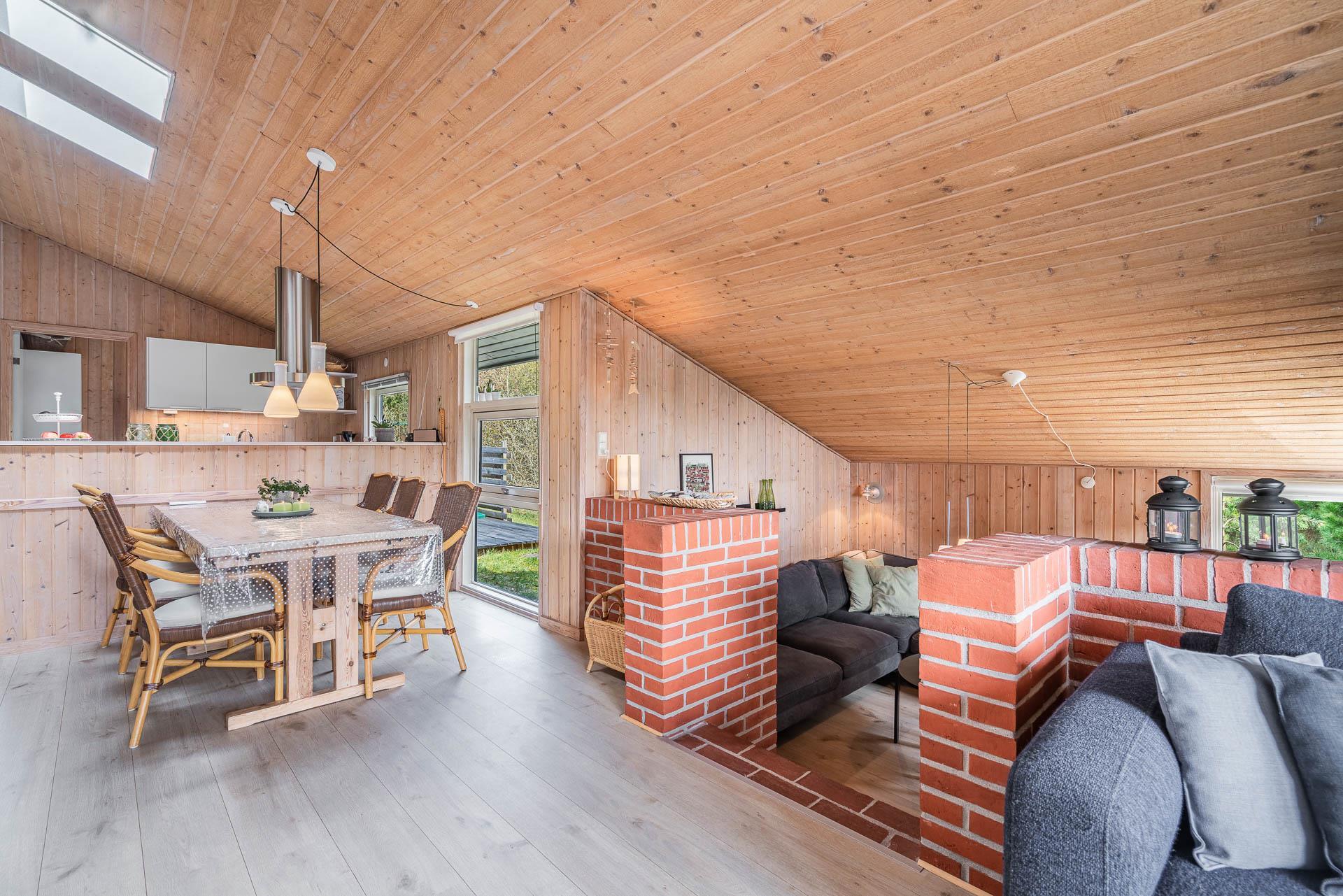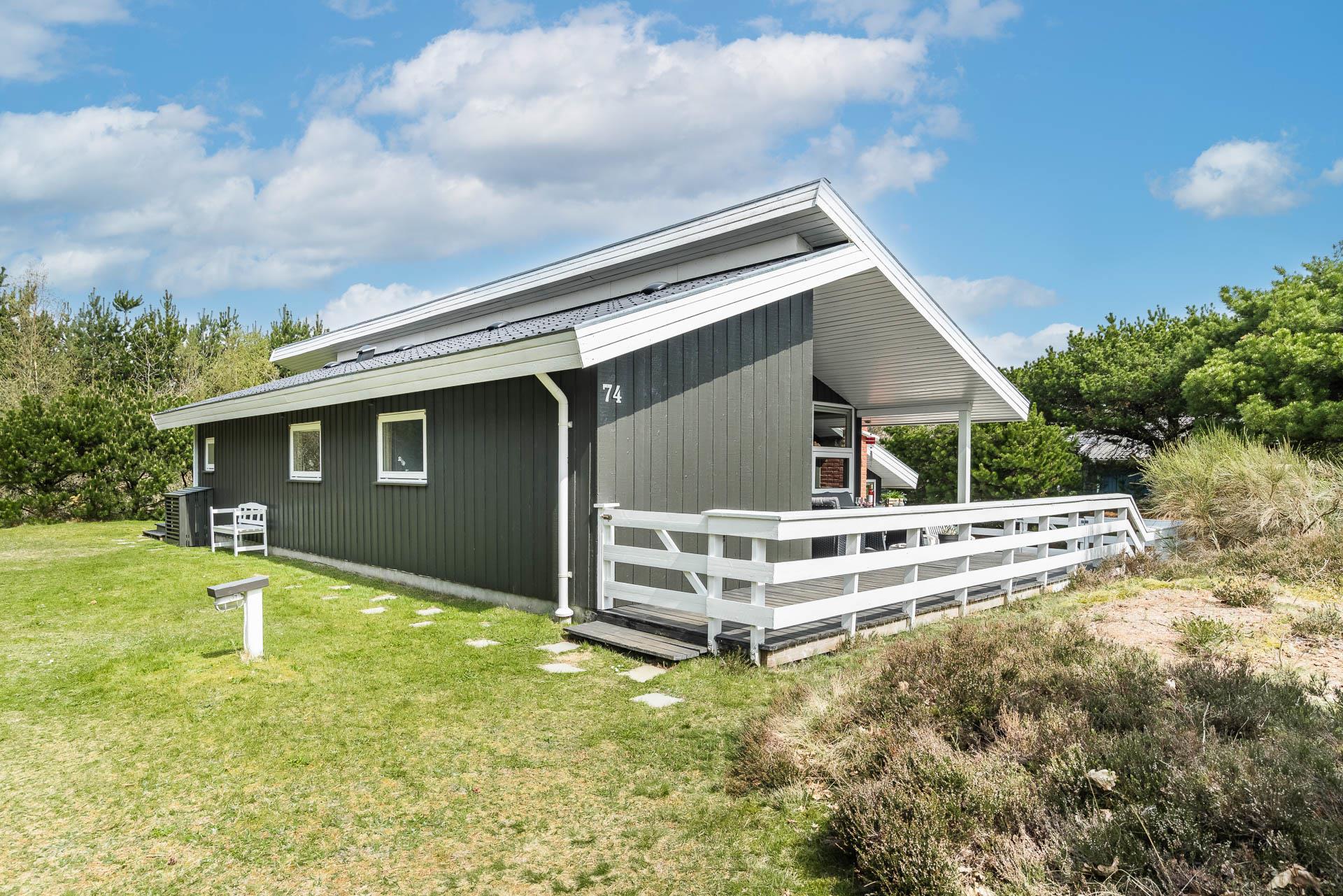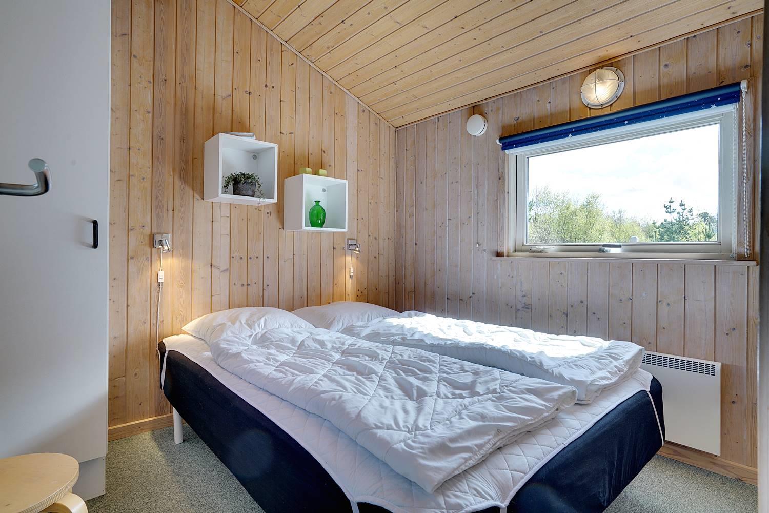 Vil du bo på ugeneret grund i et feriehus beliggende helt tilbagetrukket fra vejen, og i charmerende omgivelser med højt til himlen, så kast et blik på dette feriehus på Søndervang 74. Der er flere terrasser, en del overdækket og med altid mulighed for at finde læ og sol. Helt lukket terrasse, så der er styr på børn og hunden. Huset rummer plads til 6 personer, fordelt på 3 soverum, hvoraf 2 er med dobbeltseng (1 seng 1,60 bred). Nyere køkken med opvaskemaskine og mikroovn. Hyggelig stue og spiseplads med loft til kip. Nedsænket tv-stue, hvor alle kan nyde at slappe af. Både brændeovn og varmepumpe til de kølige dage. Nyere badeværelse med gulvvarme og vaskemaskine. Fryser findes i skuret.