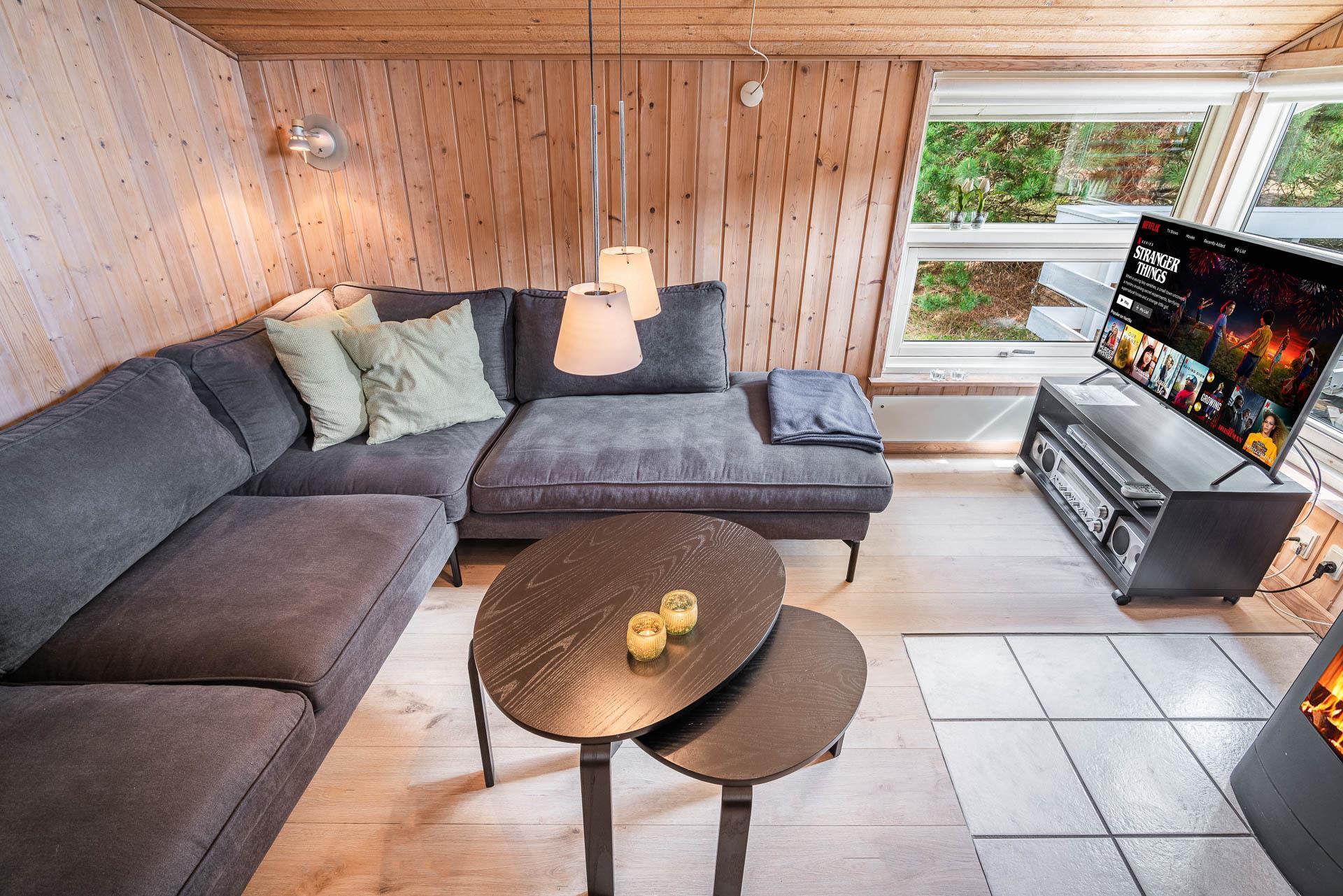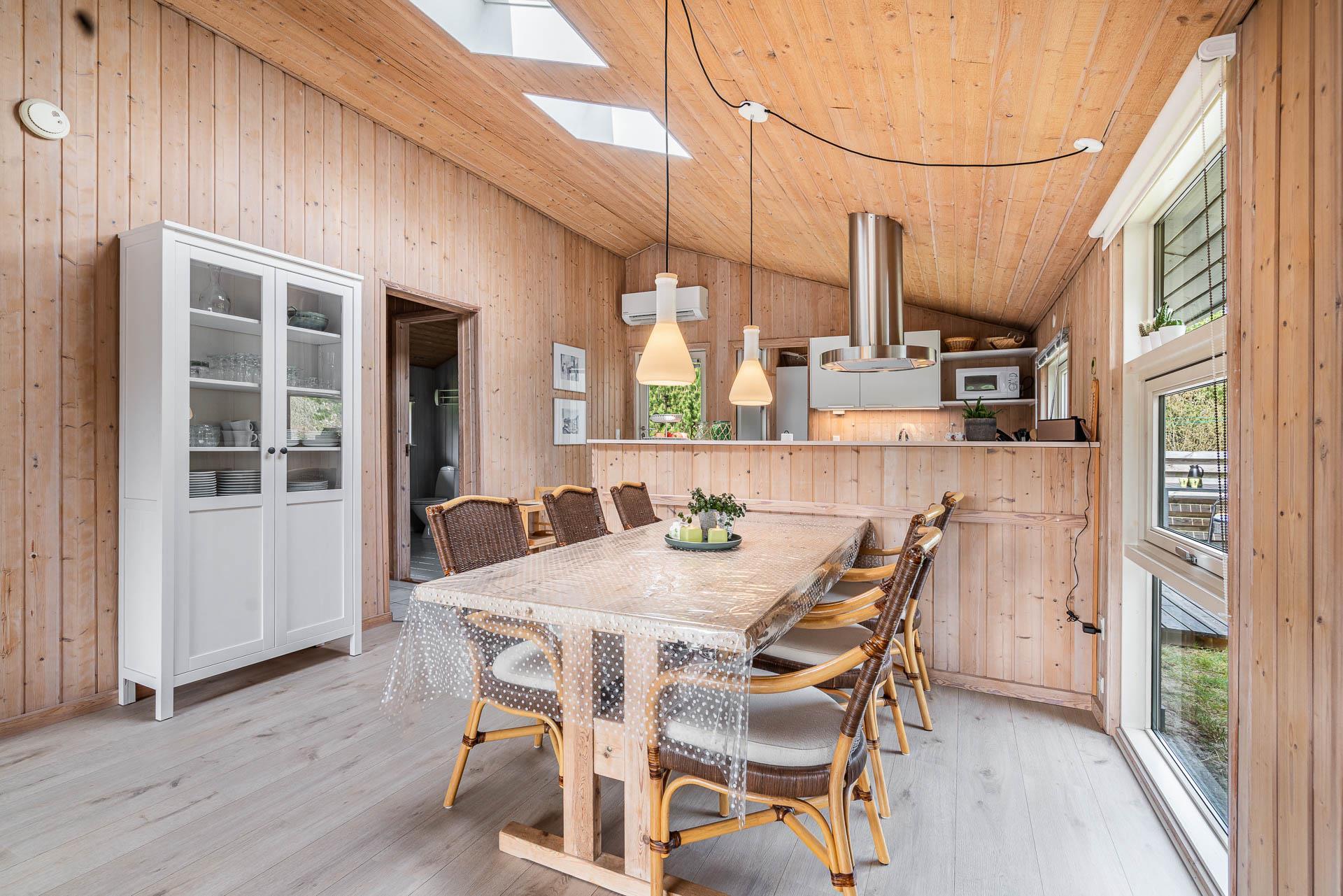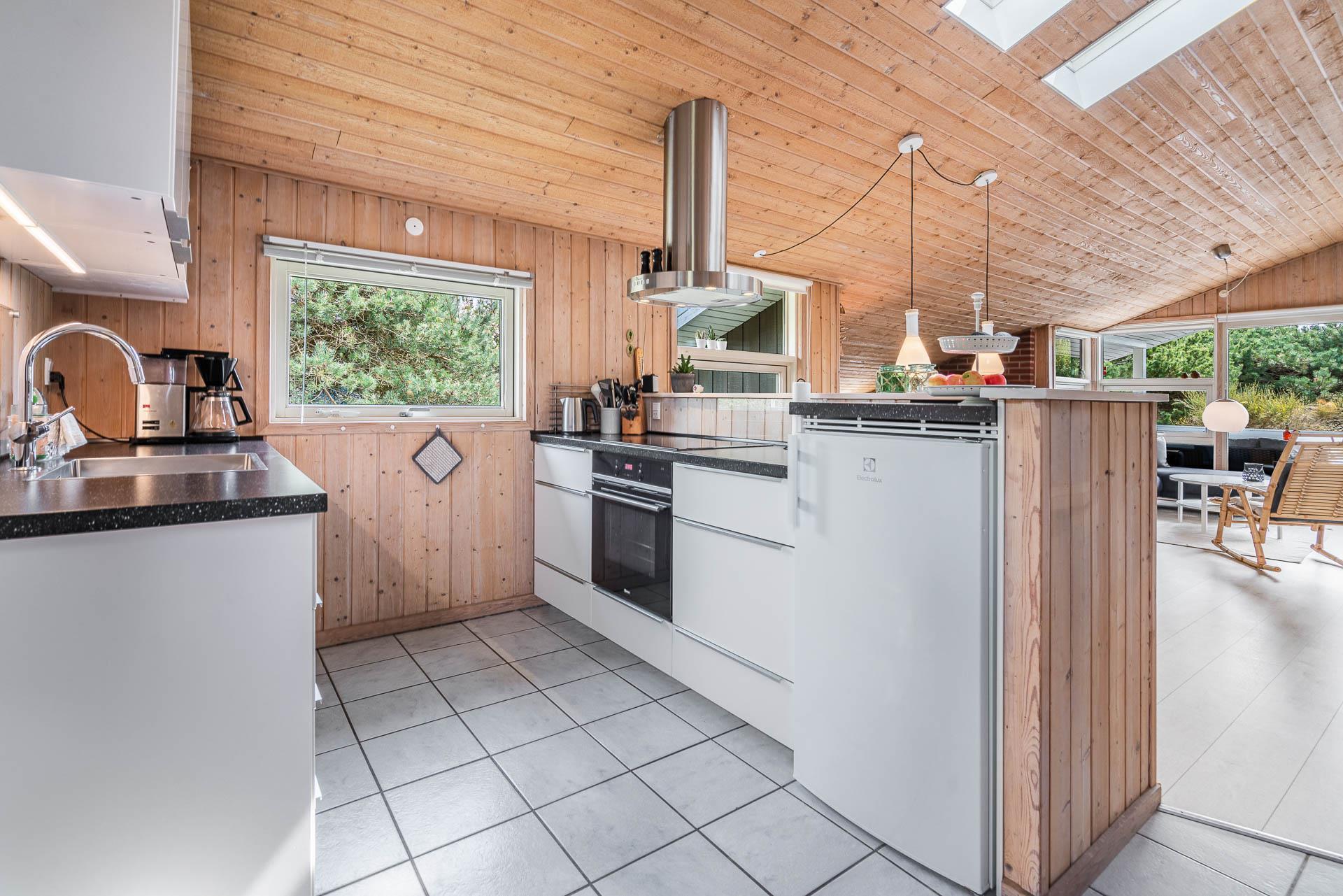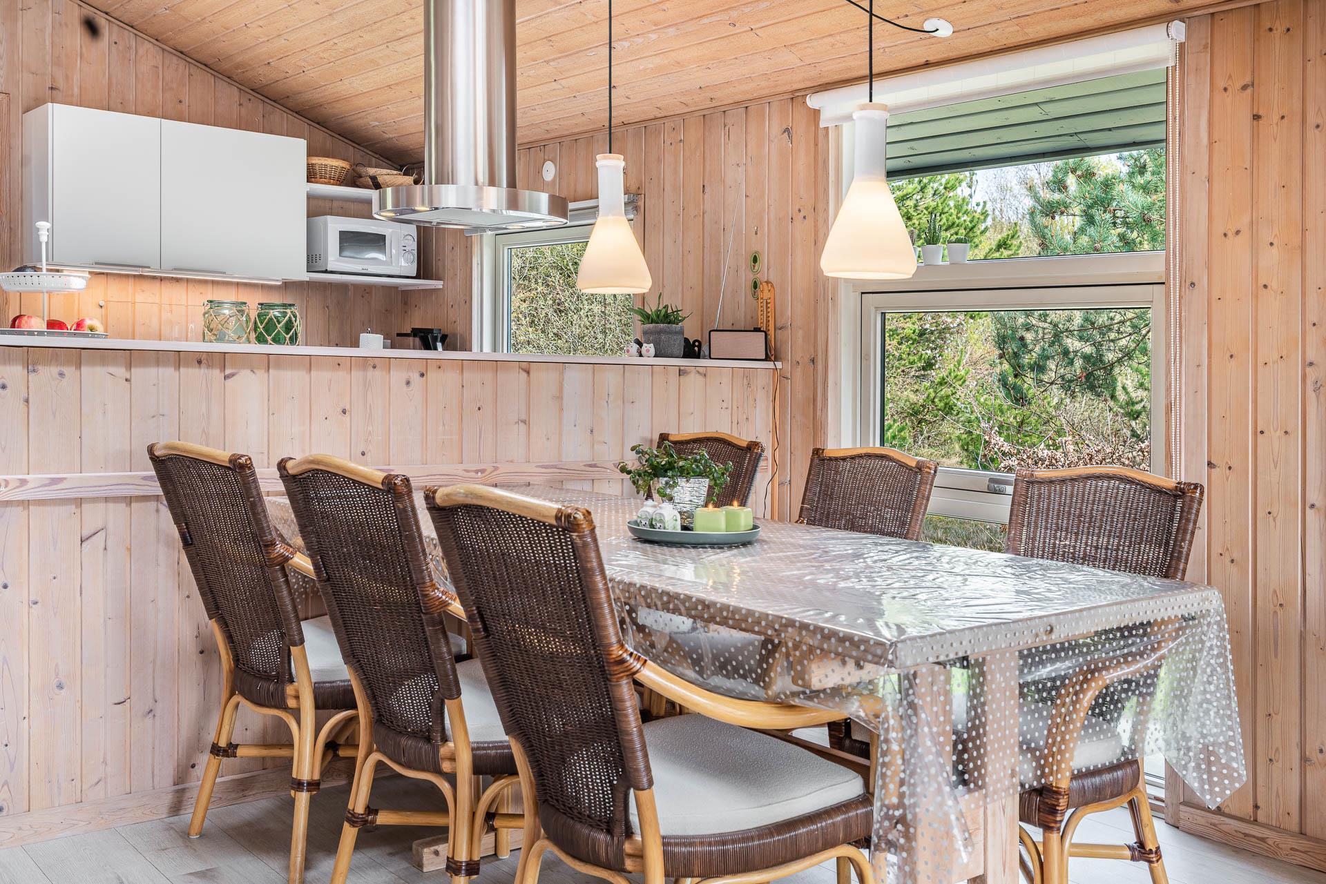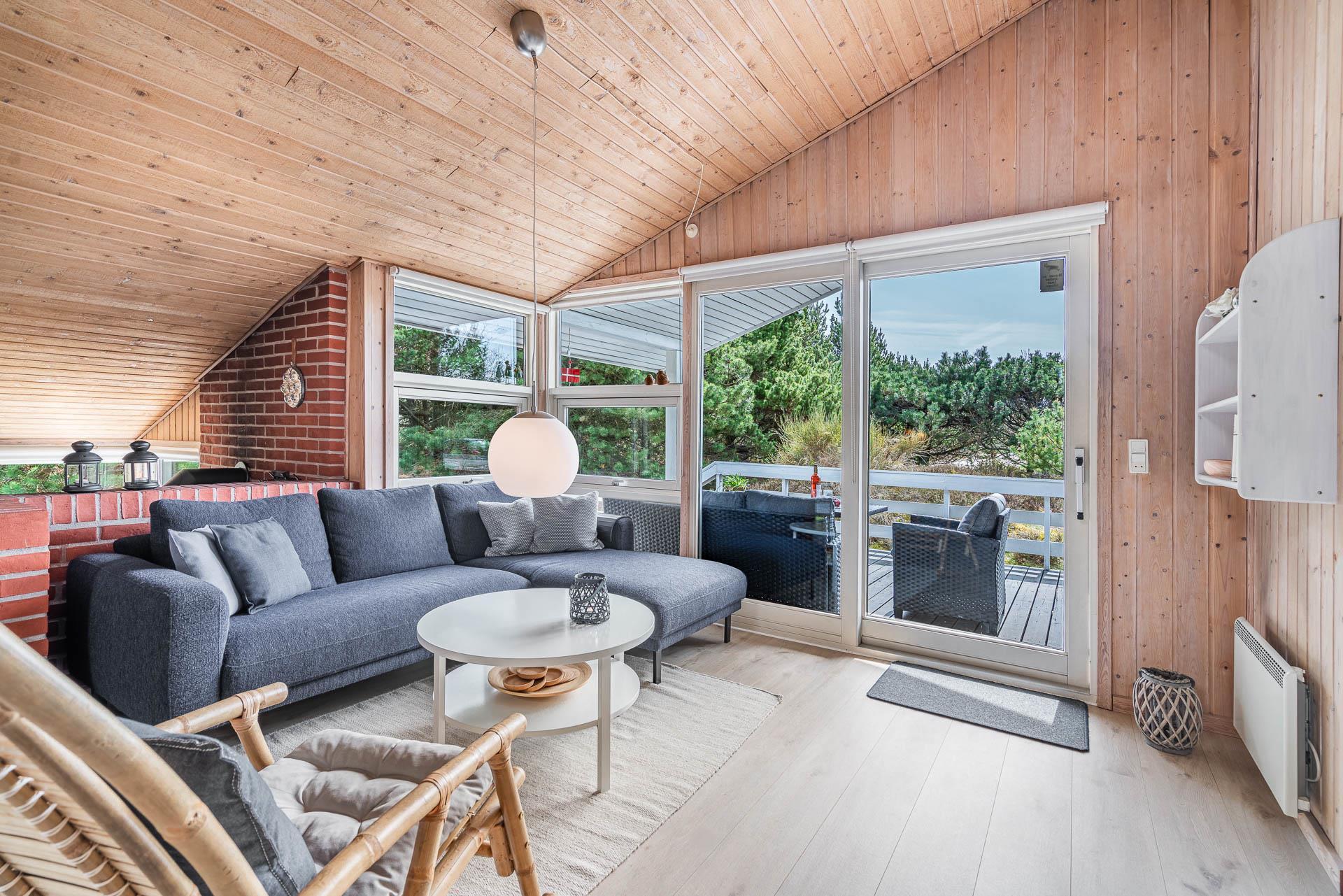 Vil du bo på ugeneret grund i et feriehus beliggende helt tilbagetrukket fra vejen, og i charmerende omgivelser med højt til himlen, så kast et blik på dette feriehus på Søndervang 74. Der er flere terrasser, en del overdækket og med altid mulighed for at finde læ og sol. Helt lukket terrasse, så der er styr på børn og hunden. Huset rummer plads til 6 personer, fordelt på 3 soverum, hvoraf 2 er med dobbeltseng (1 seng 1,60 bred). Nyere køkken med opvaskemaskine og mikroovn. Hyggelig stue og spiseplads med loft til kip. Nedsænket tv-stue, hvor alle kan nyde at slappe af. Både brændeovn og varmepumpe til de kølige dage. Nyere badeværelse med gulvvarme og vaskemaskine. Fryser findes i skuret.