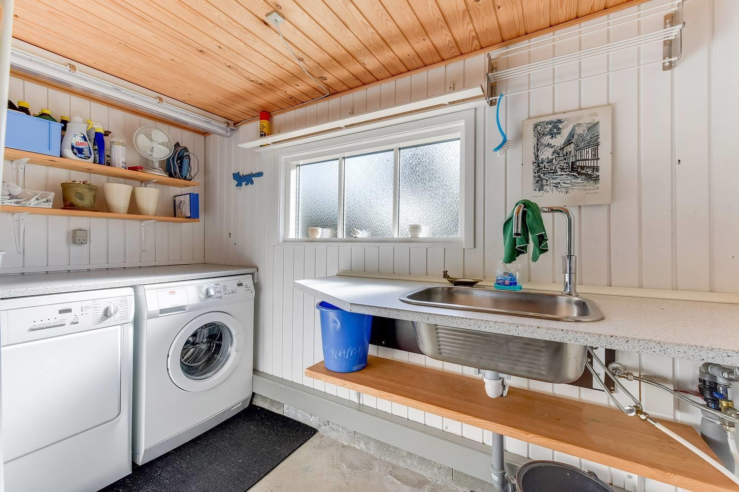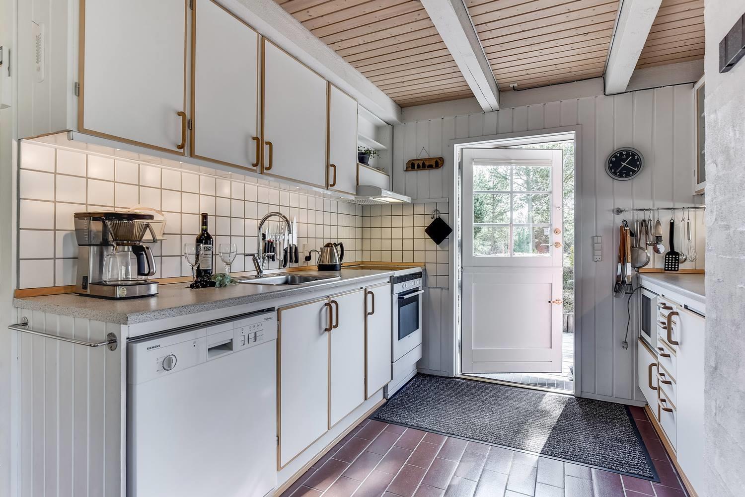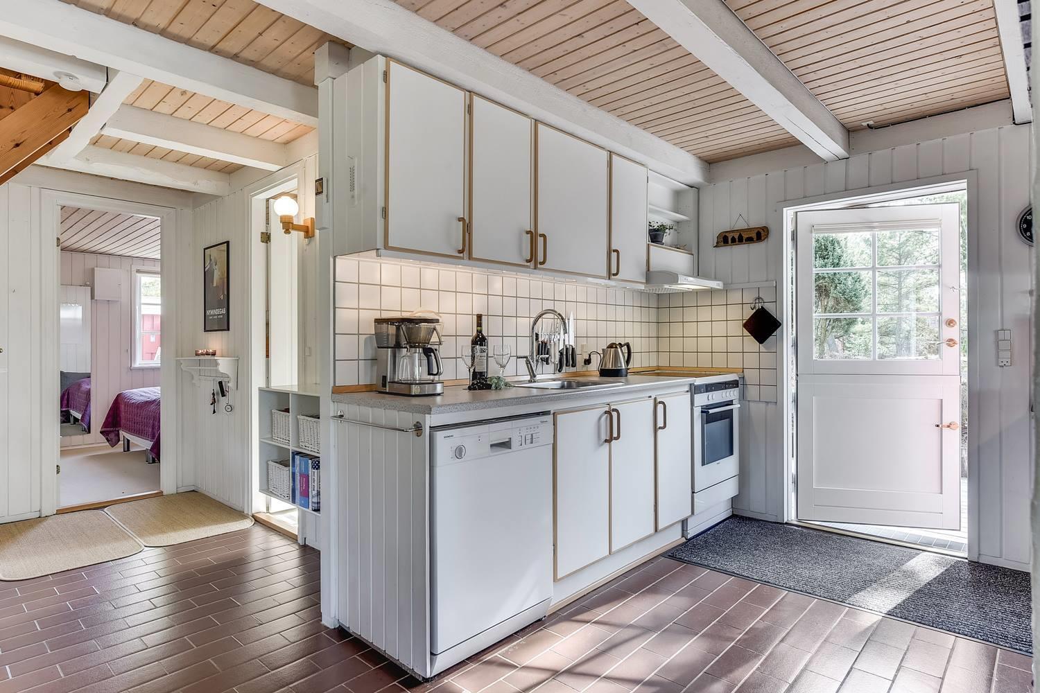 Det åbne, moderne køkken er udstyret med opvaskemaskine og giver perfekte rammer for hyggelige madlavningsstunder. Uanset om det er en hurtig morgenmad eller en lang middag, er fælles madlavning let og hyggelig her.