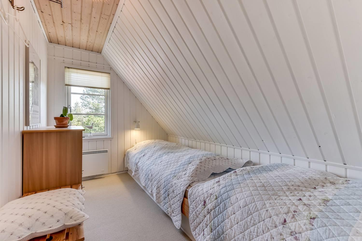 De fire soveværelser byder på rolige rammer for gode nætter. Efter en dag ved stranden eller en cykeltur i Houstrups natur venter et særligt højdepunkt: husets egen sauna – perfekt til at blive varmet igennem, slappe af og runde dagen af i ro og mag. Badeværelset har desuden gulvvarme, som gør morgenstunden ekstra behagelig. For ekstra komfort er der også vaskemaskine og tørretumbler – ideelt ved længere ophold.