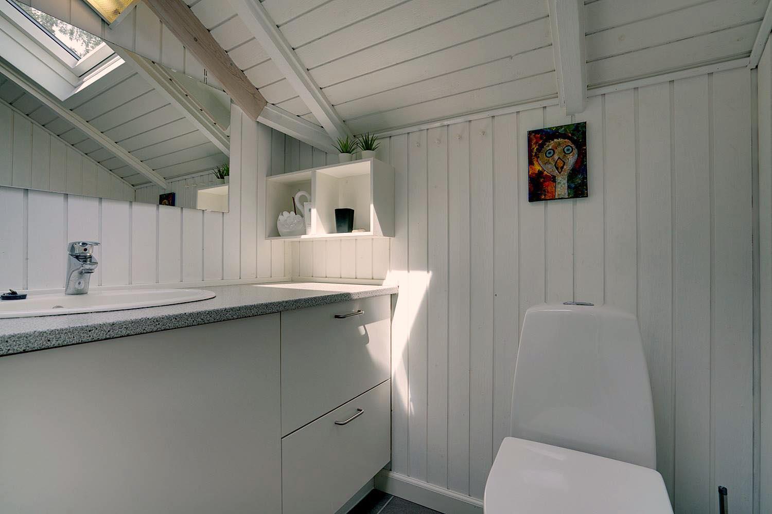 Badeværelset har gulvvarme, så I kan starte dagen varmt og behageligt – selv på kølige dage.