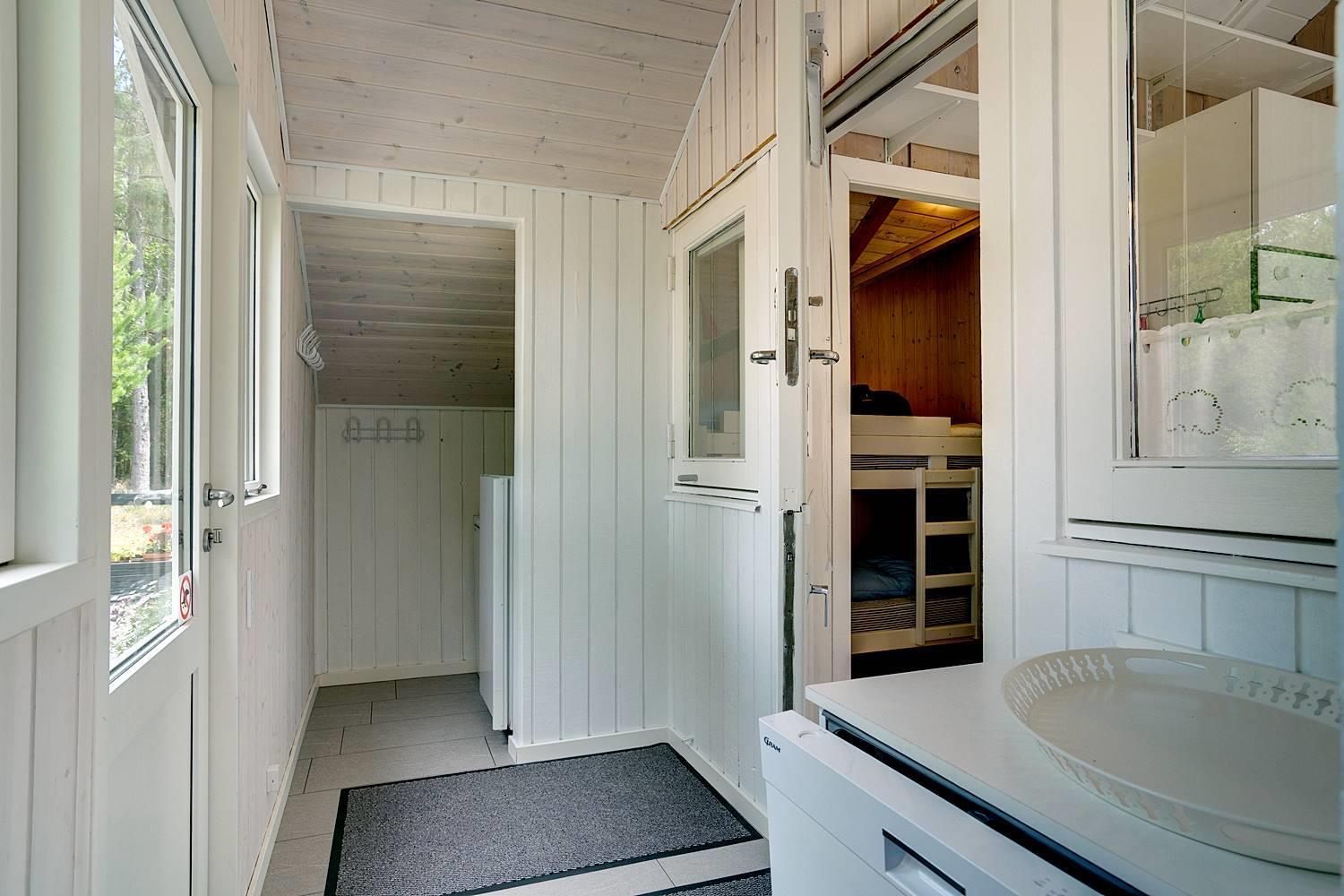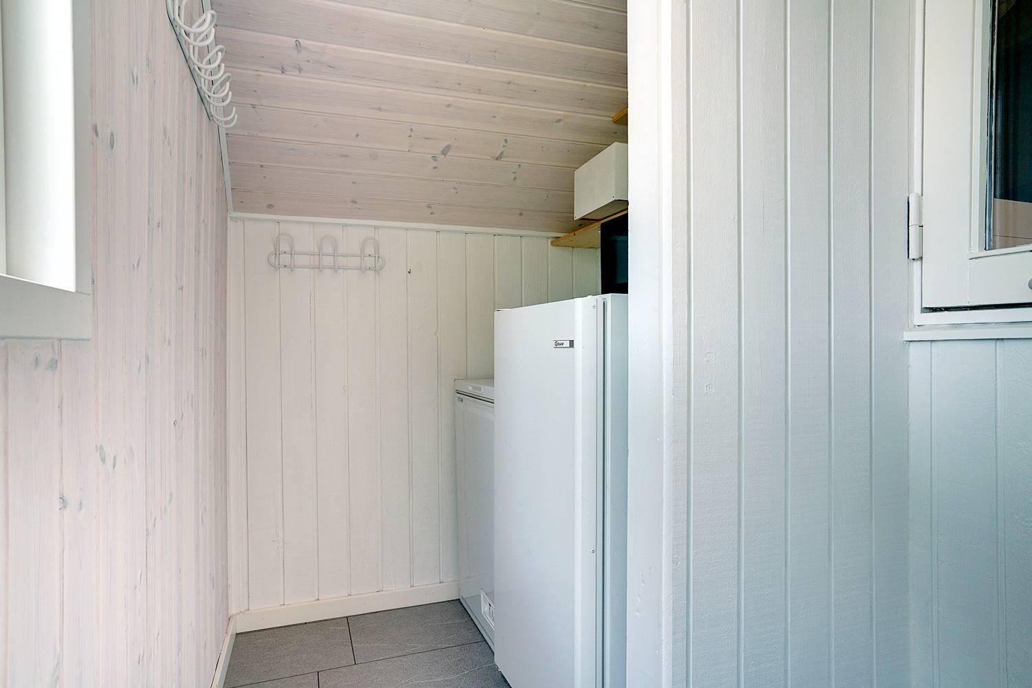 Praktisk er der også en vaskemaskine, hvilket gør sommerhuset oplagt til børnefamilier og længere ophold.