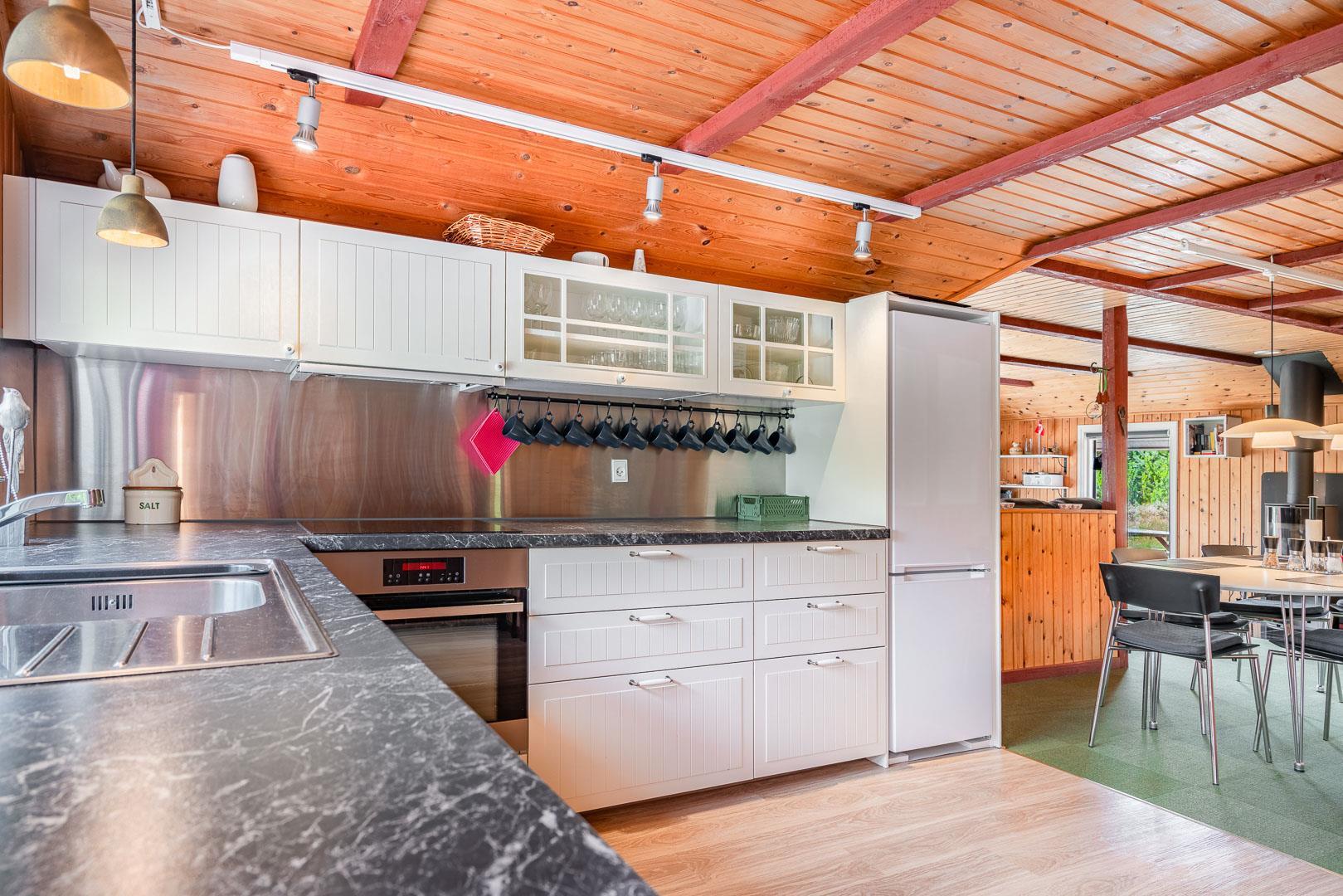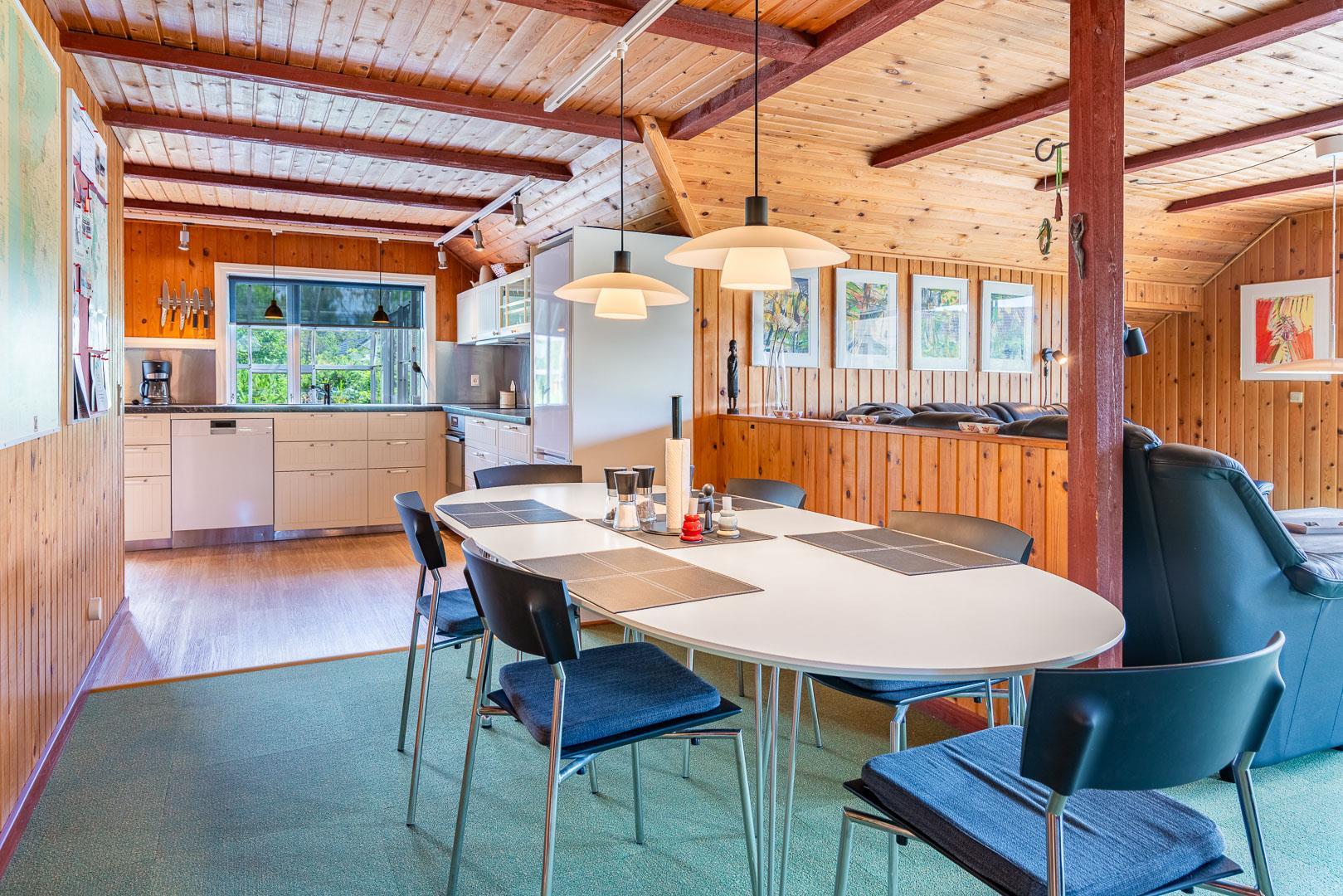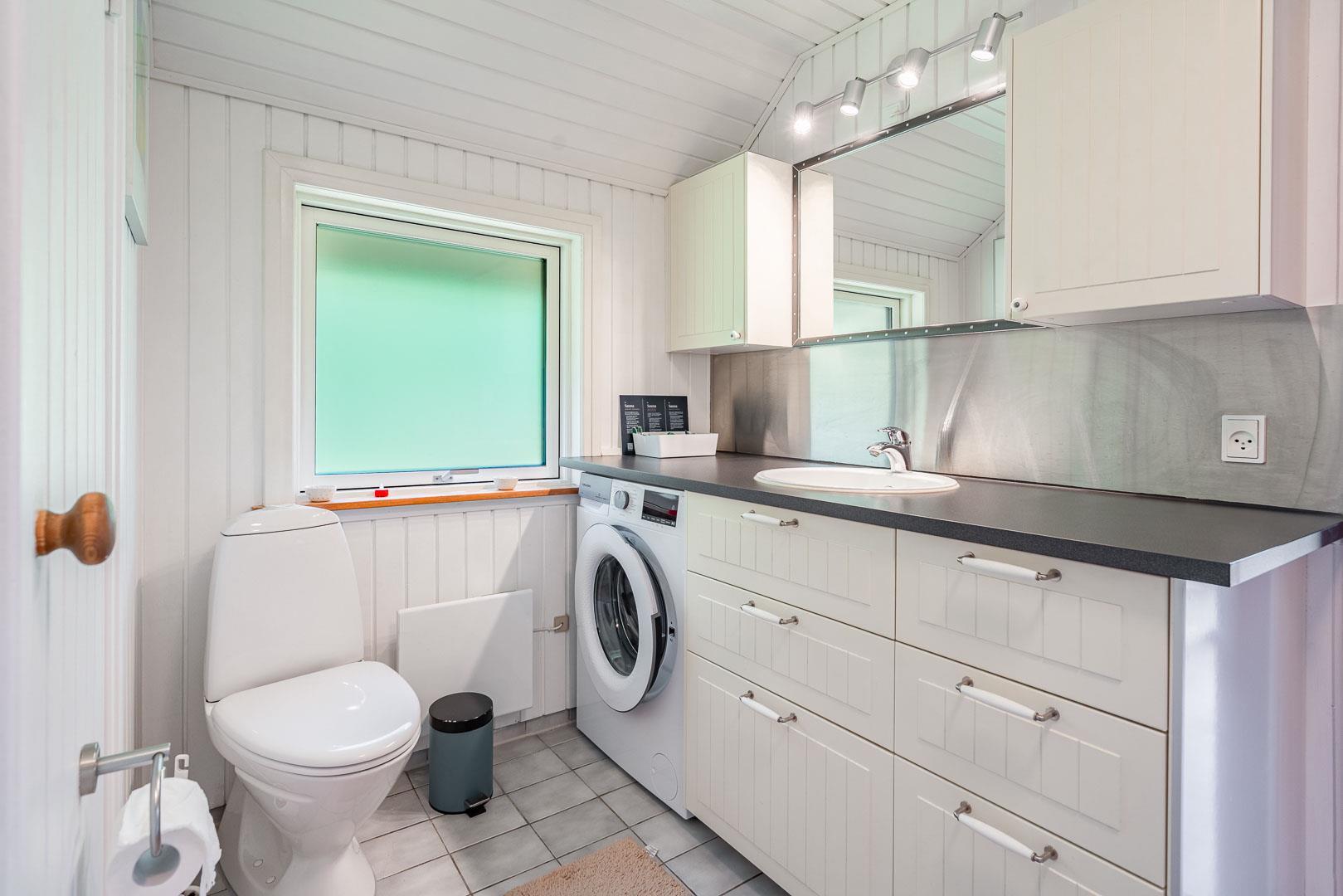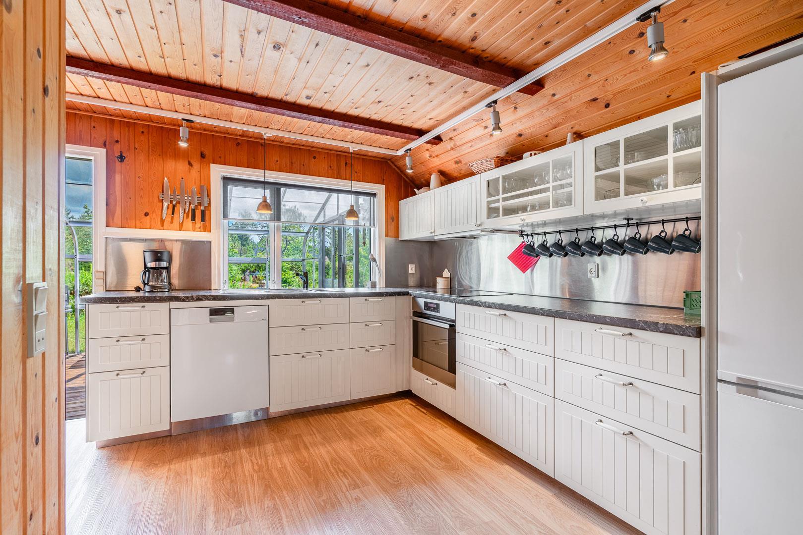 En skøn udestue med havemøbler giver ekstra opholdsplads året rundt. Huset har en centralstøvsuger og en værdiboks til opbevaring. Sommerhuset er ideelt til en afslappende ferie tæt på naturen.
