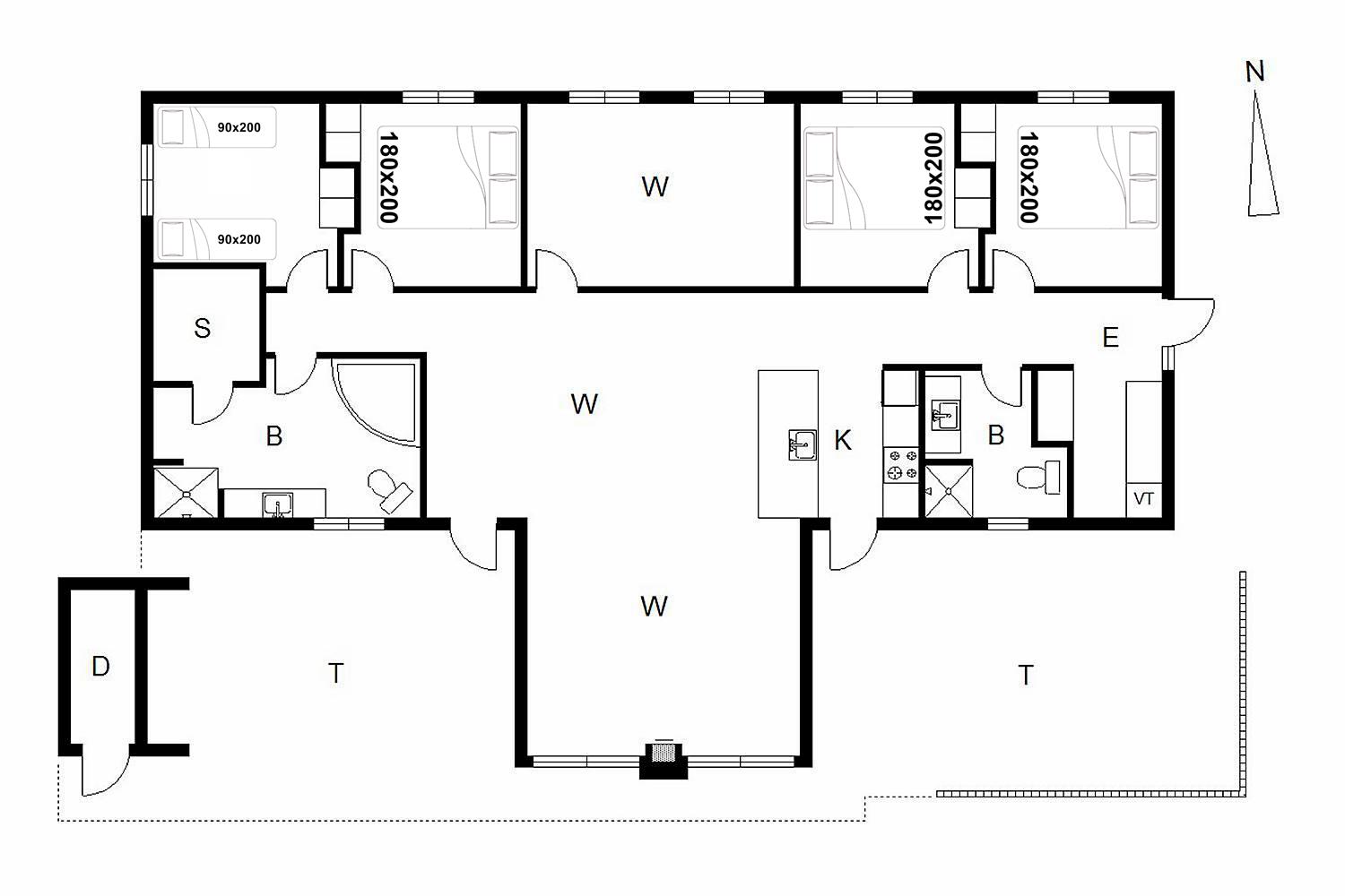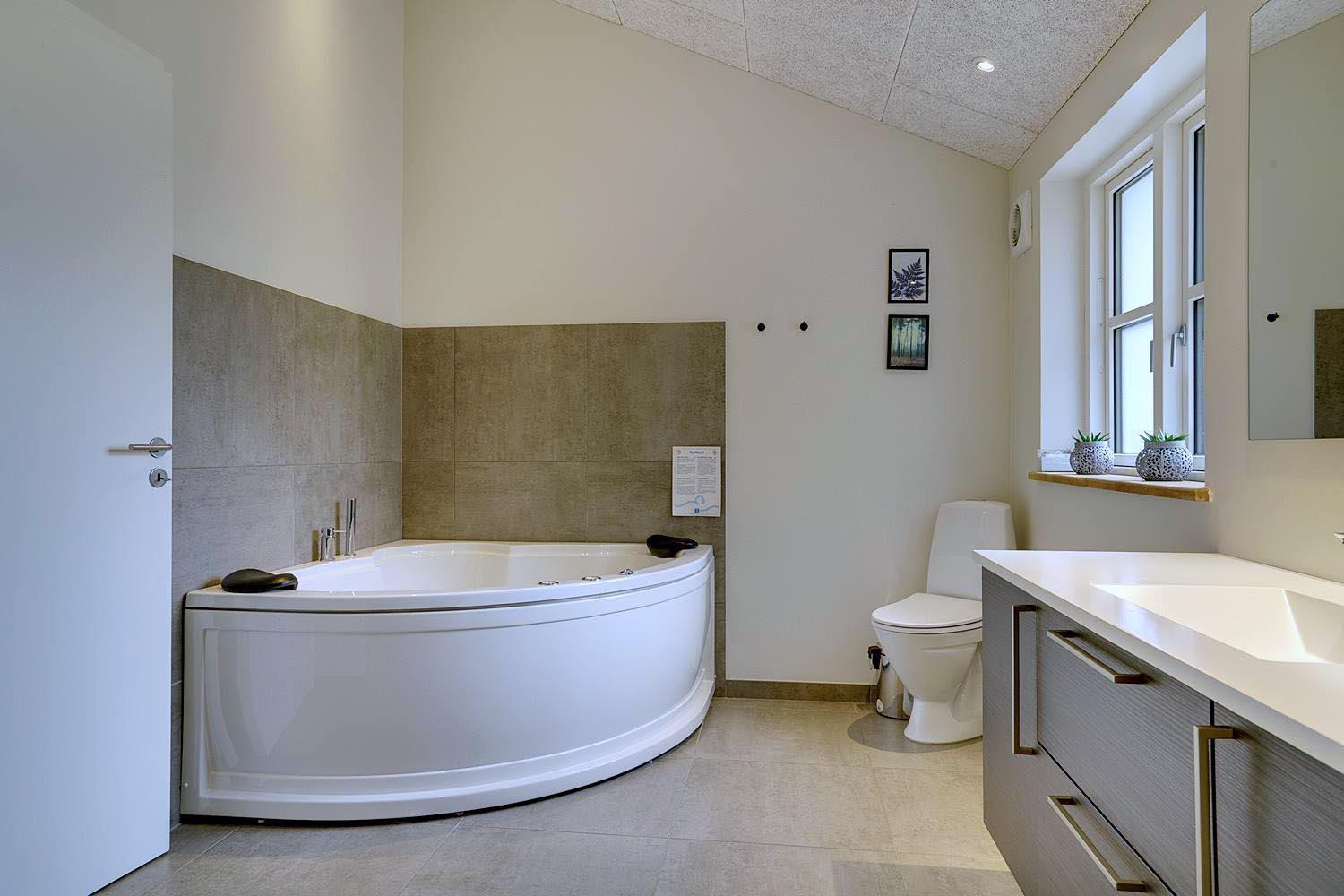 Sommerhuset råder over 4 soveværelser, 2 badeværelser samt vaskemaskine og tørretumbler – ideelt til længere ophold eller ferie med børn og hund.