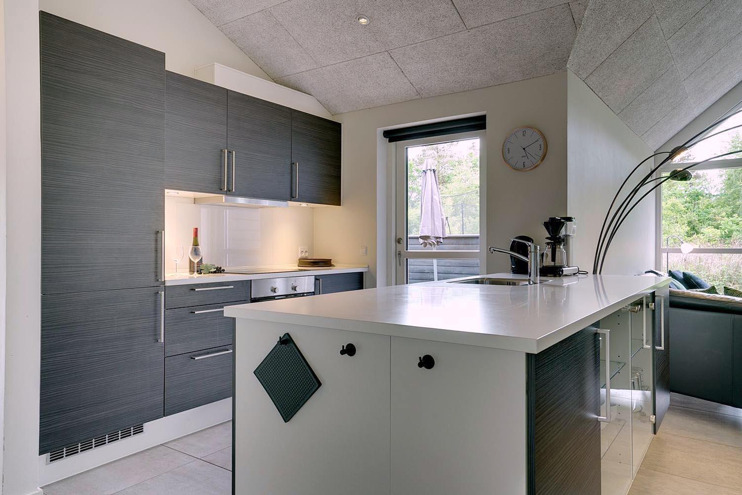 Køkkenet er moderne indrettet og udstyret med opvaskemaskine, så ferien kan nydes helt afslappet.