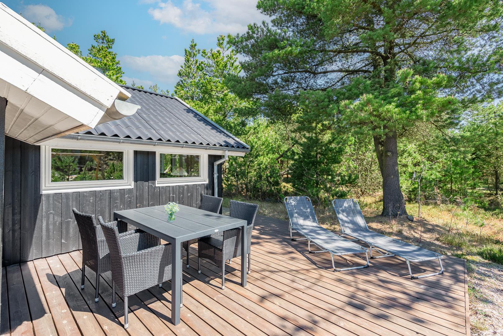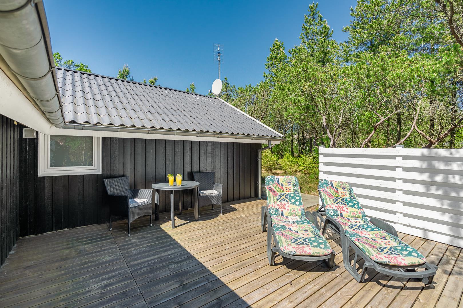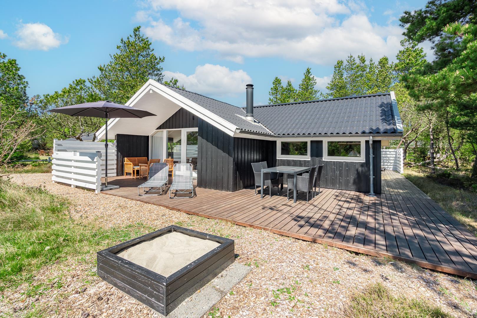 For ende af vej i den dejlige Blåbjerg Klitplantage, finder I dette attraktive feriehus, beliggende på en naturgrund med bevoksning. Til huset hører et 10 kvm skur. - evt. til opbevaring af cykler. I vil nyde at få besøg af rådyr på grunden - en terapi for sjælen.