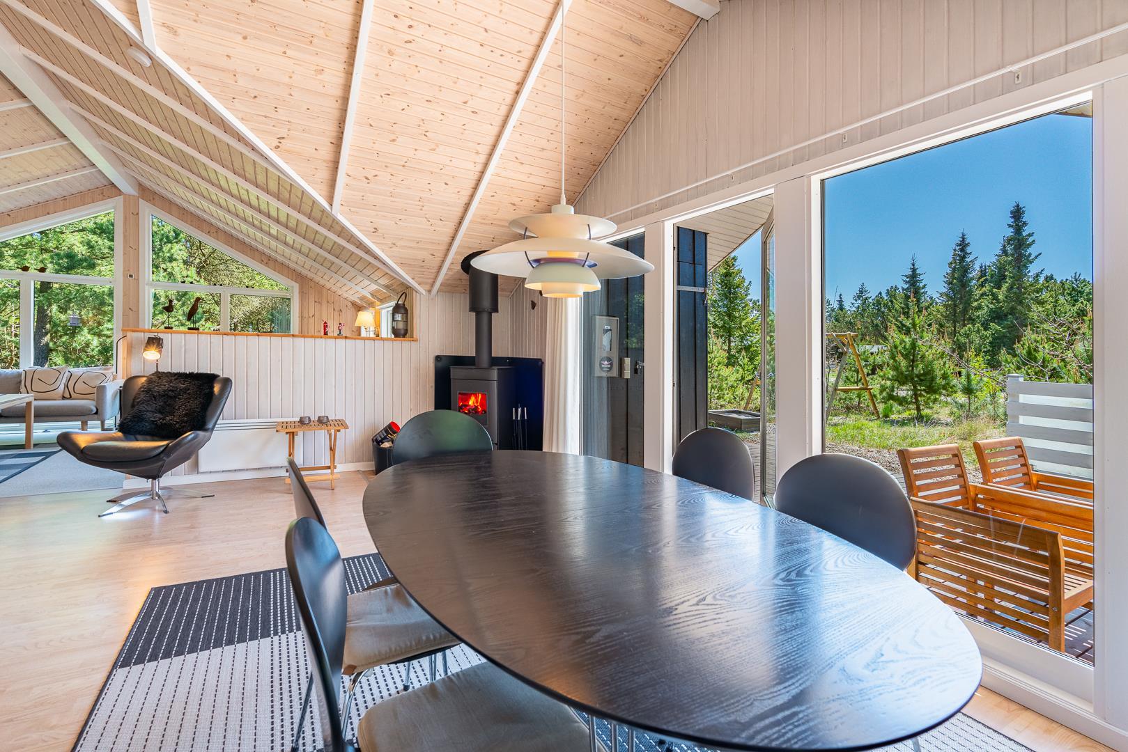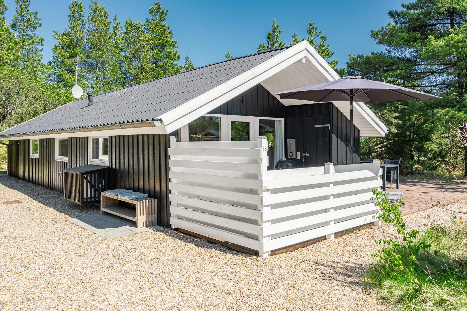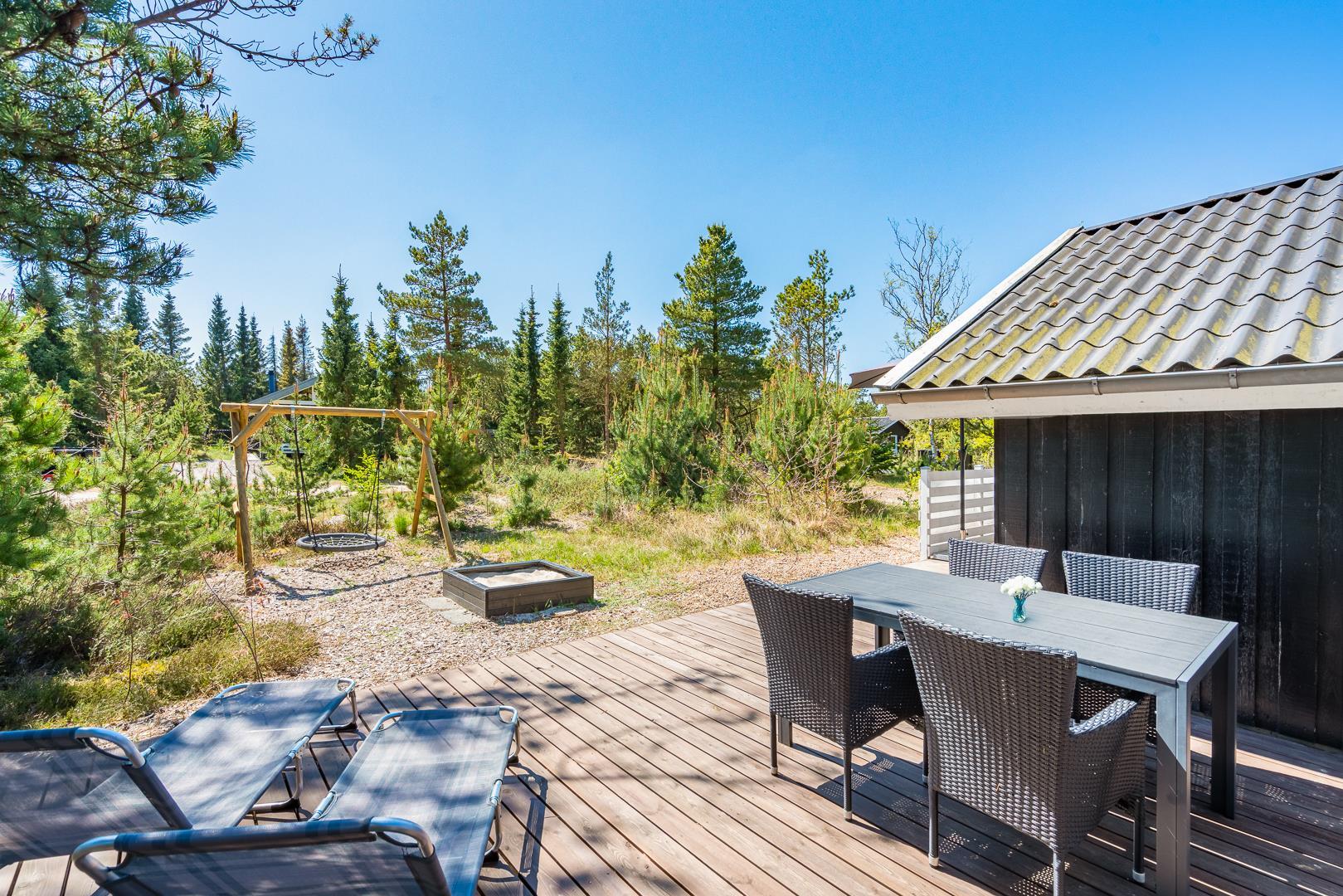 For ende af vej i den dejlige Blåbjerg Klitplantage, finder I dette attraktive feriehus, beliggende på en naturgrund med bevoksning. Til huset hører et 10 kvm skur. - evt. til opbevaring af cykler. I vil nyde at få besøg af rådyr på grunden - en terapi for sjælen.
