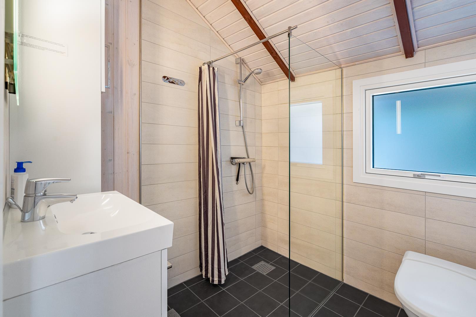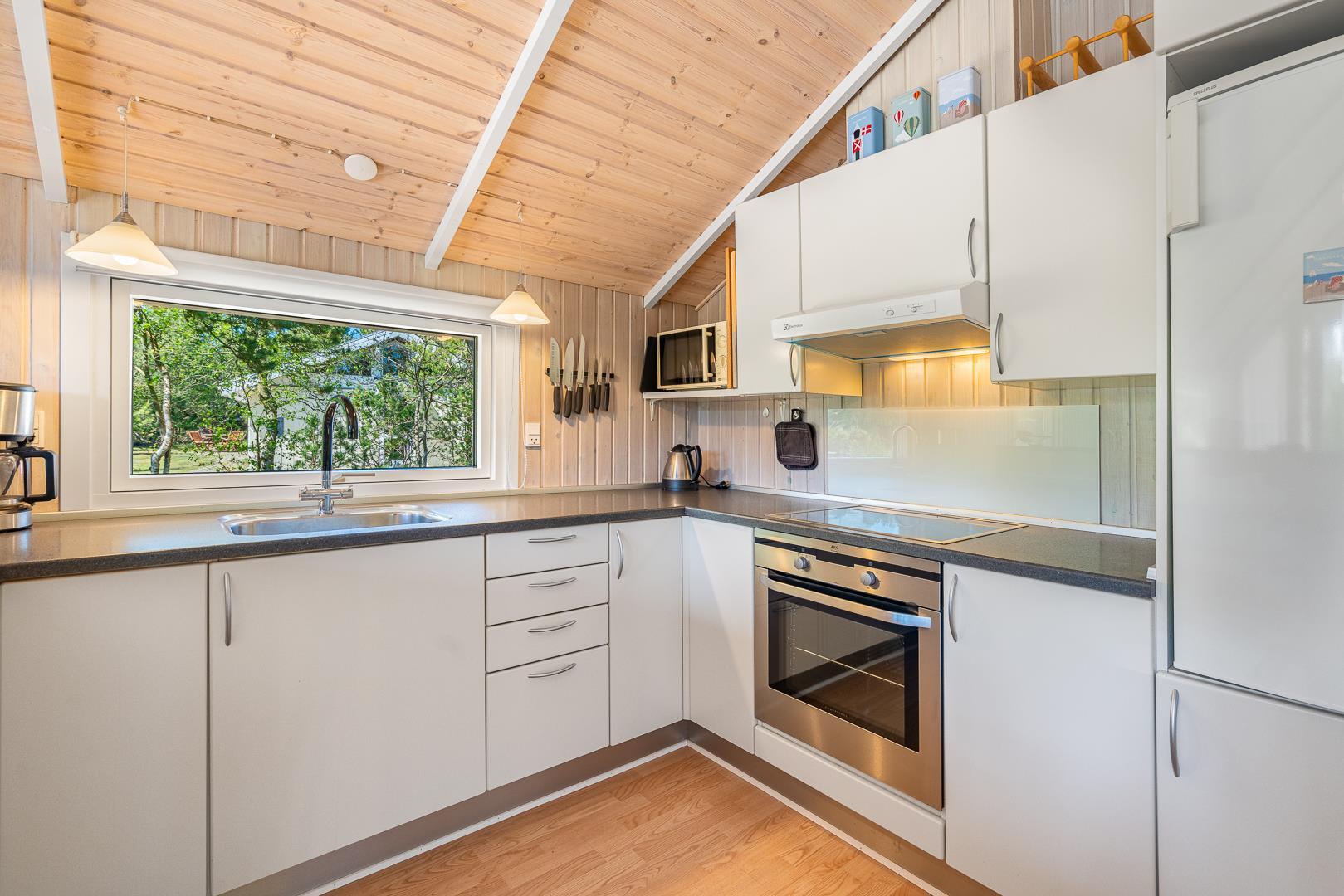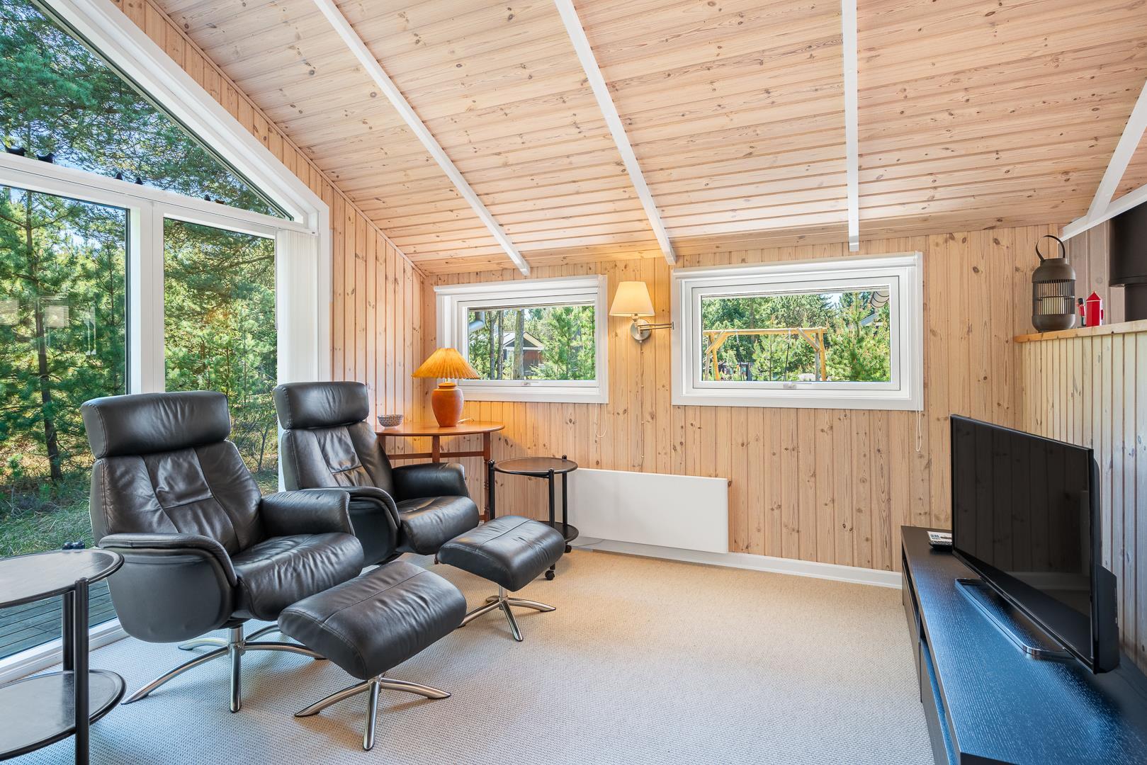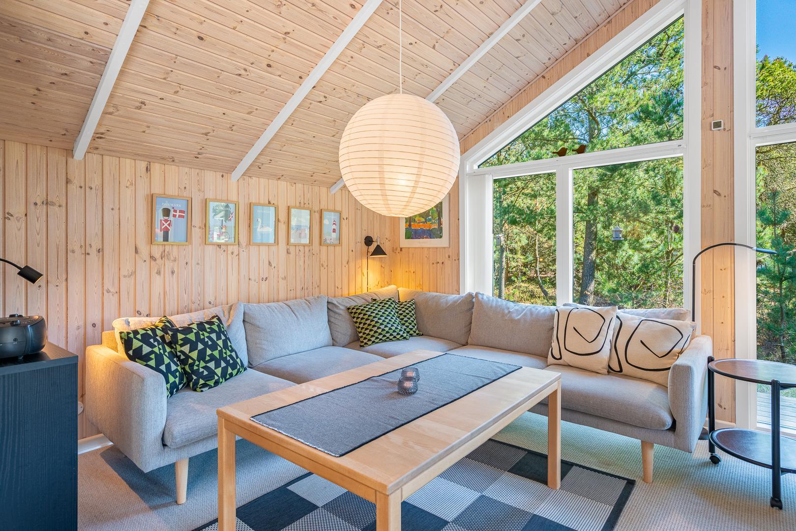 Huset er med sine 94 m2 særdeles rummeligt. Der er 2 veludnyttede soverum med dobbeltseng og et værelse med en enkeltseng. Flot badeværelse - med sauna. Nydeligt køkken med opvaskemaskine og mikroovn - i åben forbindelse til spiseplads og den tilbyggede stue. Til tv hører en Google Chromecast, der kan anvendes til streaming fra f.eks. telefon og iPad. Der er højt til loftet, med store vinduespartier og gode lysindfald.