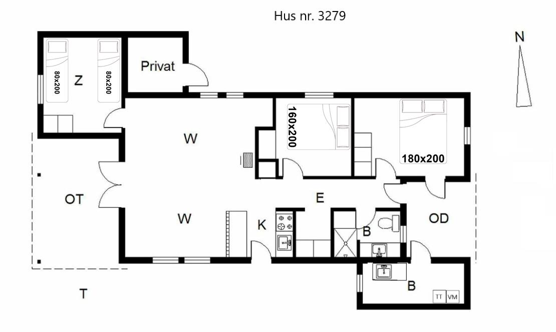 Sengestørrelse: 1 dobbeltseng 180 x 200 cm + 1 dobbeltseng 160 x 200 cm + 2 enkeltsenge 80 x 200 cm