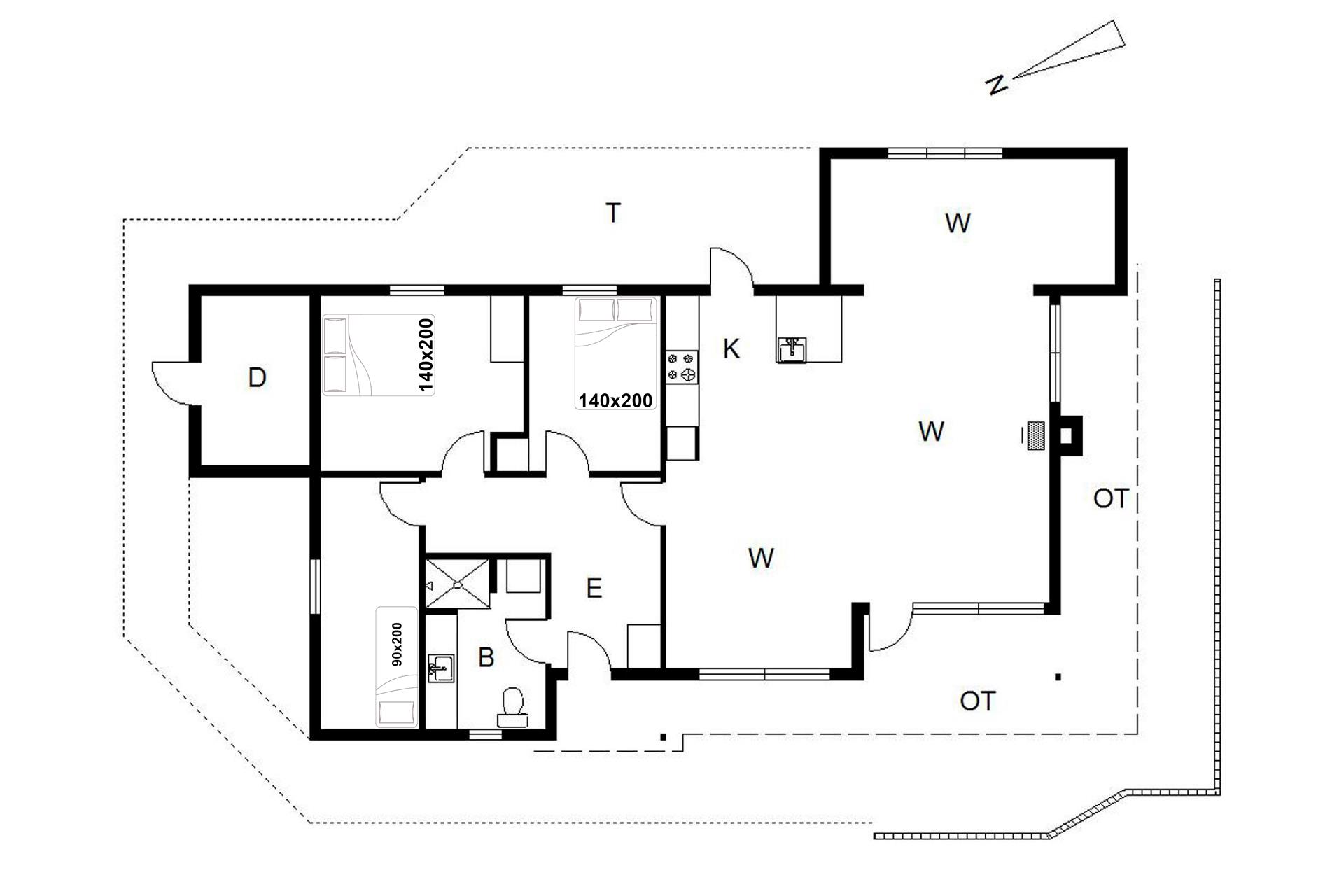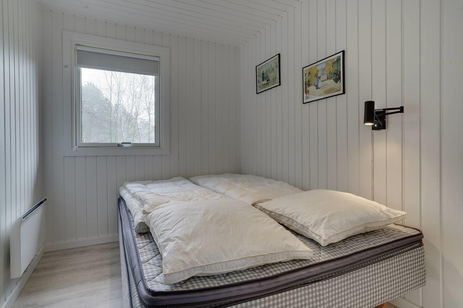 Sengestørrelser: 2 dobbeltsenge 140 x 200 cm + 1 enkeltseng 90 x 200 cm.