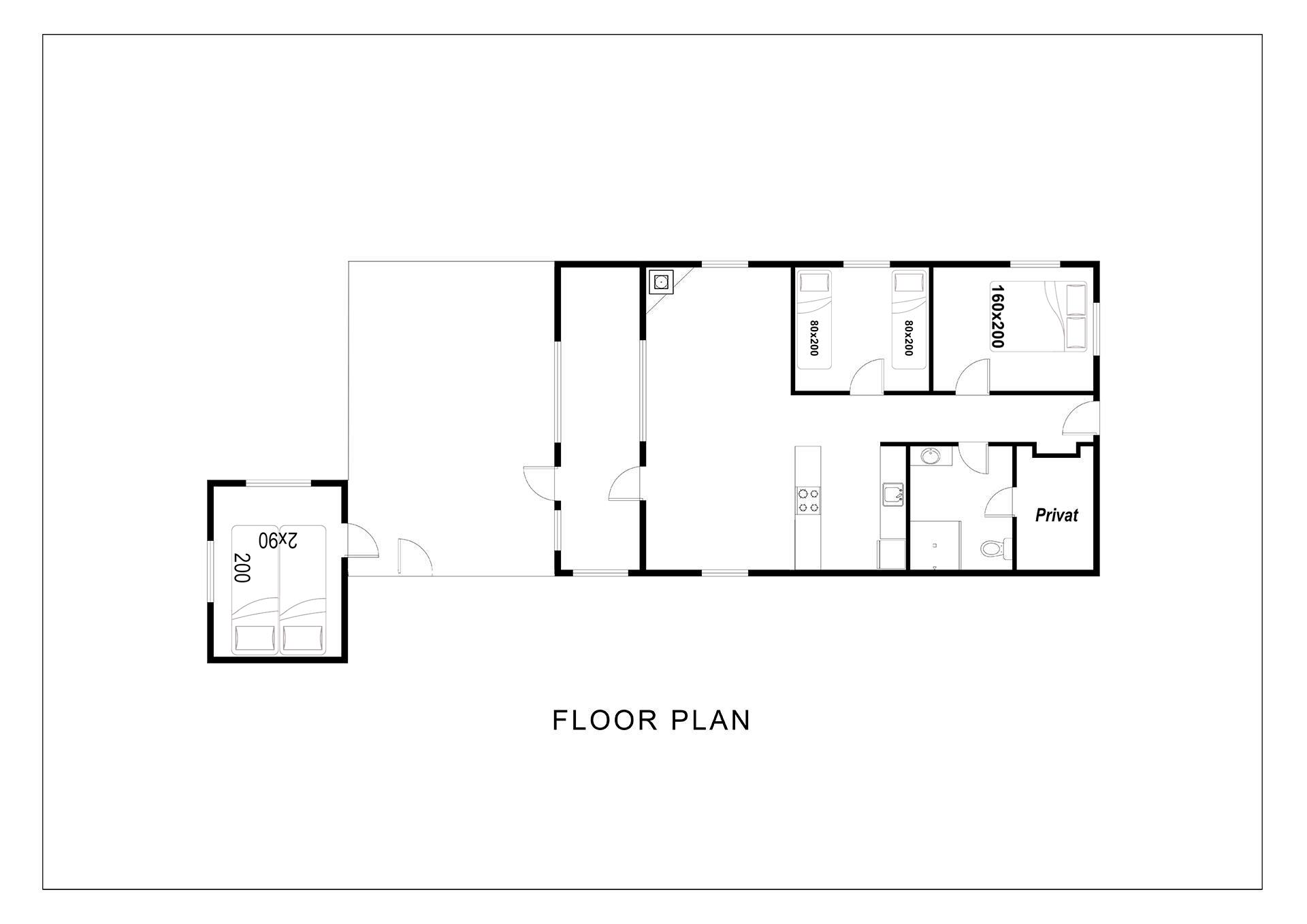 • Sommerhus: 1 dobbeltseng (160 x 200 cm) + 2 enkeltsenge (80 x 200 cm)