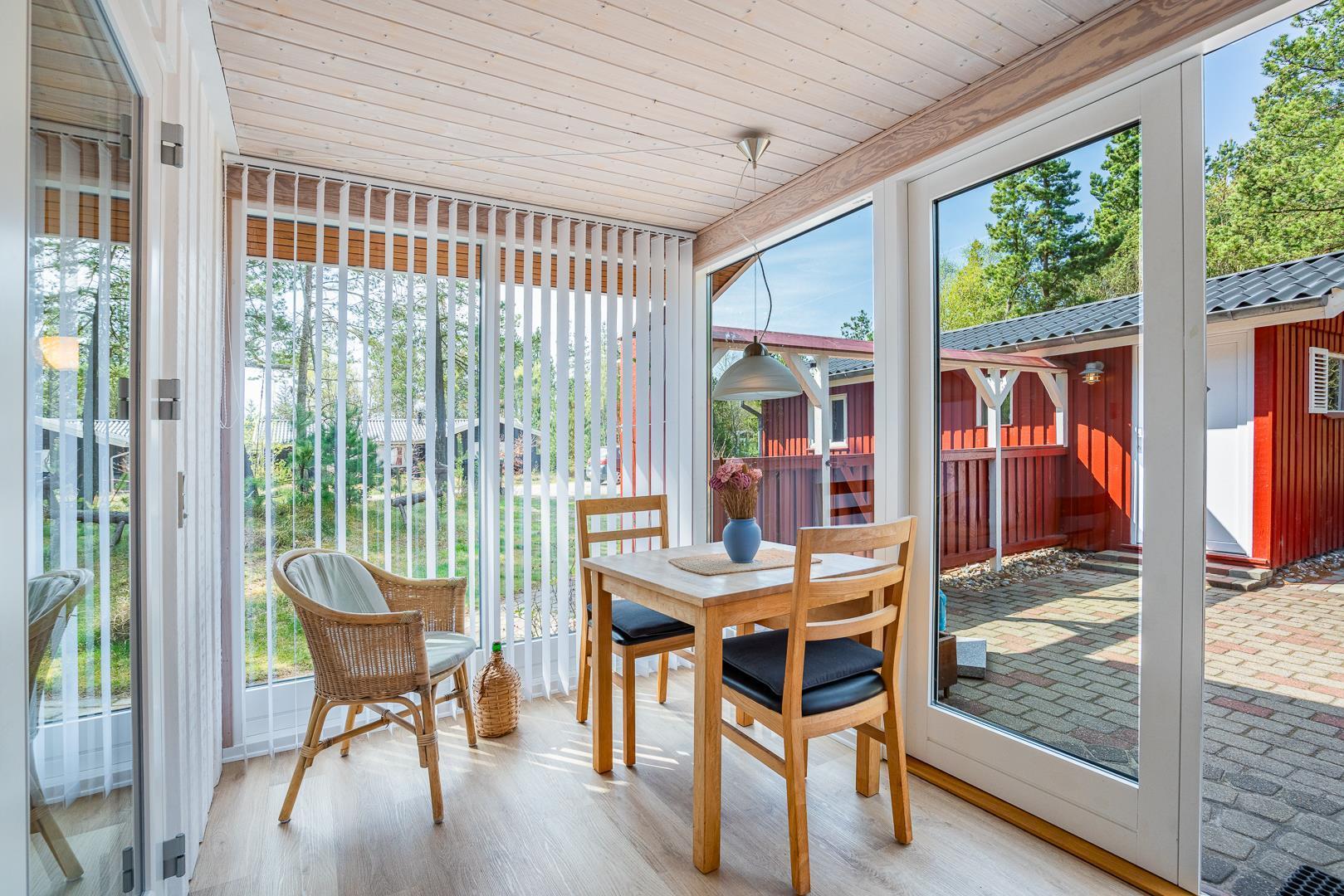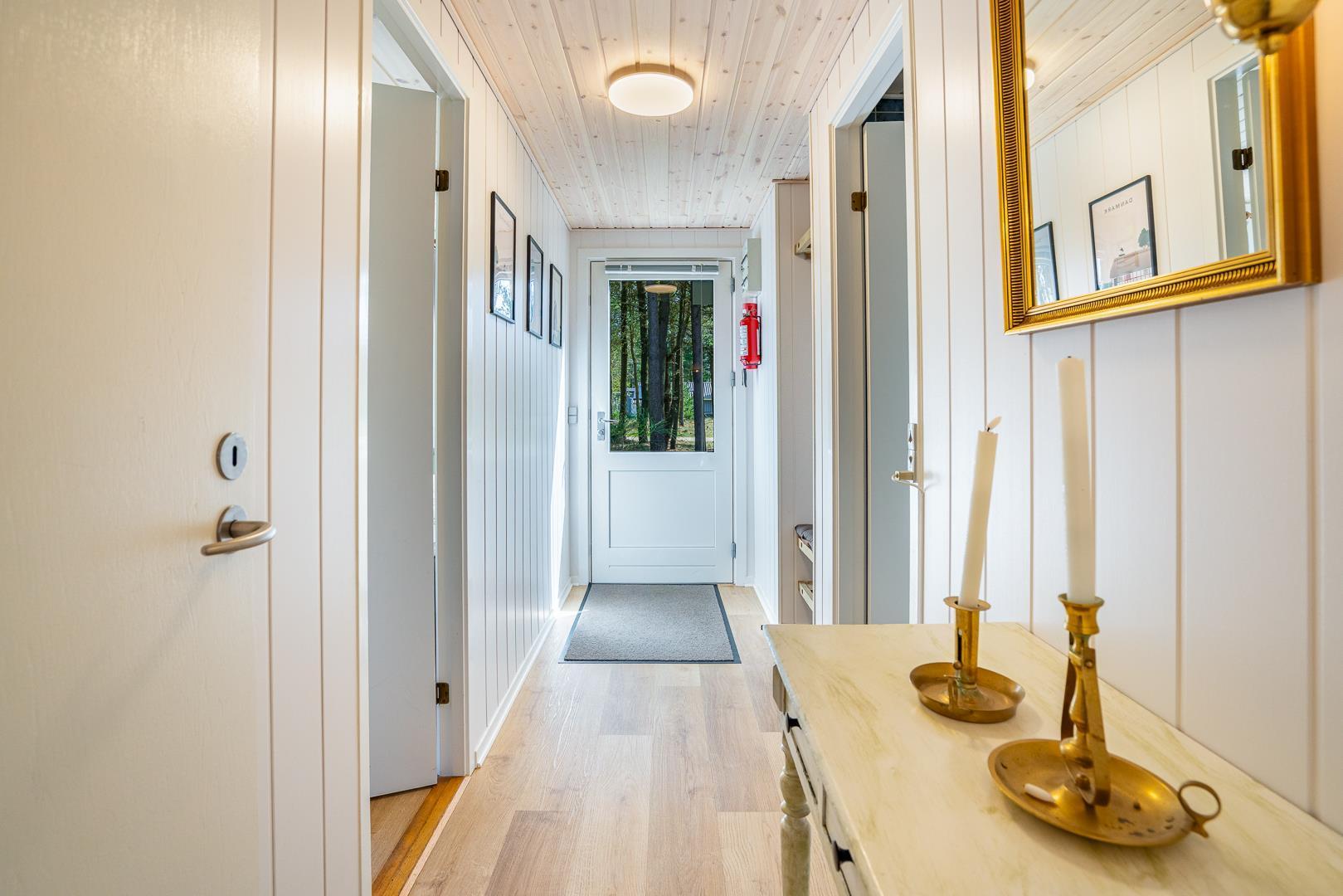 Sommerhusets hjerte er den lyse stue, hvor de store vinduespartier lader dagslyset strømme ind. Med gulvvarme, varmepumpe og brændeovn får I et behageligt indeklima året rundt – fra vinteraftener med knitrende ild til lune sommerdage.