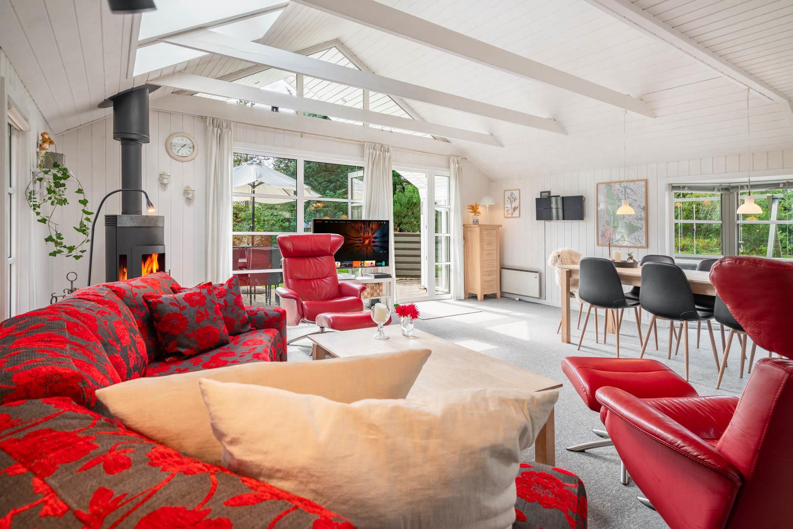 På Søndervang 93, ligger dette personlige og charmerende feriehus - et hus som sjældent kommer til udlejning. Der er dobbelt carport og såvel ude som inde er huset gennemført. Dejlig entre - nyere køkken med ovenlysvindue, opvaskemaskine og fryser. Dejlig stue med komfortable møbler - varmepumpe, brændeovn og TV. 4 lyse soverum, alle med dobbeltseng. 2 badeværelser, det ene med spa og sauna. Helt lukket grund, så der er styr på hund og børn. På grunden er der desuden gynge og sandkasse .
